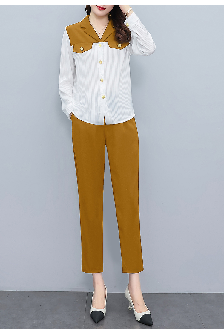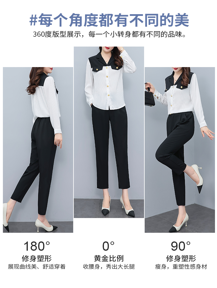 RM28584#大码女装时尚套装女2023秋季拼色西装领衬衫+高腰休闲长裤两件套