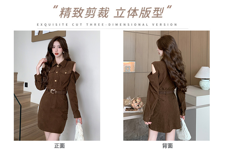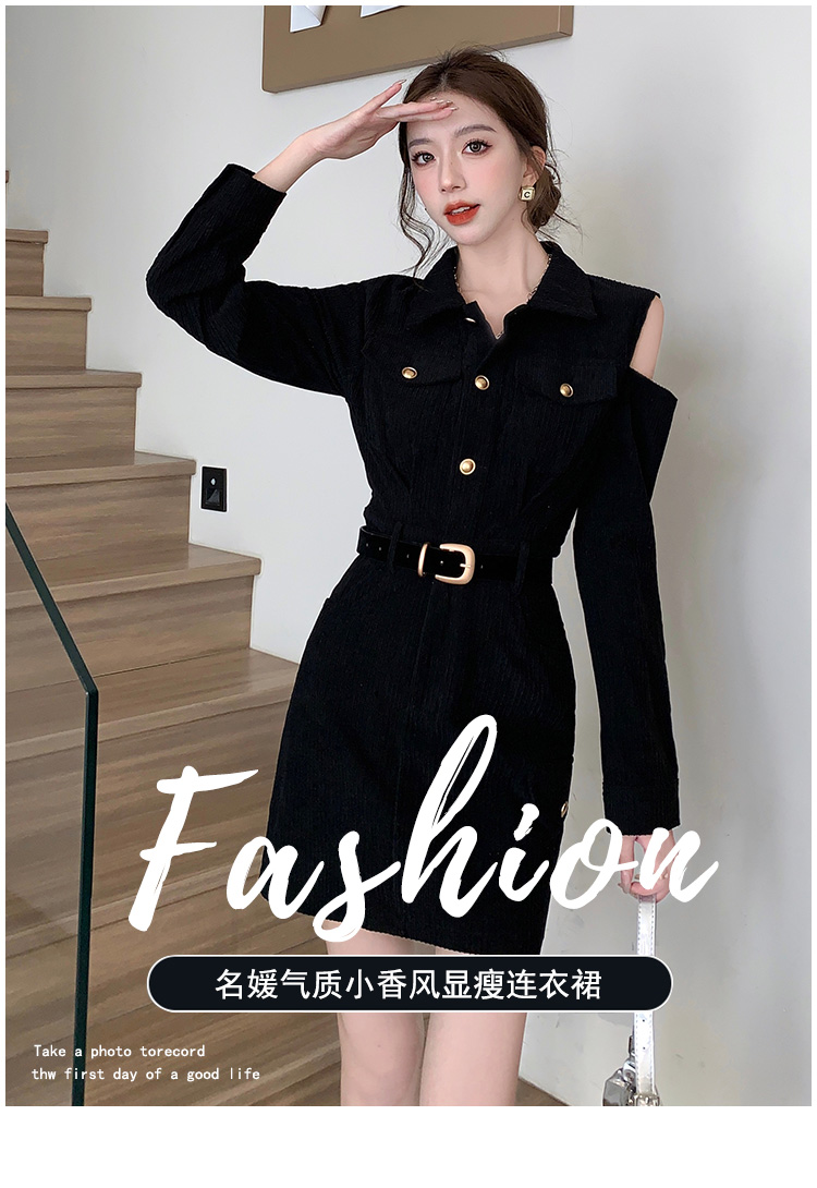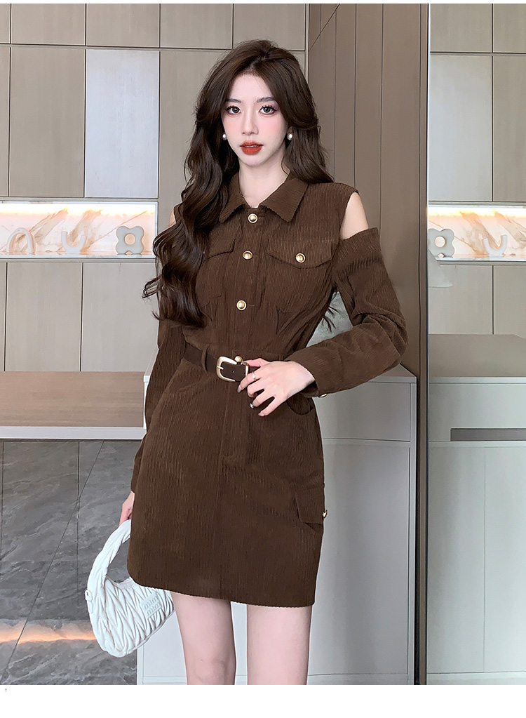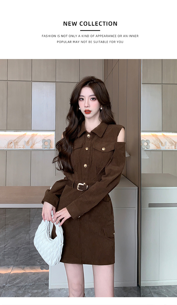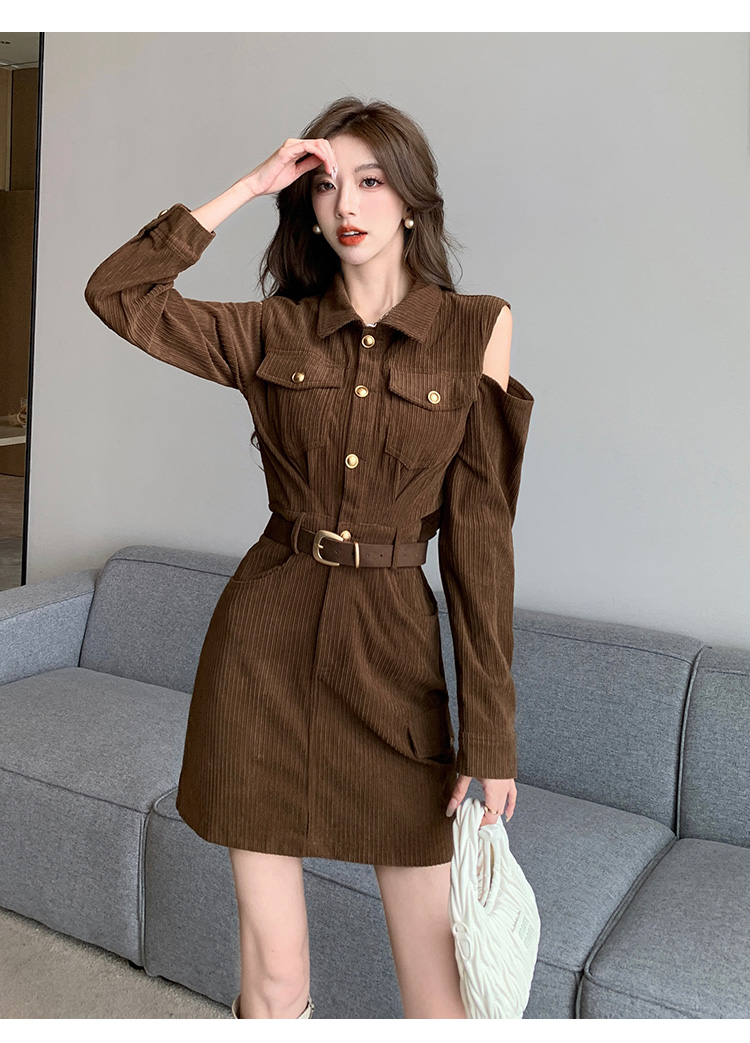 RM28597#新设计感翻领露肩小心机纯欲连衣裙