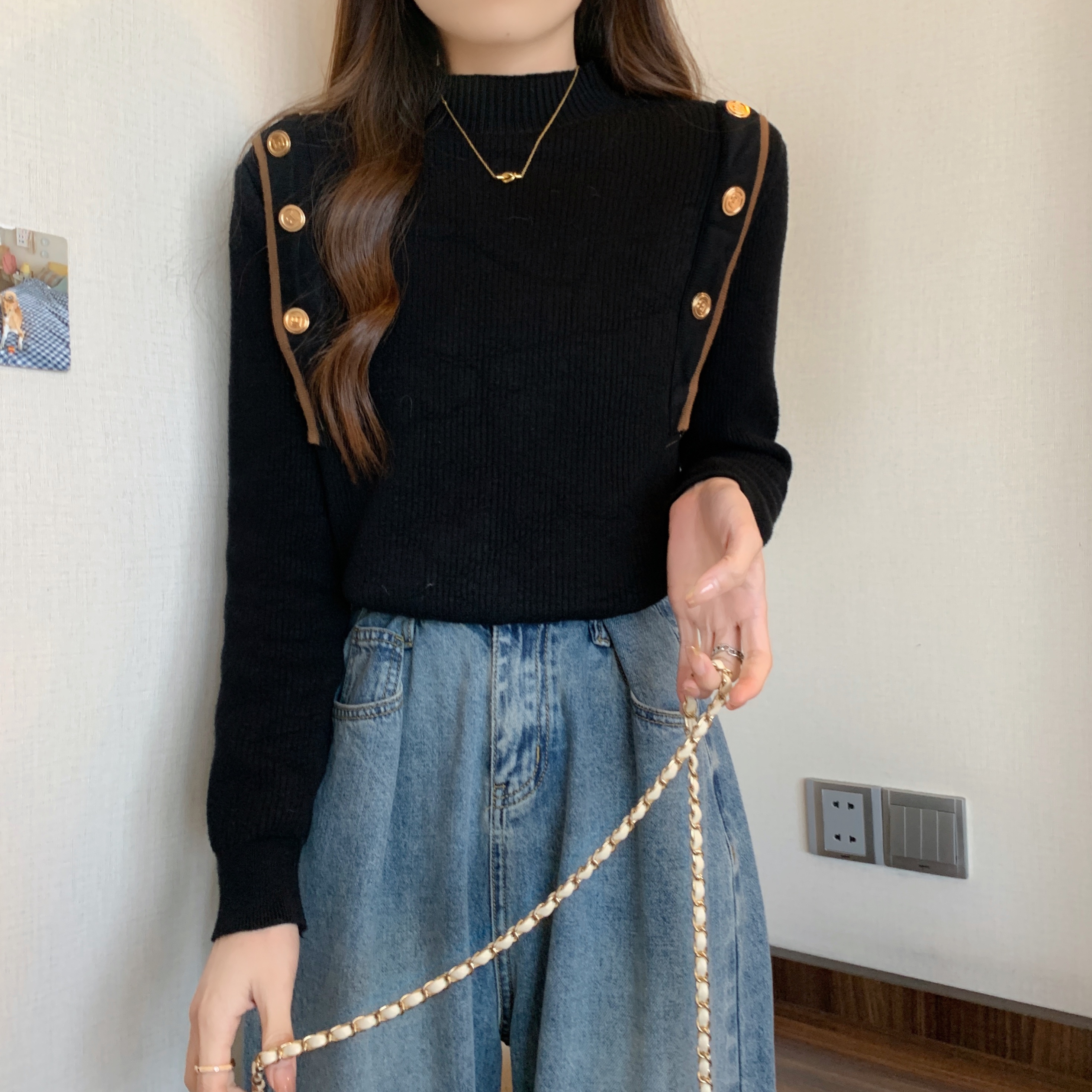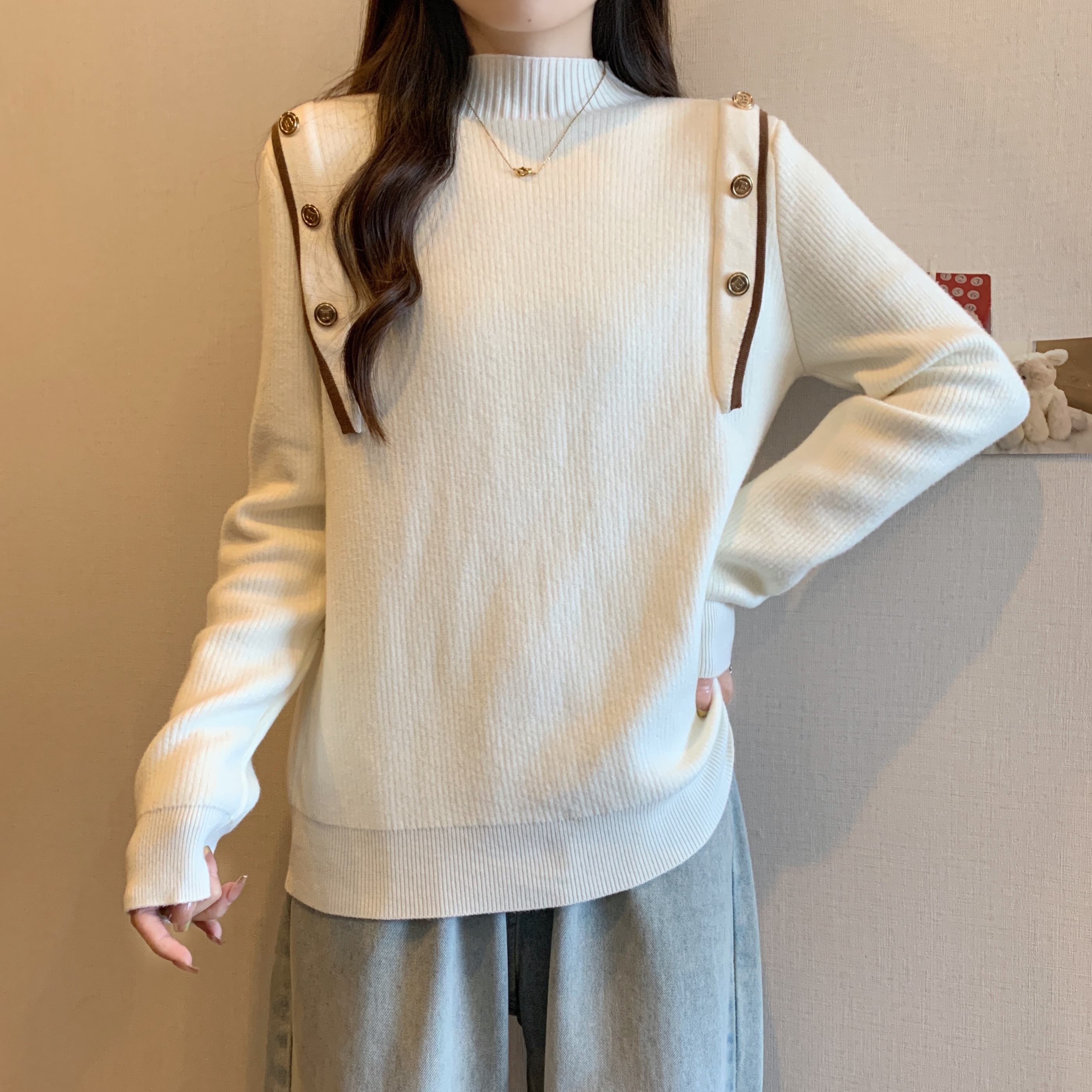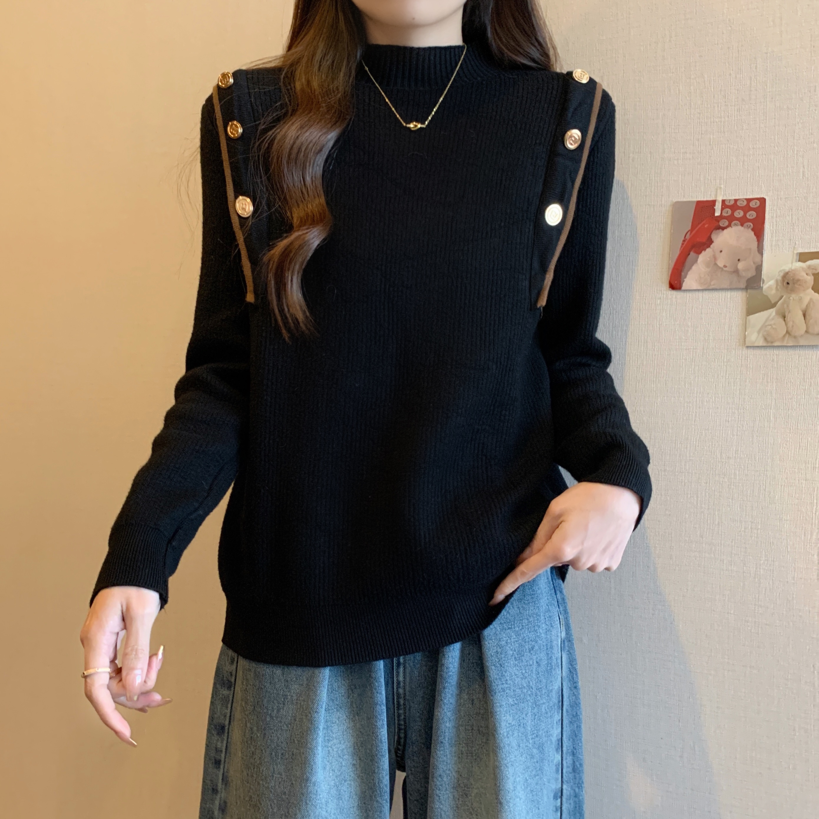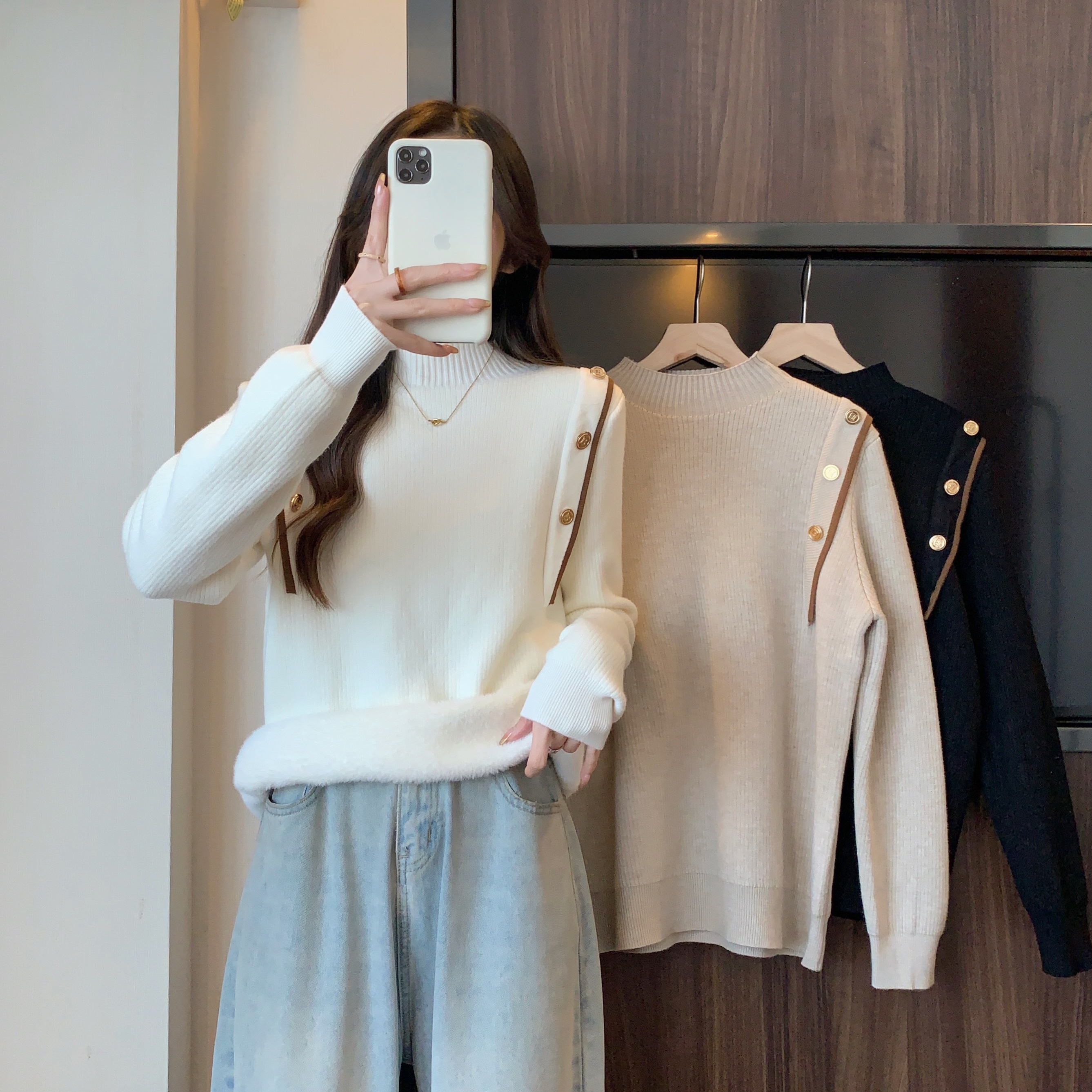 RM28640#大码冬季新款韩版简约百搭套头一体绒针织衫打底衫女