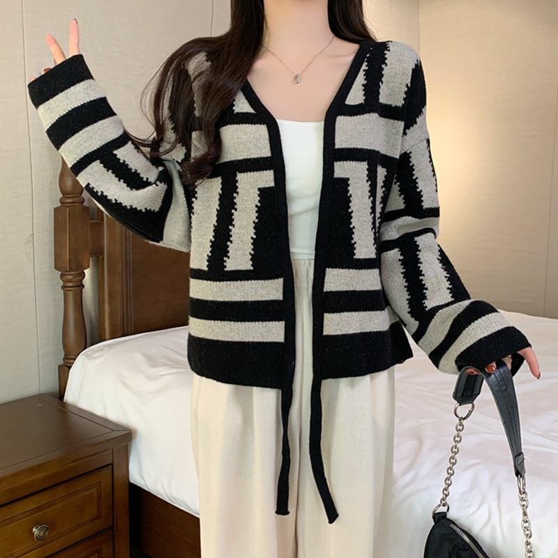 RM28655#新款网红撞色开衫外套针织披肩大码女上衣外搭毛衣