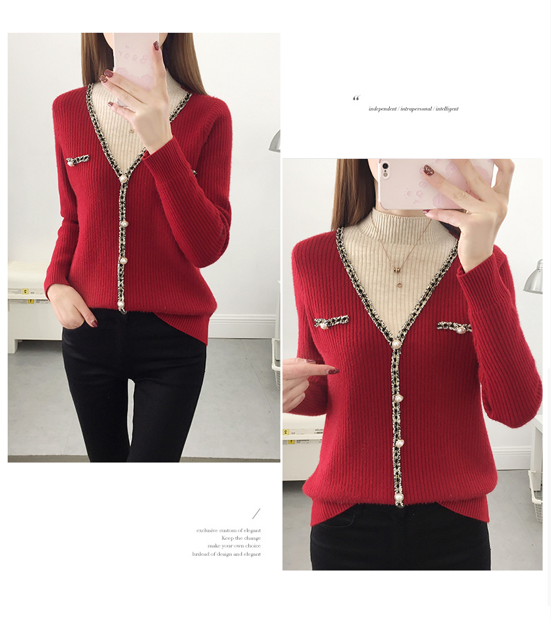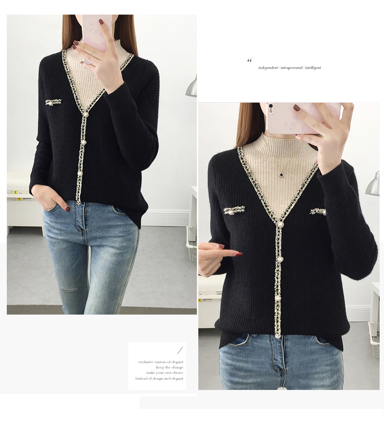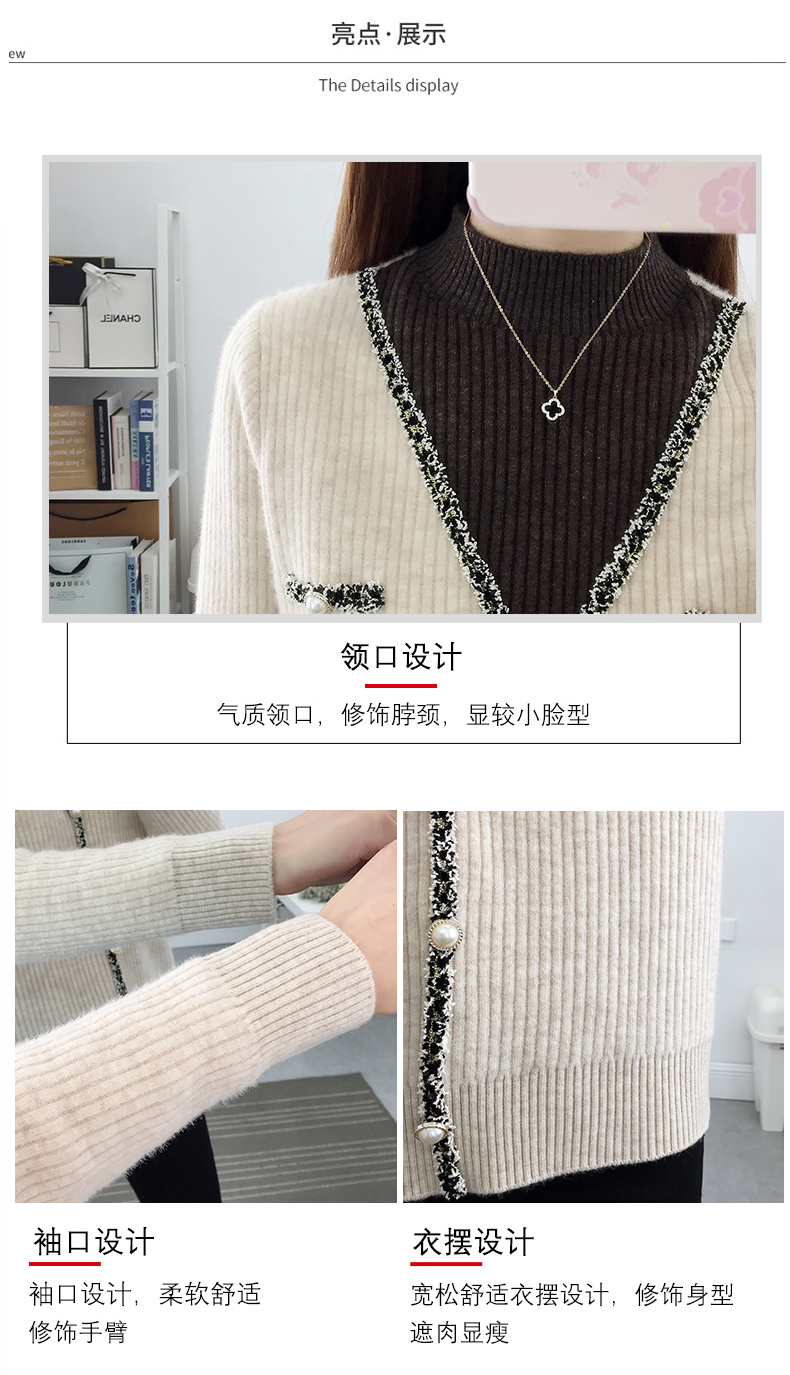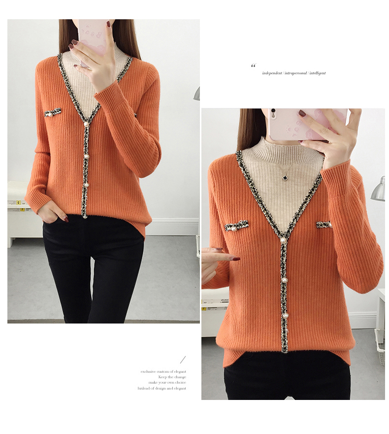 RM28686#一体绒加绒加厚半高领假两件女士毛衣2023冬季新款拼色针织打底衫
