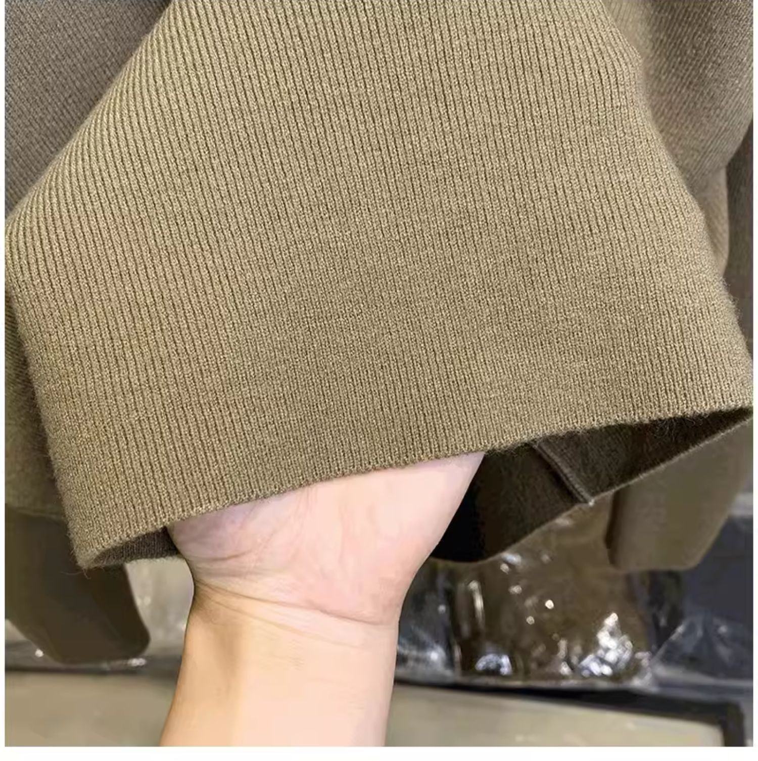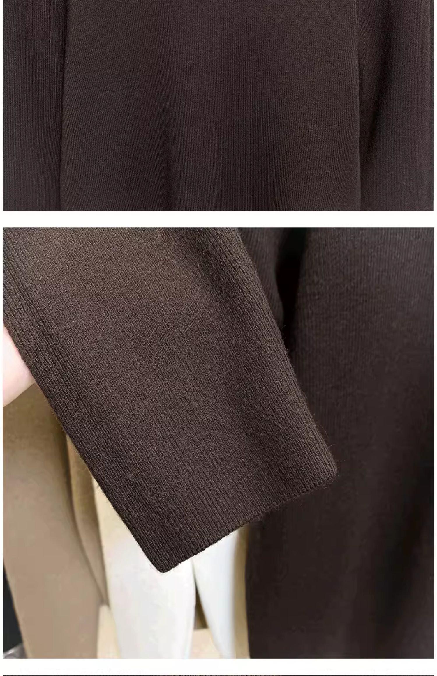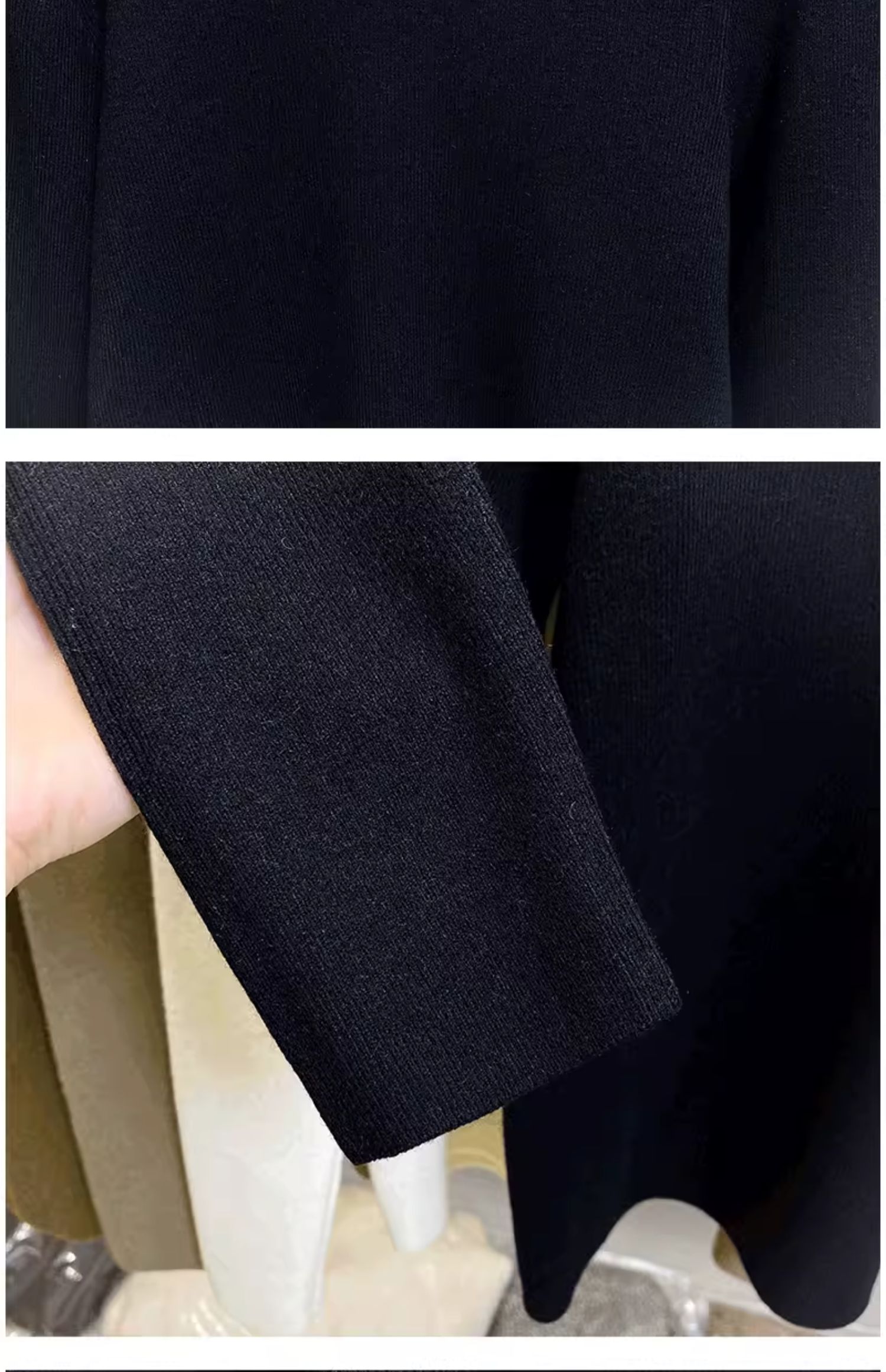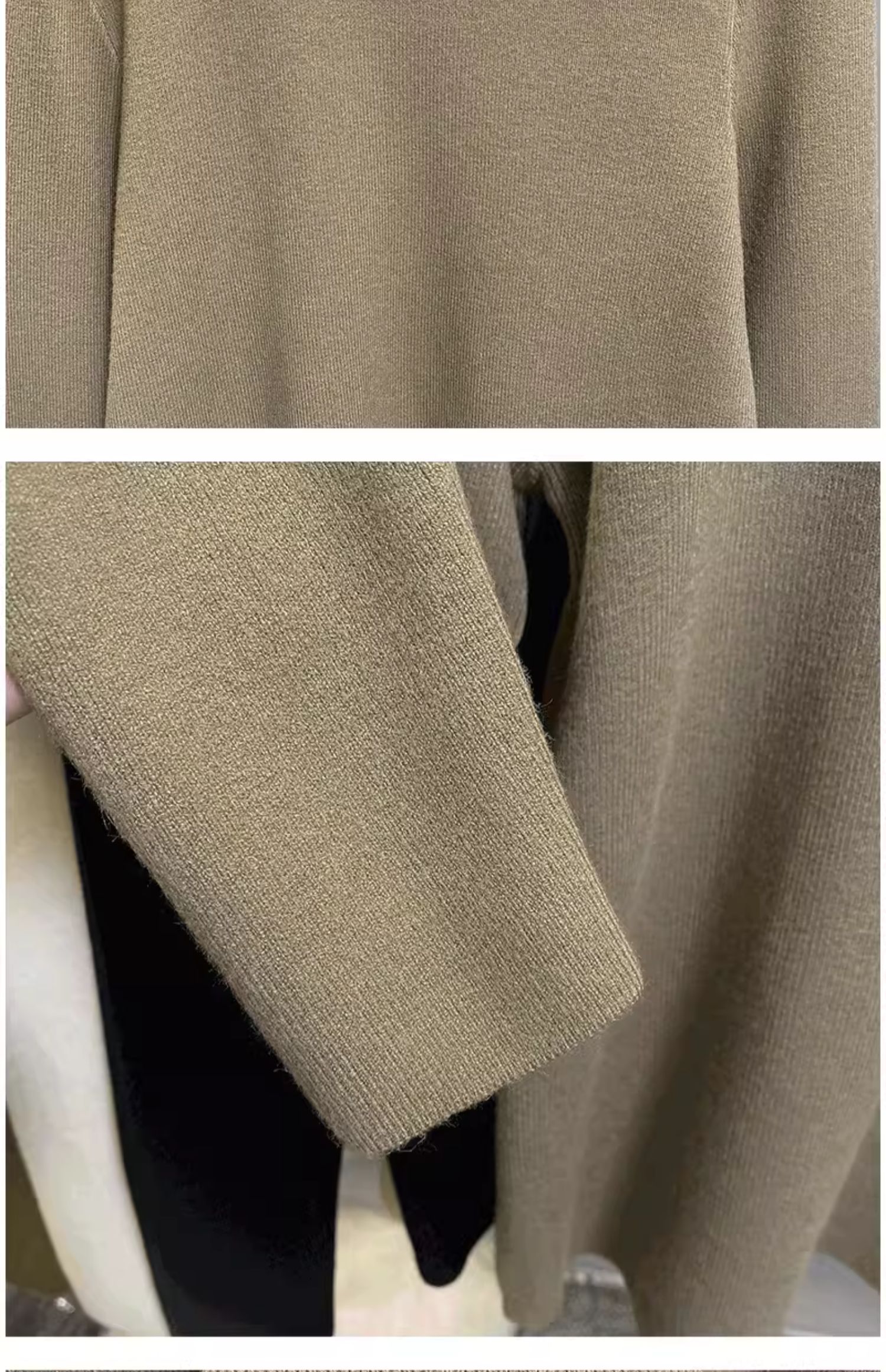 RM28687#大码女装秋冬季半高领设计感镂空针织上衣女修身显瘦百搭纽扣毛衣