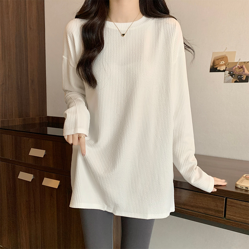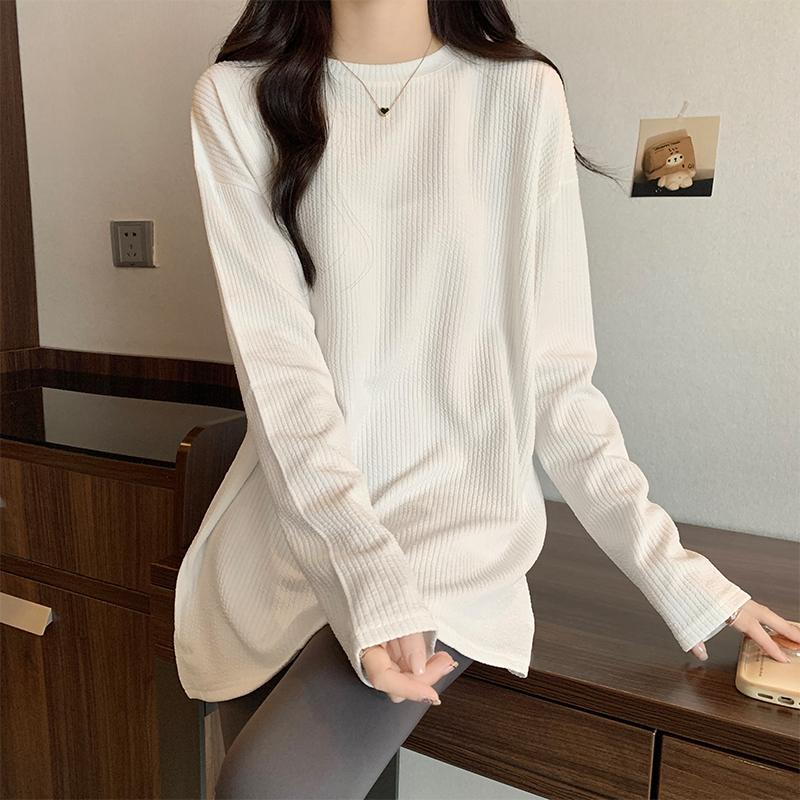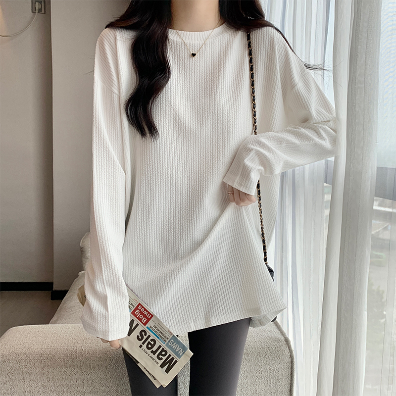 RM28715#中长款圆领打底衫女秋冬洋气百搭宽松长袖t恤肌理感上衣