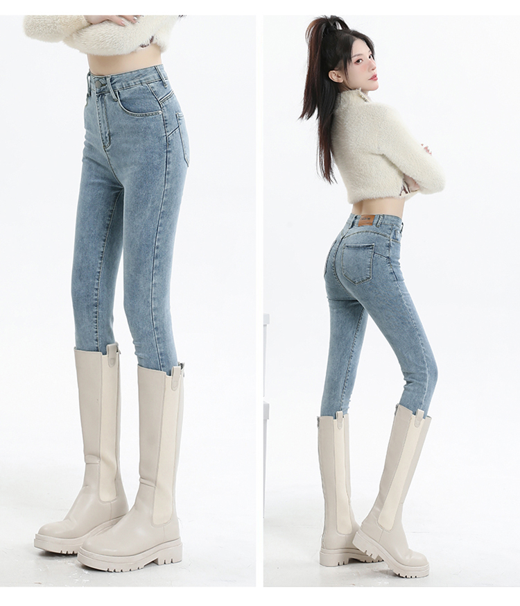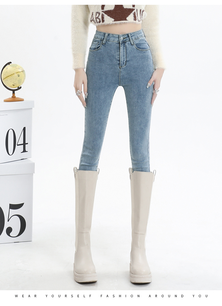 RM28853#牛仔裤子女秋季高腰修身小脚裤小个子紧身加绒铅笔裤冬天