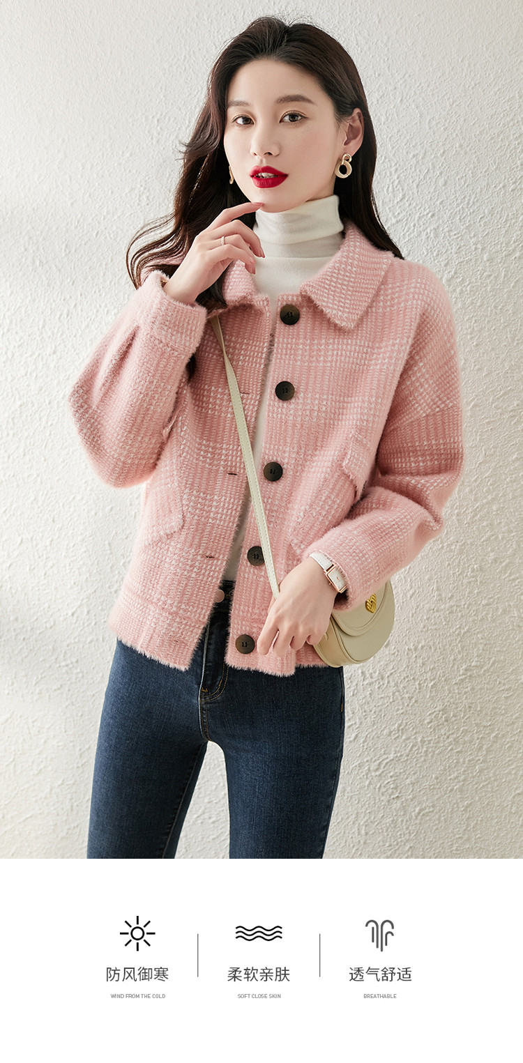 RM28863#清新风翻领格纹气质外衣2023秋冬时尚长袖小香风厚外套女