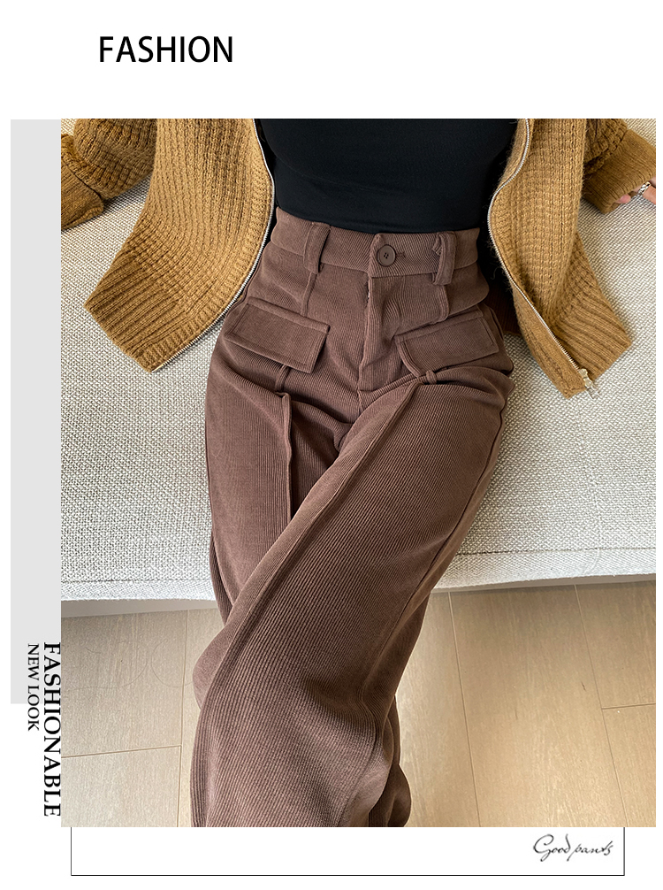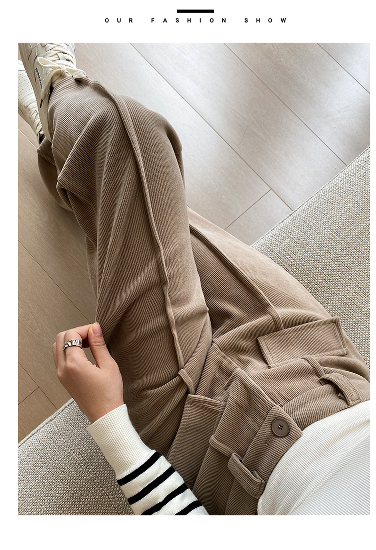 RM28873#欧棉绒高腰垂感窄版阔腿女秋装新款宽松显瘦直筒拖地长裤休闲裤子