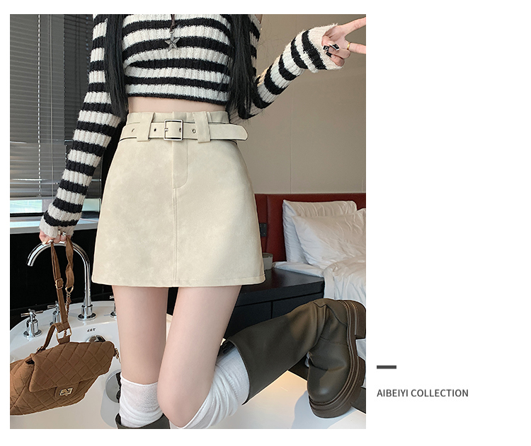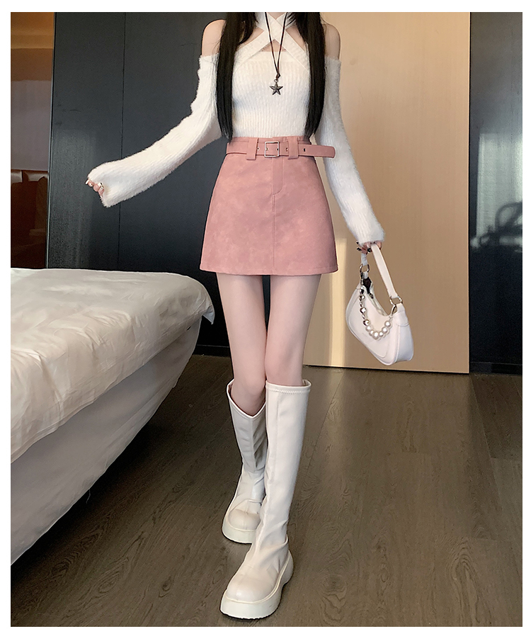 RM28897#芭比粉pu皮半身裙女秋冬高腰a字包臀御姐超火半裙小个子短裙
