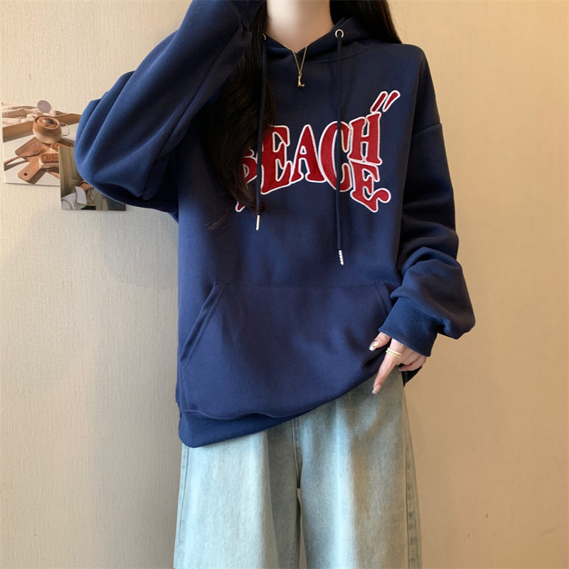 RM28929#纯棉面复合超柔 加绒加厚美式字母刺绣宽松复古街头连帽卫衣