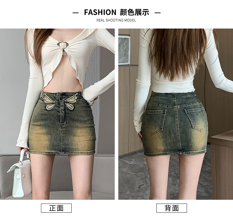 RM28992#蝴蝶刺绣牛仔短裙女2023秋季新款性感辣妹显瘦弹力紧身包臀短裙潮