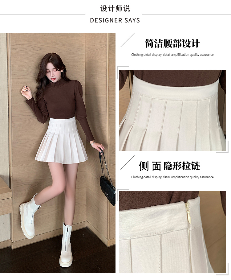 RM29006#秋冬毛呢半身裙女高腰显瘦a字短裙学院风百褶裙呢子裙裤