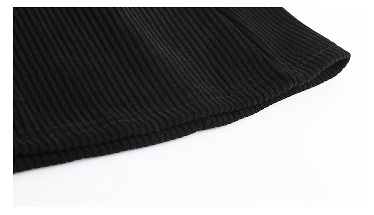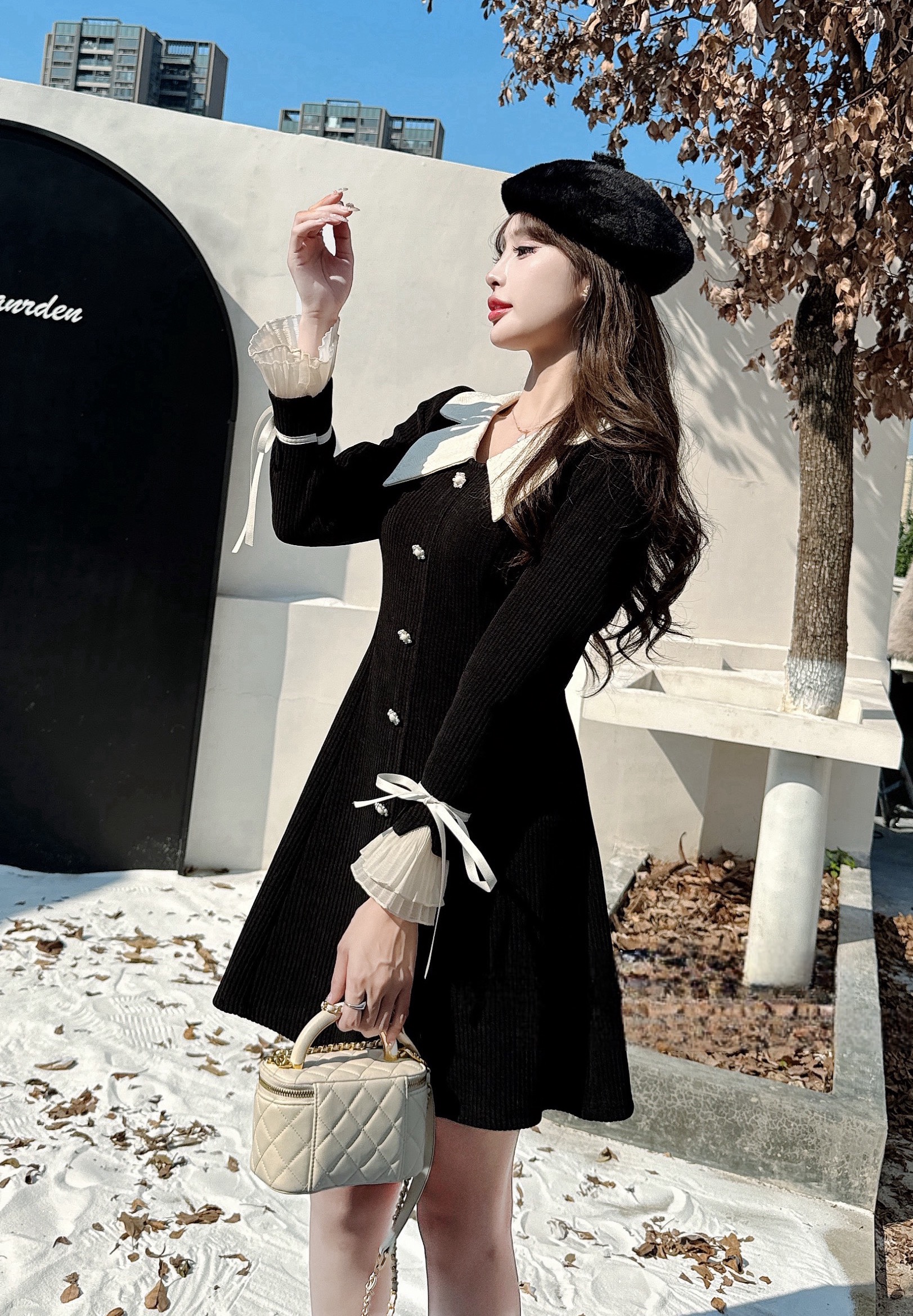 RM29014#高级感赫本风小个子减龄娃娃领厚灯芯绒收腰显瘦黑色连衣裙女
