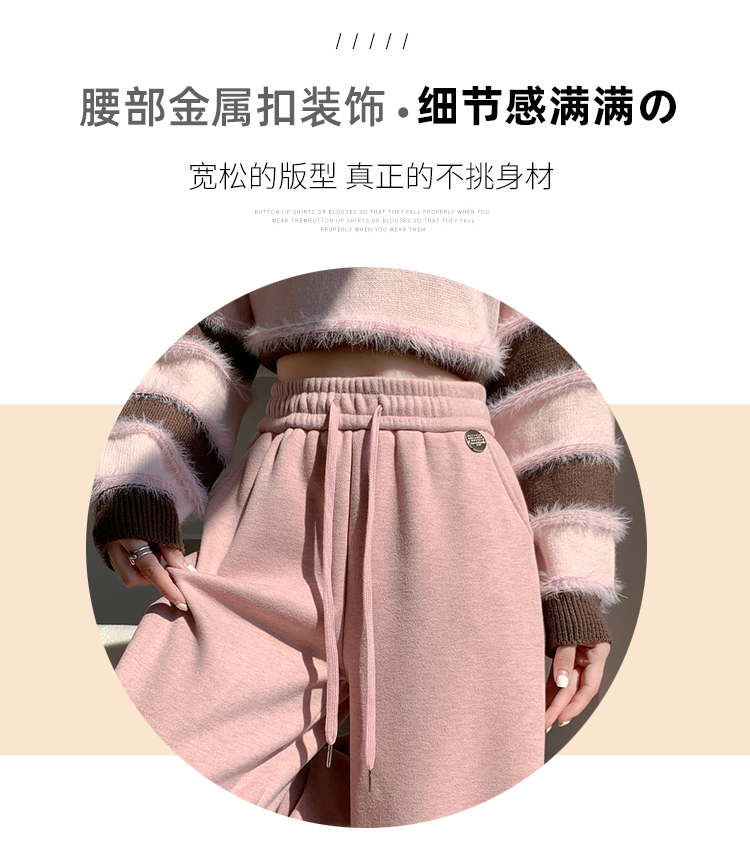 RM29017#羊绒阔腿裤女秋冬季2023新款高腰垂感小个子加绒休闲直筒裤子
