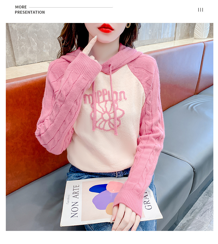 RM29038#甜美绣花连帽针织衫卫衣女2023秋季新款外穿减龄短款套头毛衣