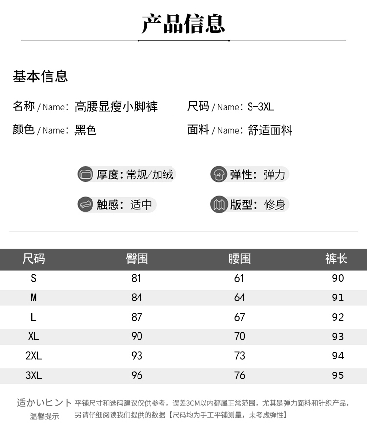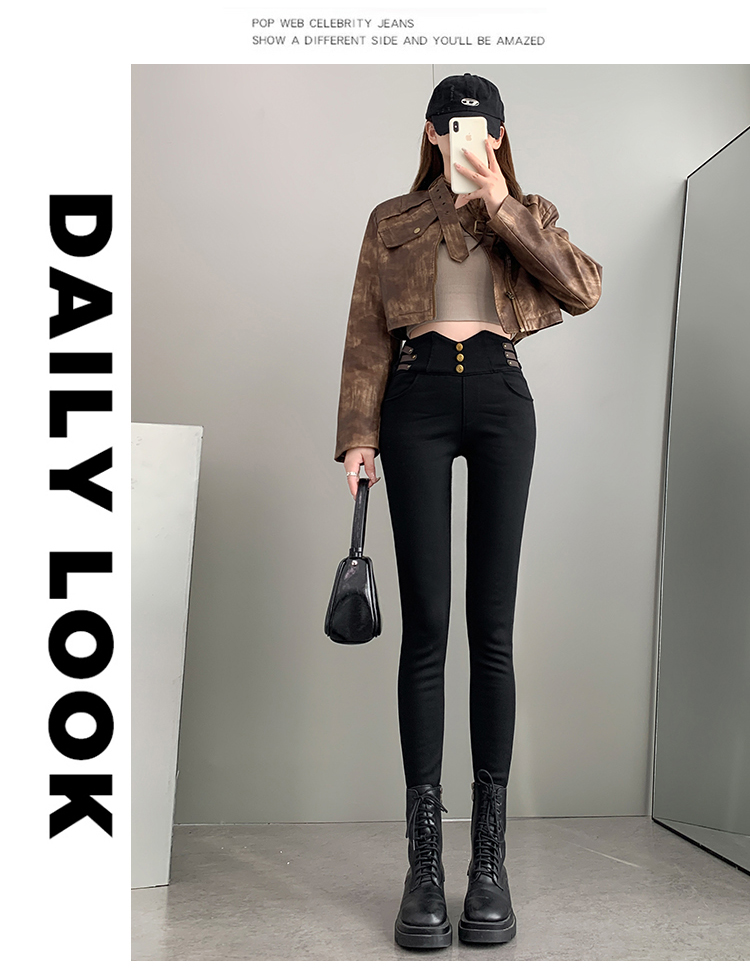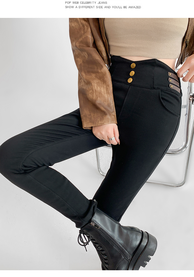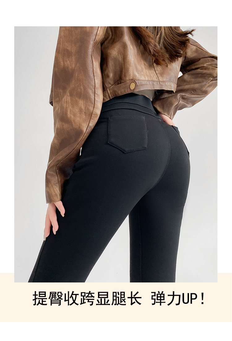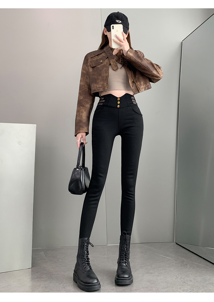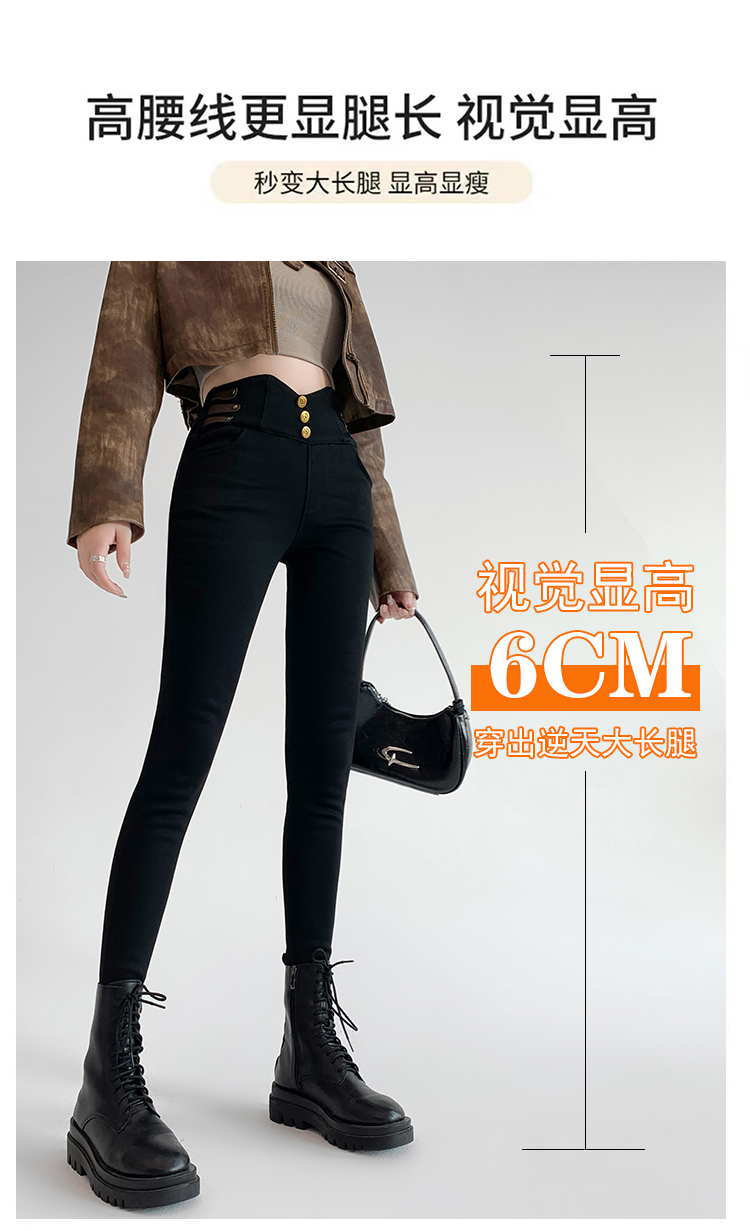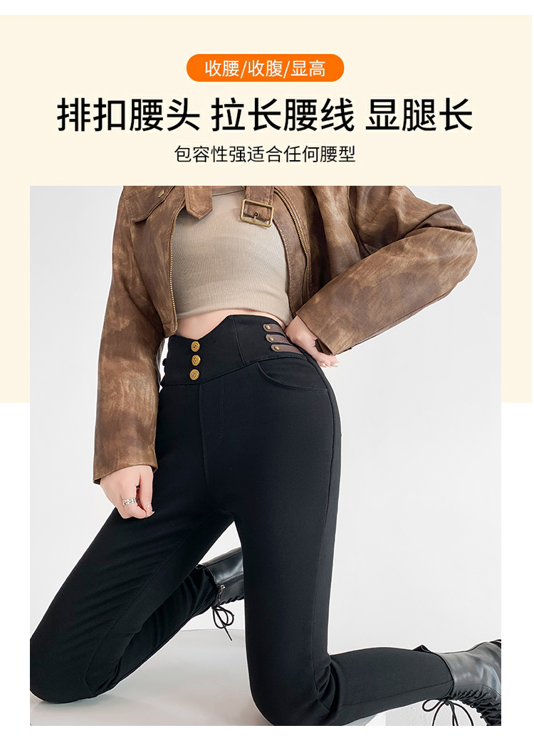 RM29046#黑色打底裤女秋冬外穿加绒高腰弹力小黑裤冬季加绒紧身铅笔小脚裤