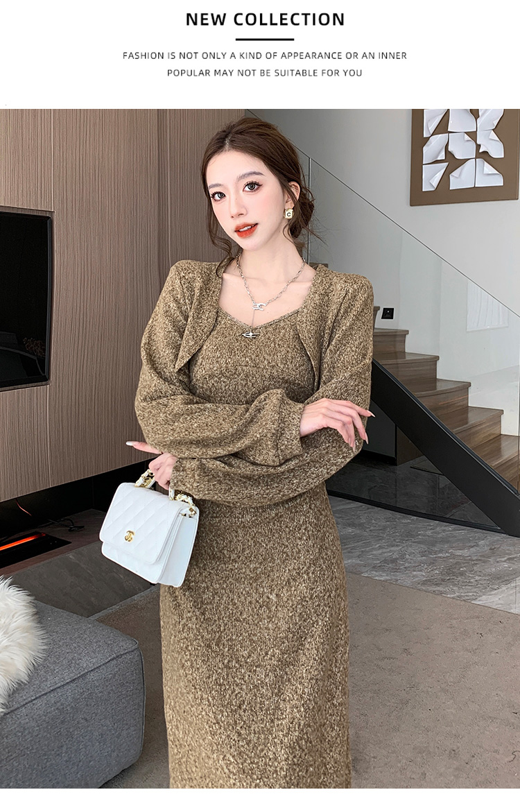 RM29228#新设计感开衫两件套高腰吊带中长款连衣裙