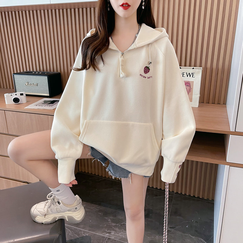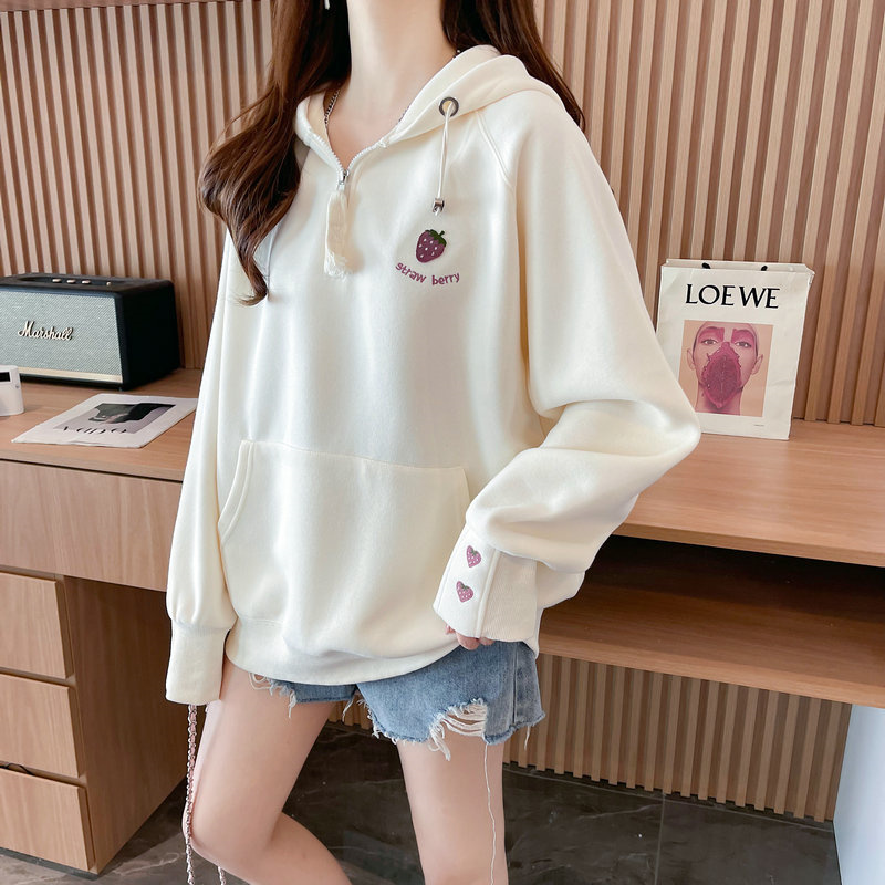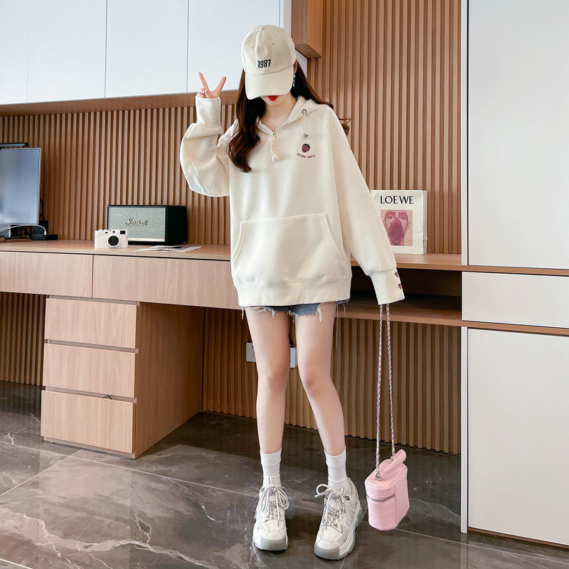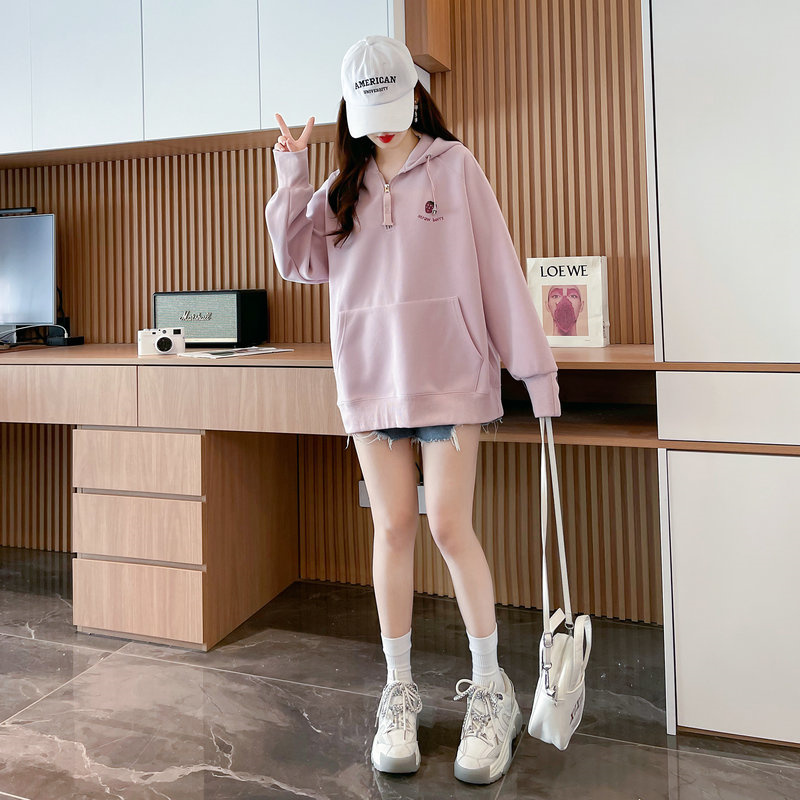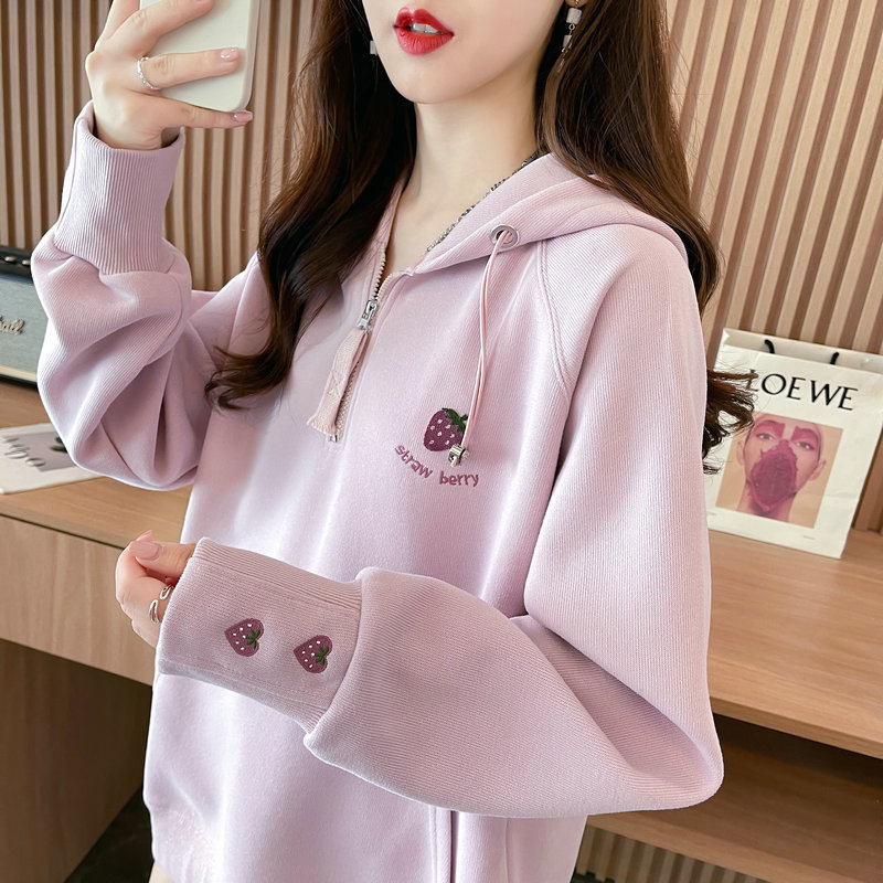 RM29313#仿棉华棉复合贝贝绒加绒棒球服卫衣女百搭韩版宽松外套潮