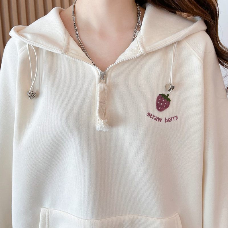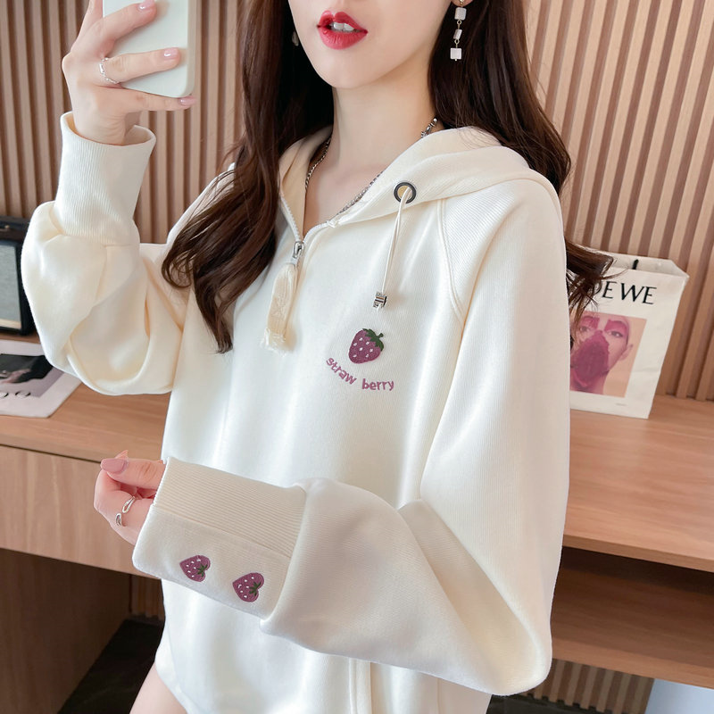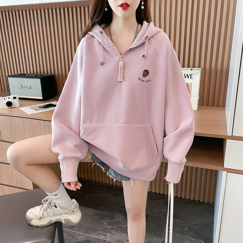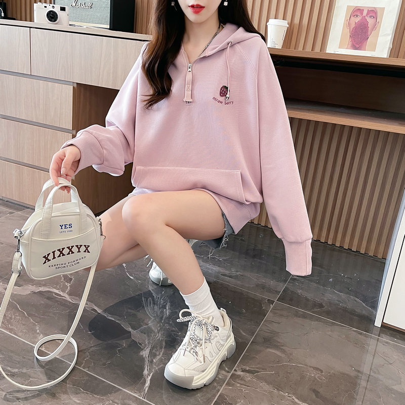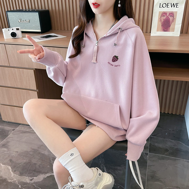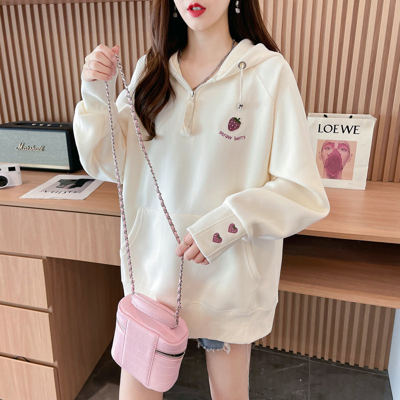 RM29313#仿棉华棉复合贝贝绒加绒棒球服卫衣女百搭韩版宽松外套潮