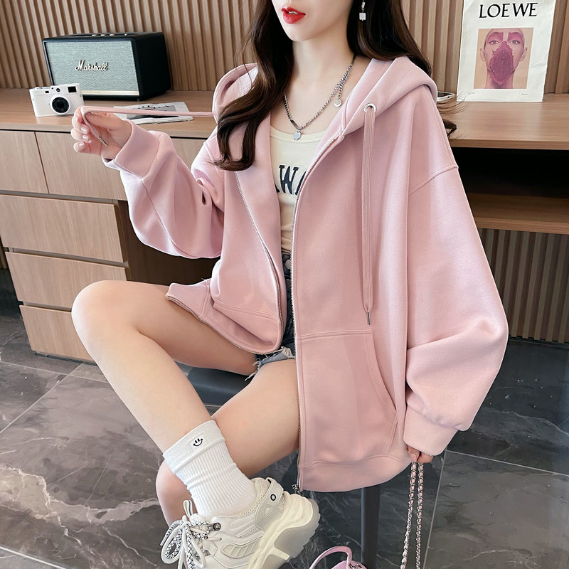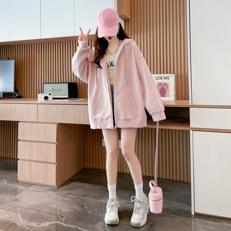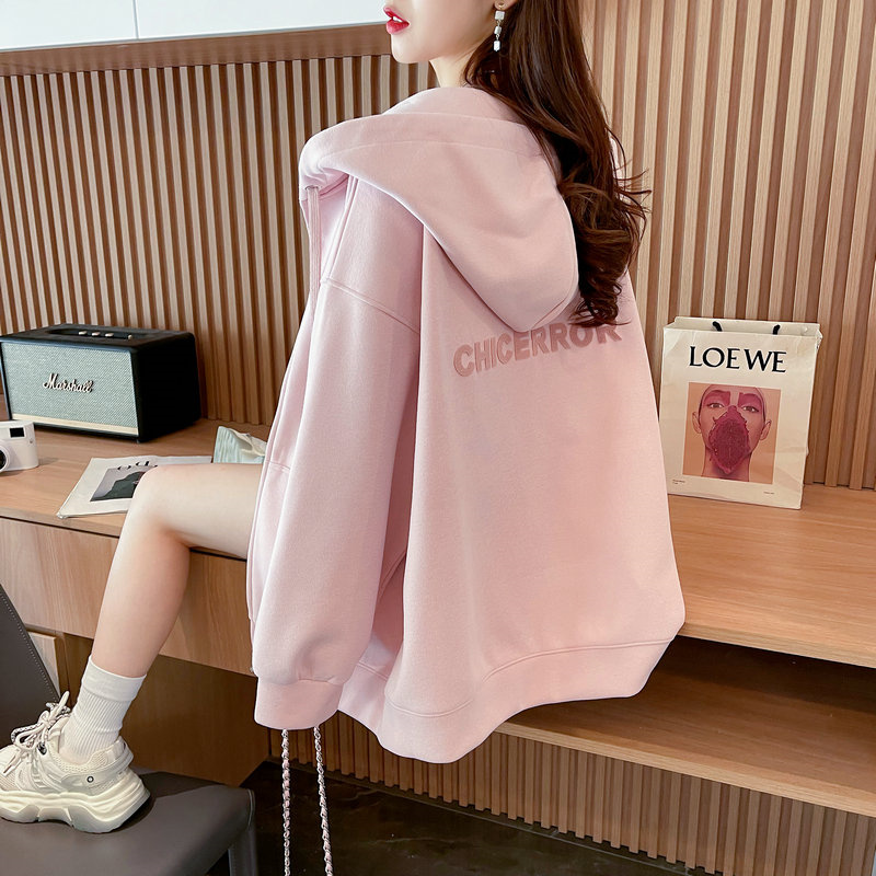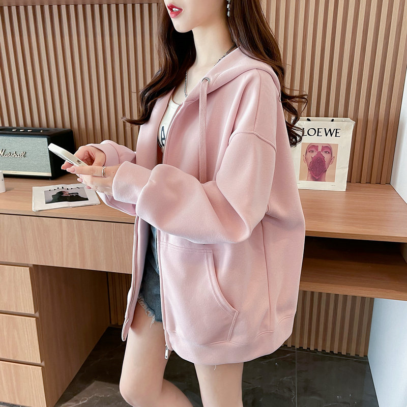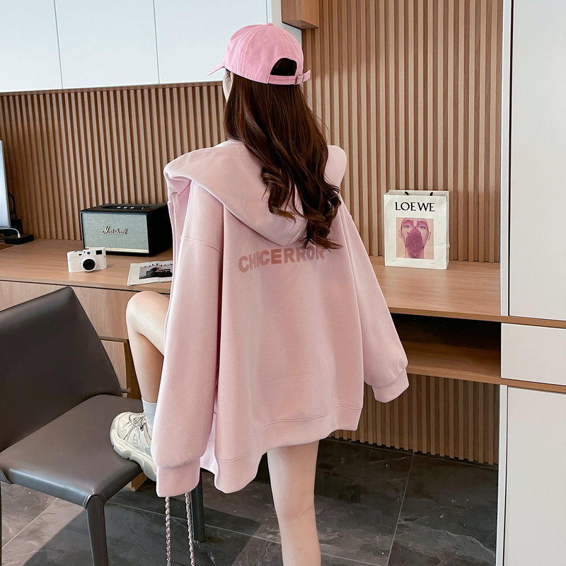 RM29315#仿棉华棉复合贝贝绒加绒棒球服卫衣女百搭韩版宽松外套潮