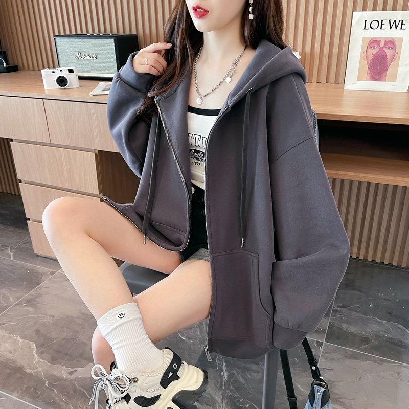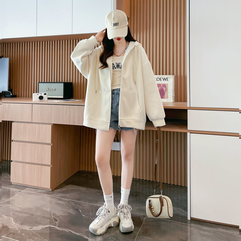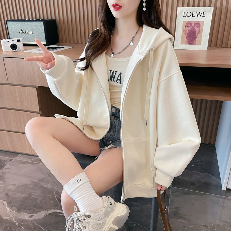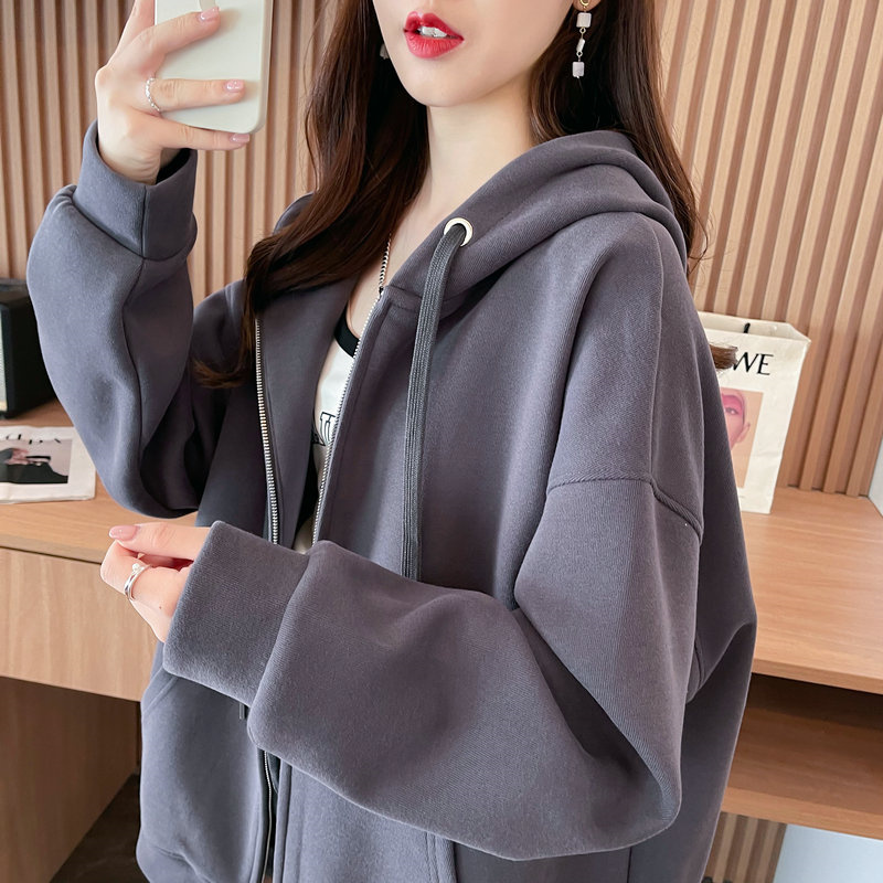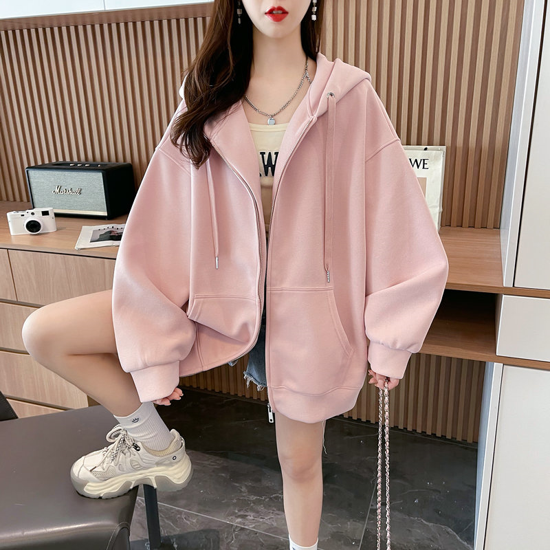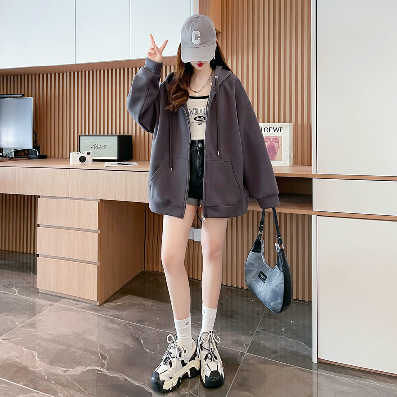 RM29315#仿棉华棉复合贝贝绒加绒棒球服卫衣女百搭韩版宽松外套潮
