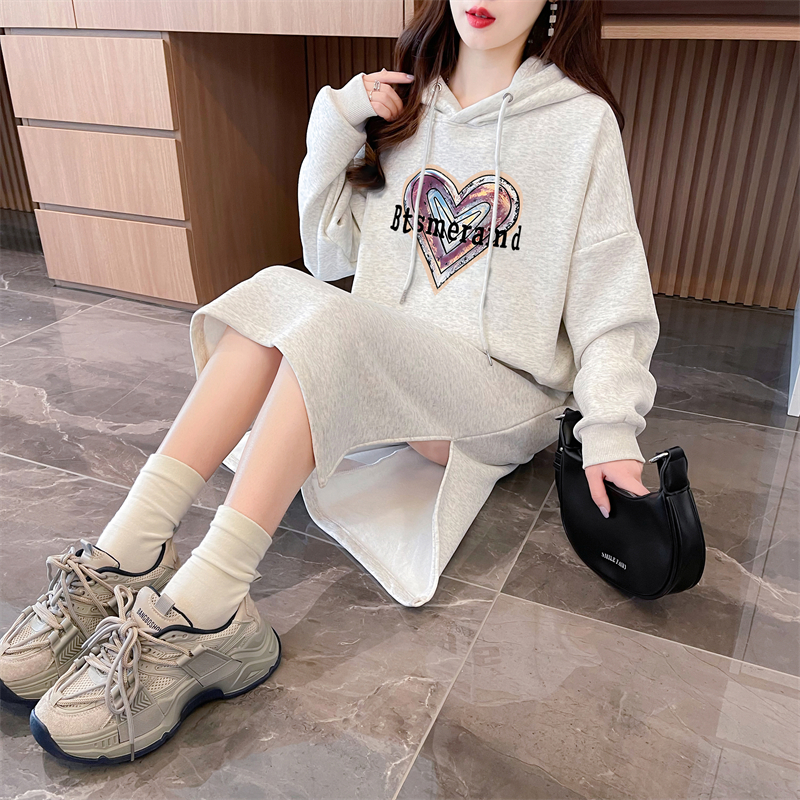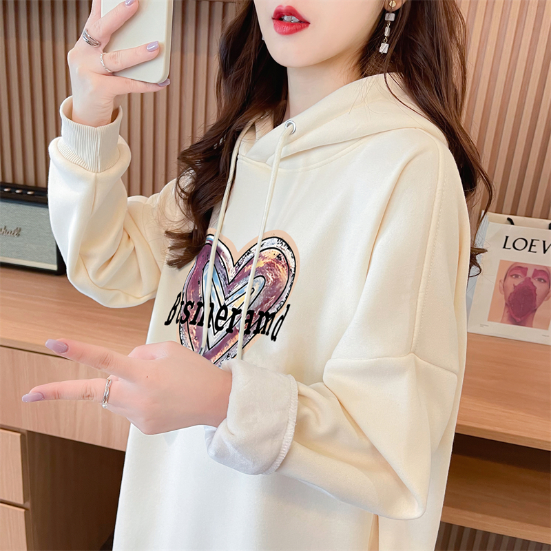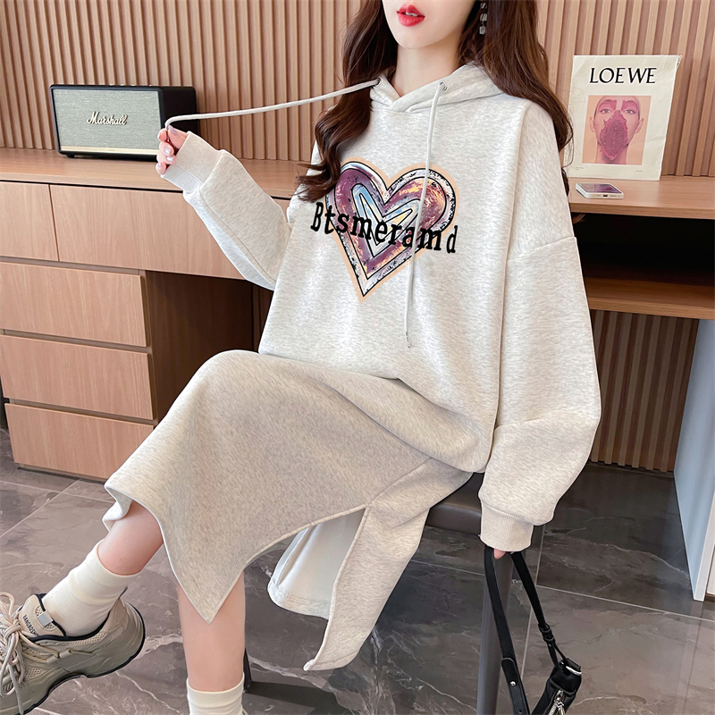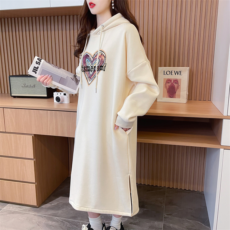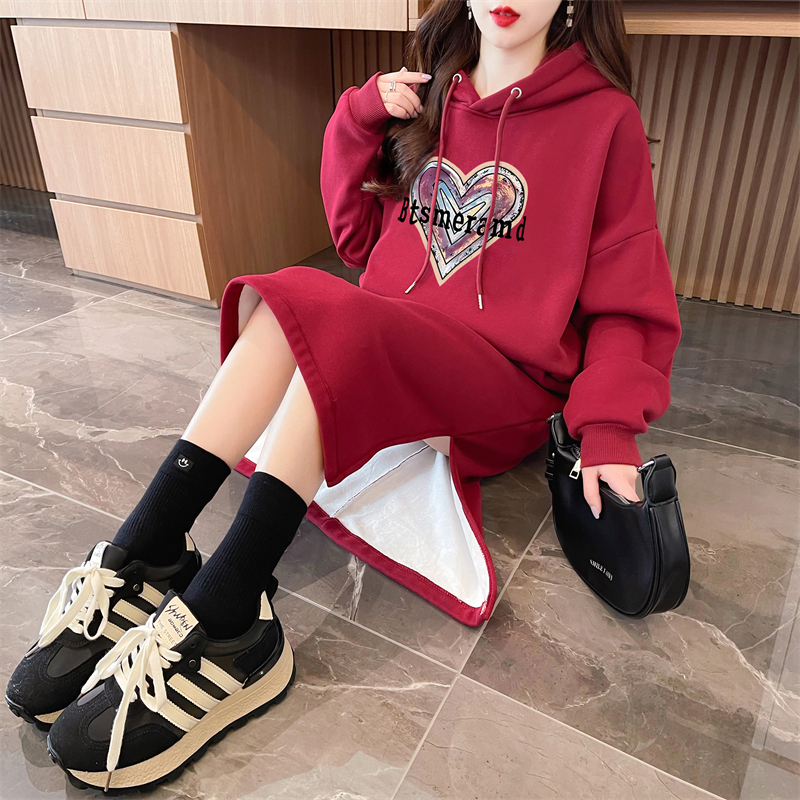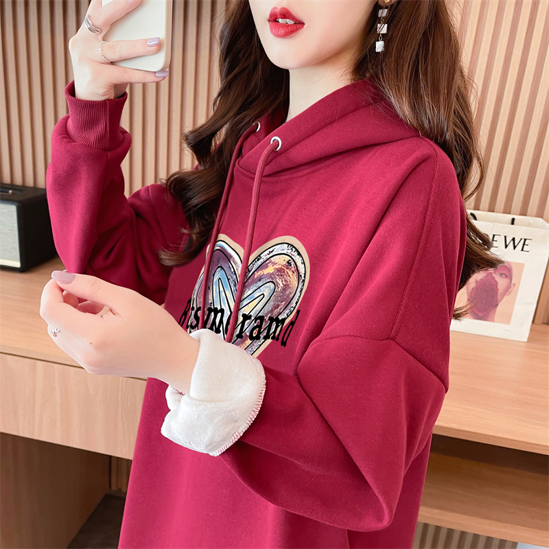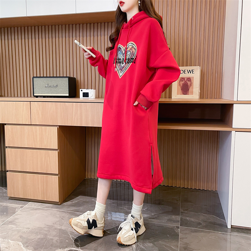 RM29336#华棉复合超柔 过膝长款红色加绒连帽卫衣