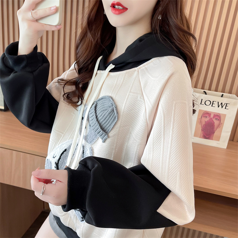 RM29338#提花复合贝贝绒外套2023年新款字母连帽卫衣