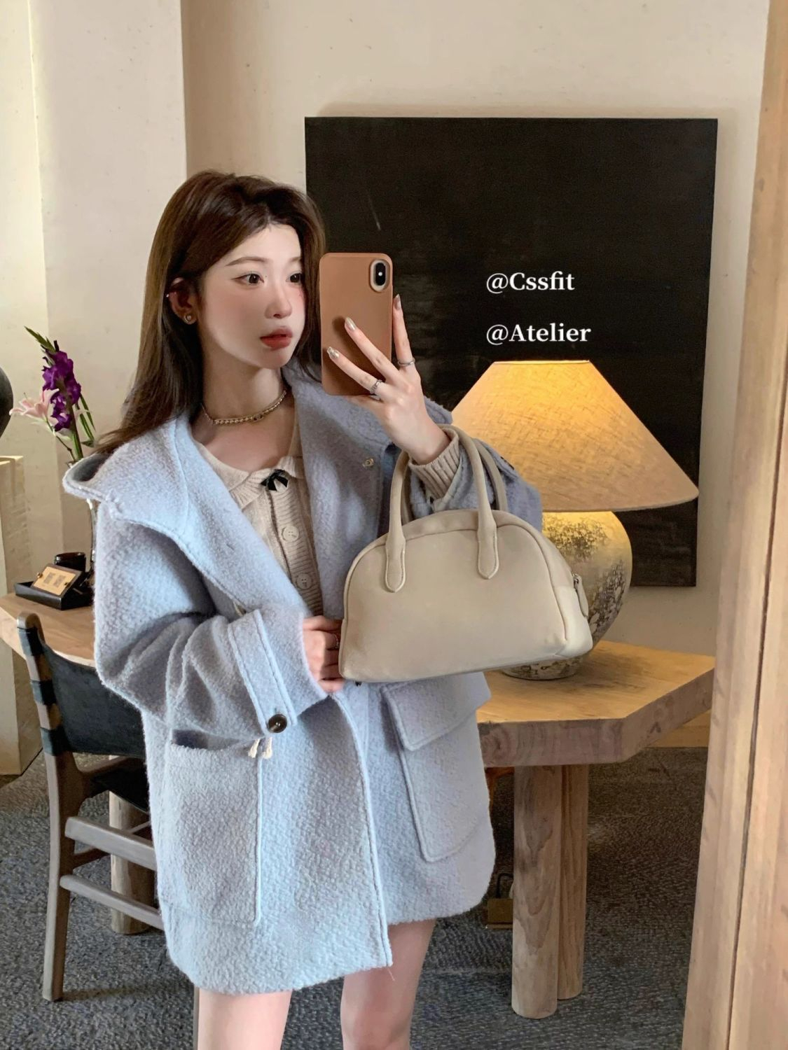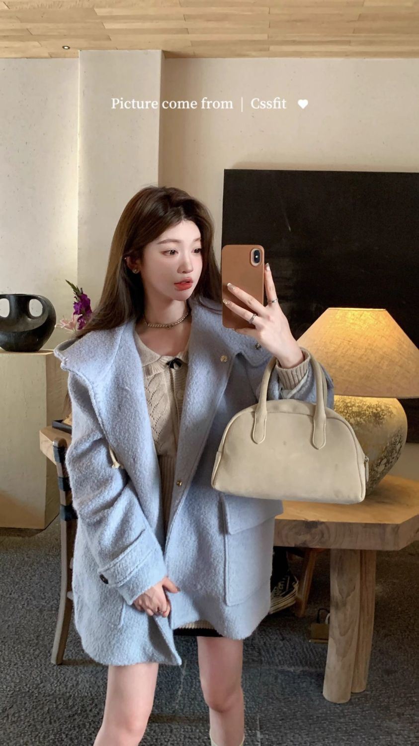 RM29343#甜美风毛呢大衣外套女秋冬2023新款学院风温柔奶系穿搭加绒外套潮