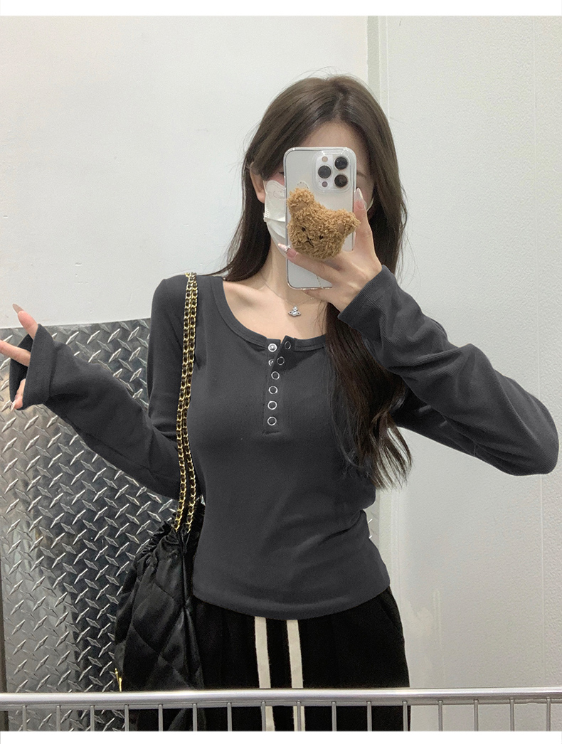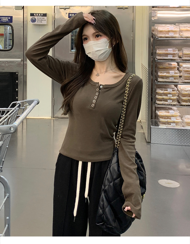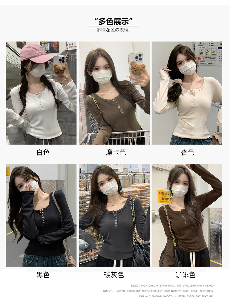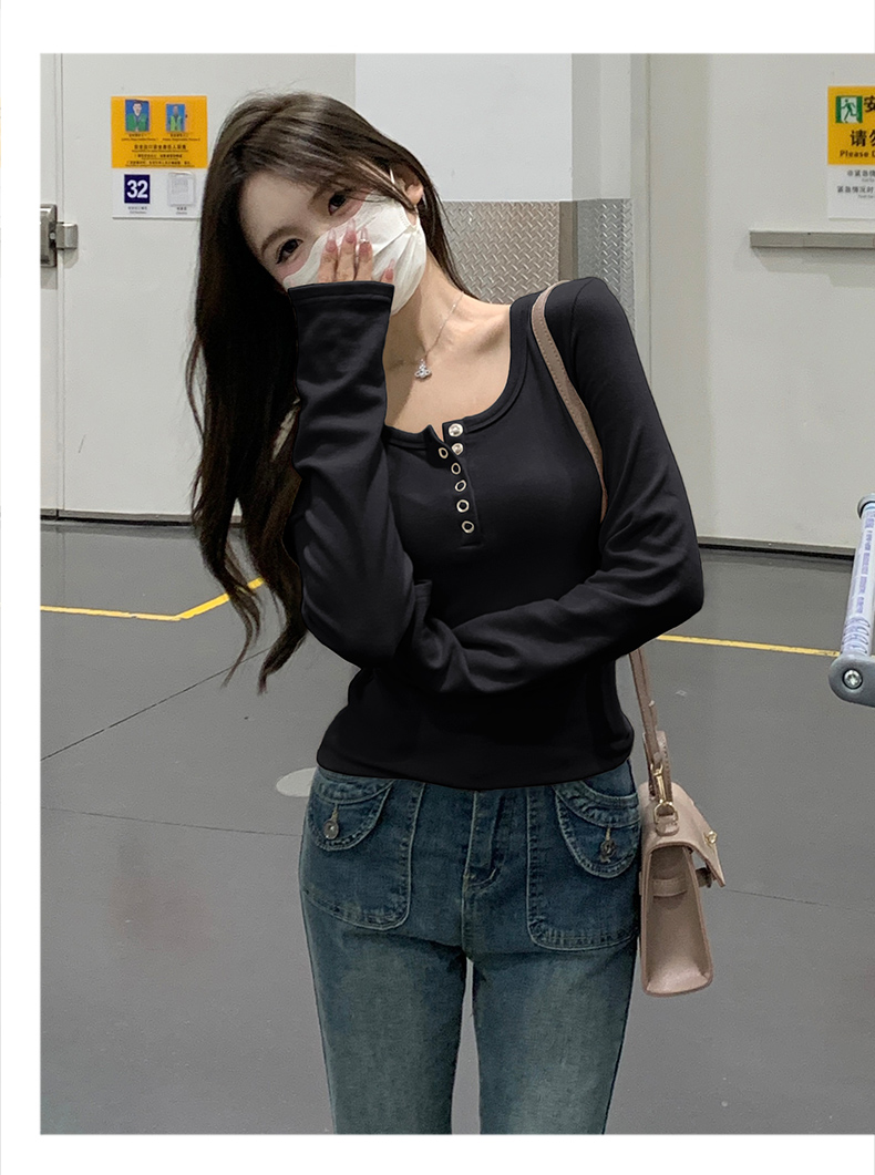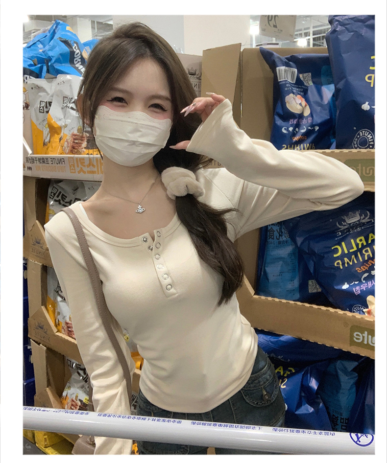 RM29380#加绒打底衫女内搭秋冬2023新款修身长袖t恤正肩上衣
