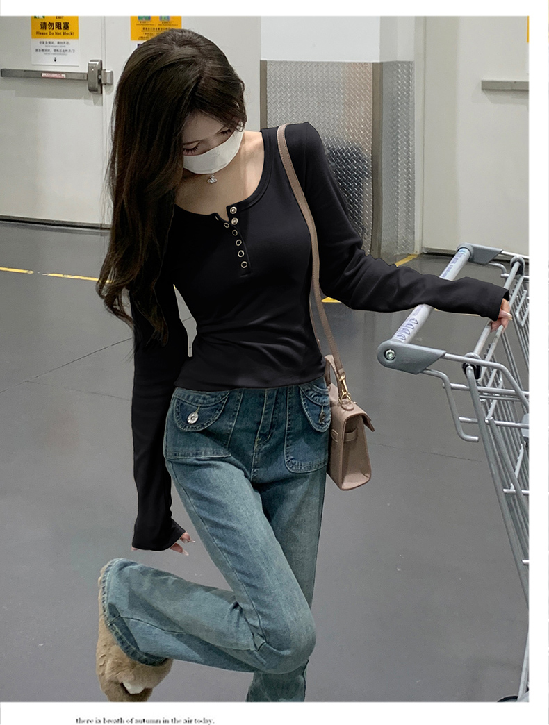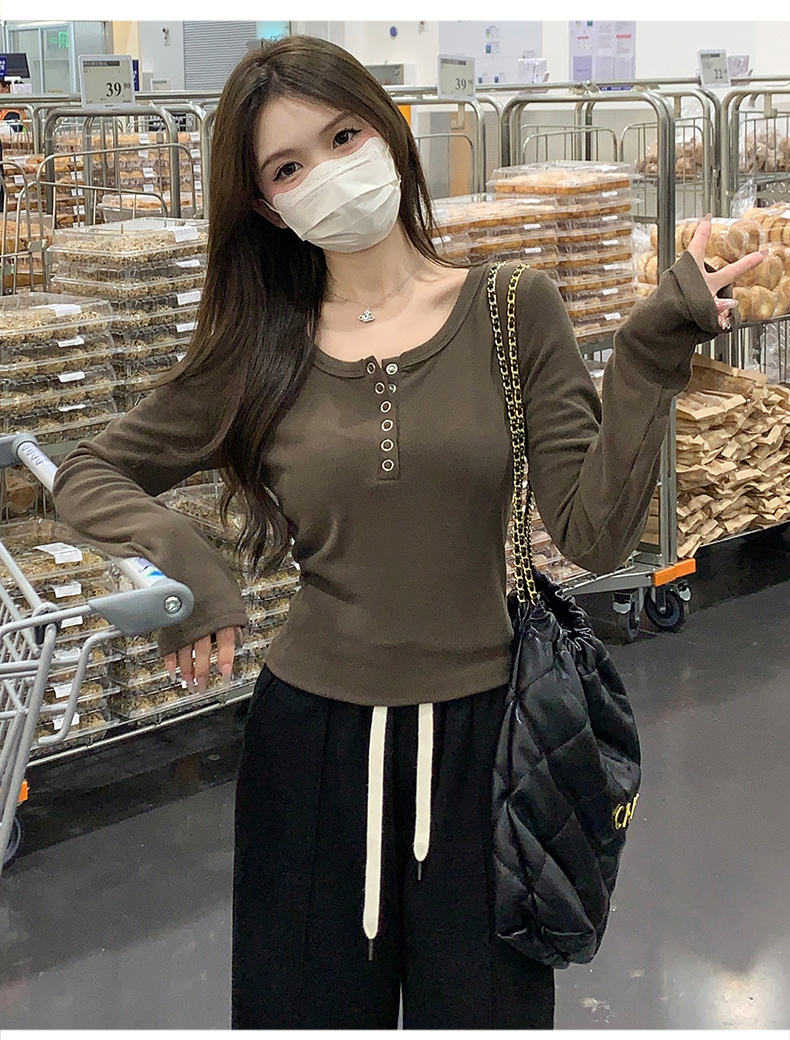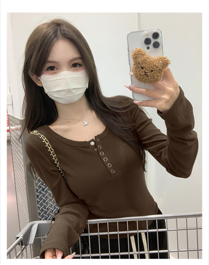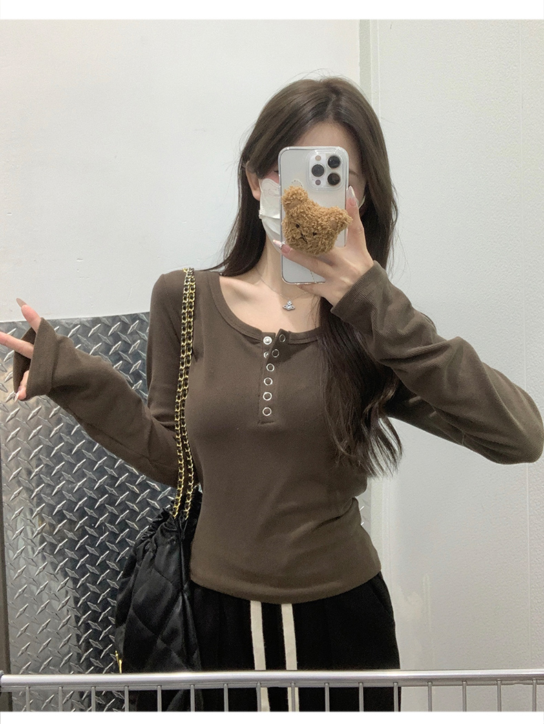 RM29380#加绒打底衫女内搭秋冬2023新款修身长袖t恤正肩上衣