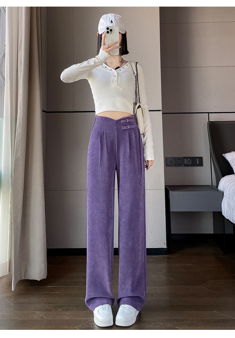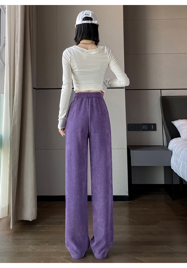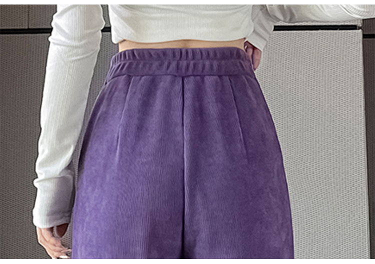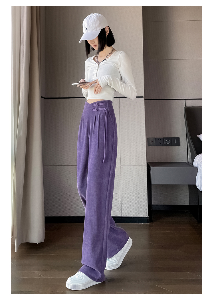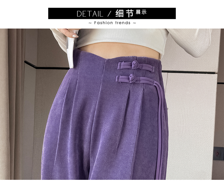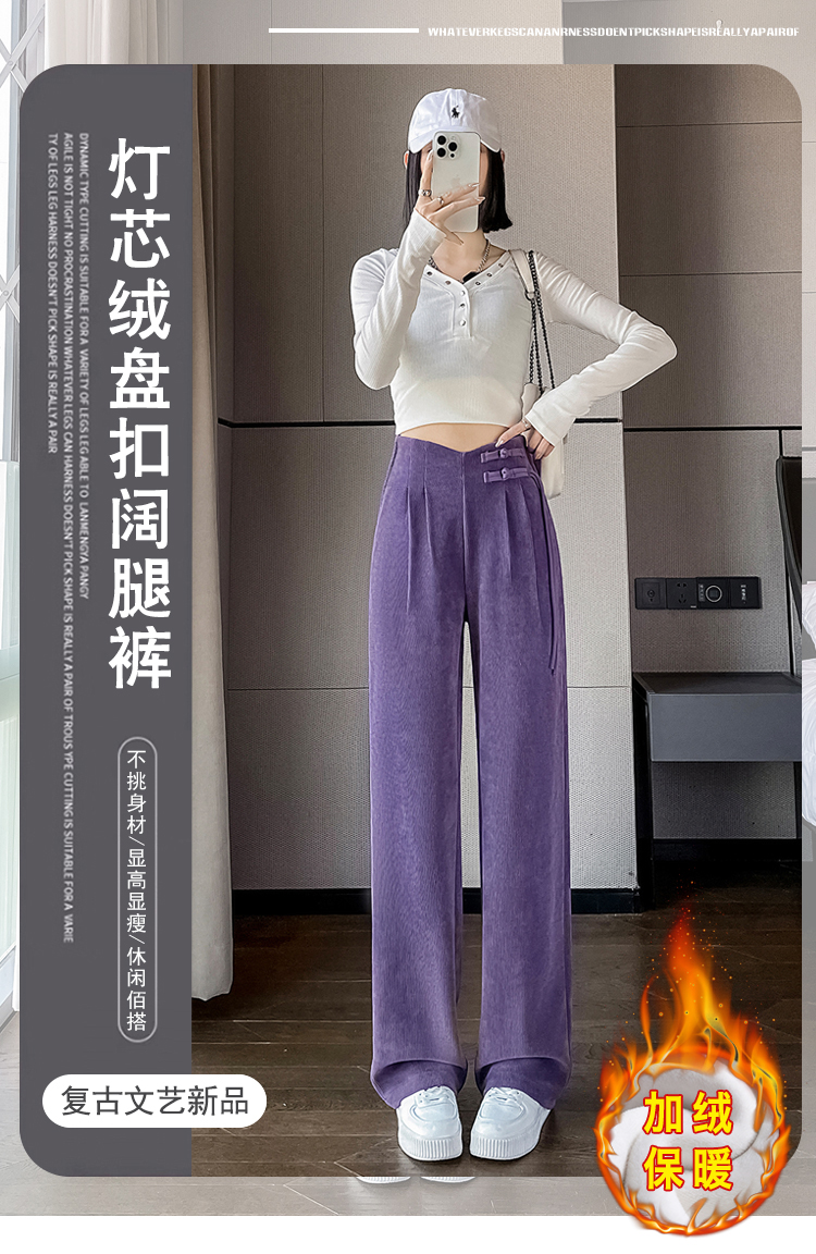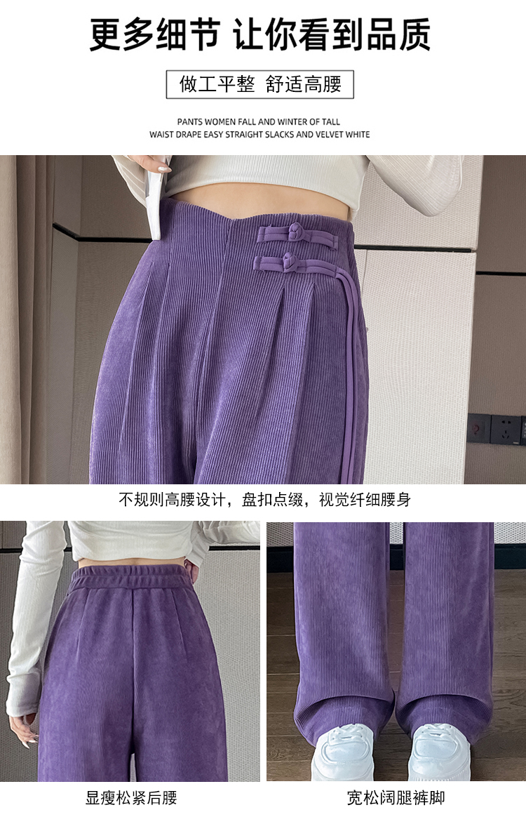 RM29389#紫色雪尼尔裤子女秋冬加绒加厚阔腿裤新中式高腰显瘦休闲裤子