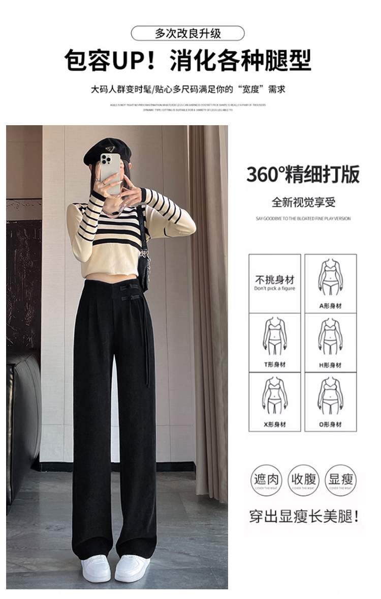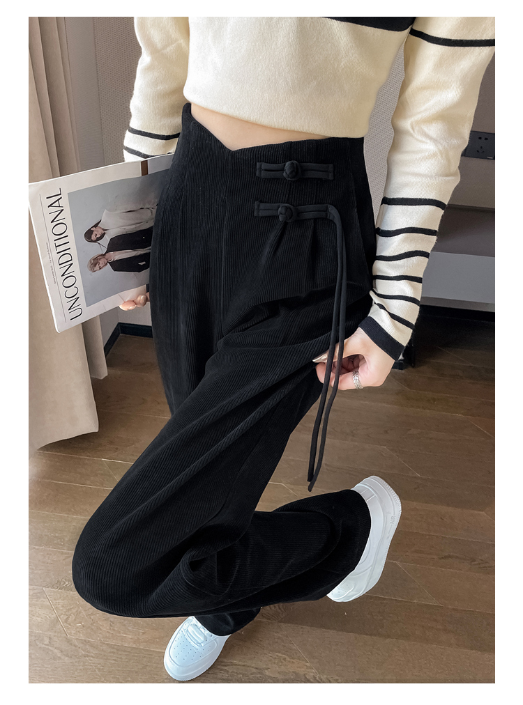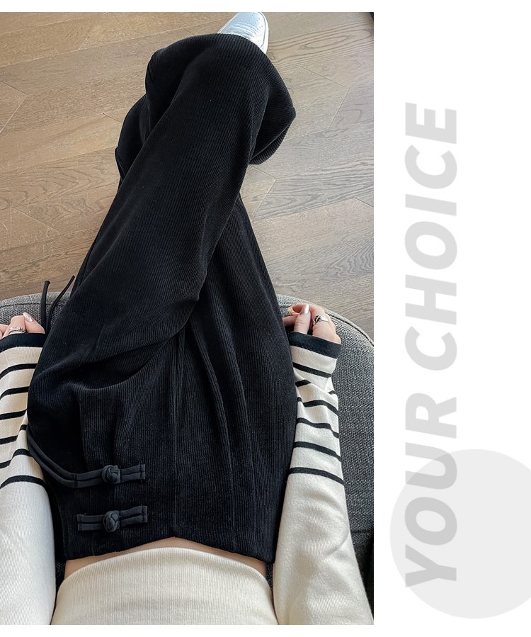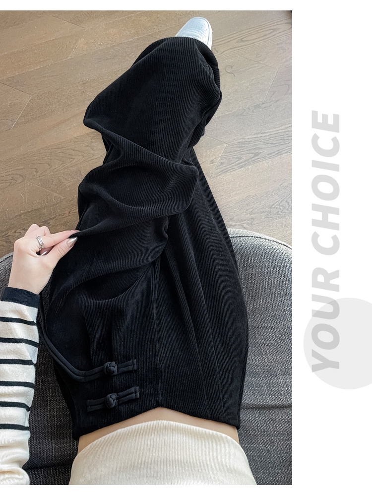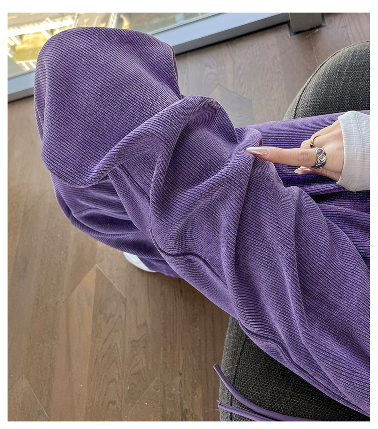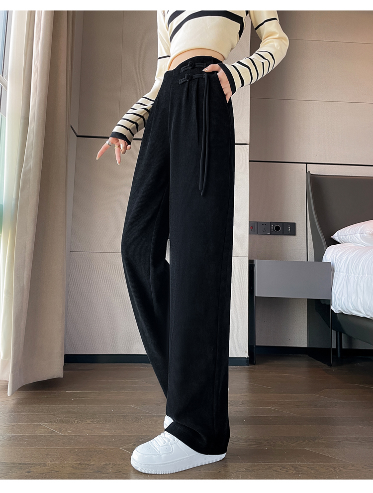 RM29389#紫色雪尼尔裤子女秋冬加绒加厚阔腿裤新中式高腰显瘦休闲裤子