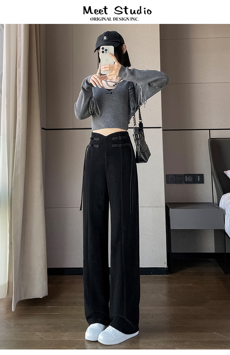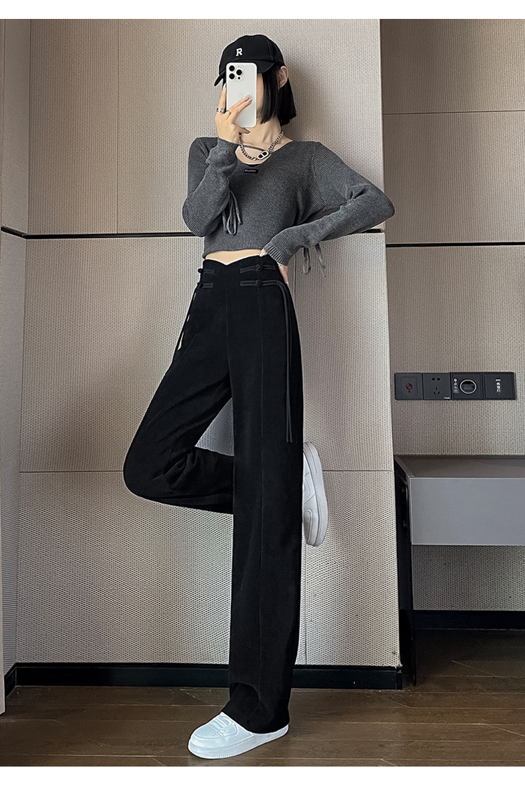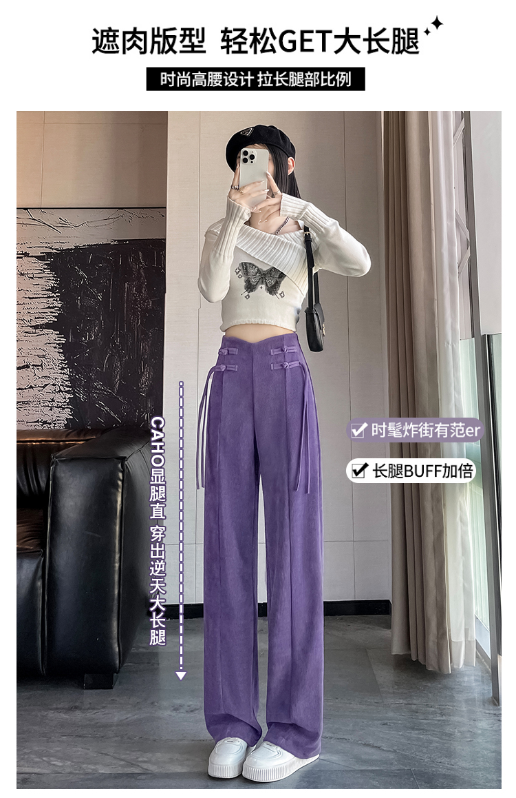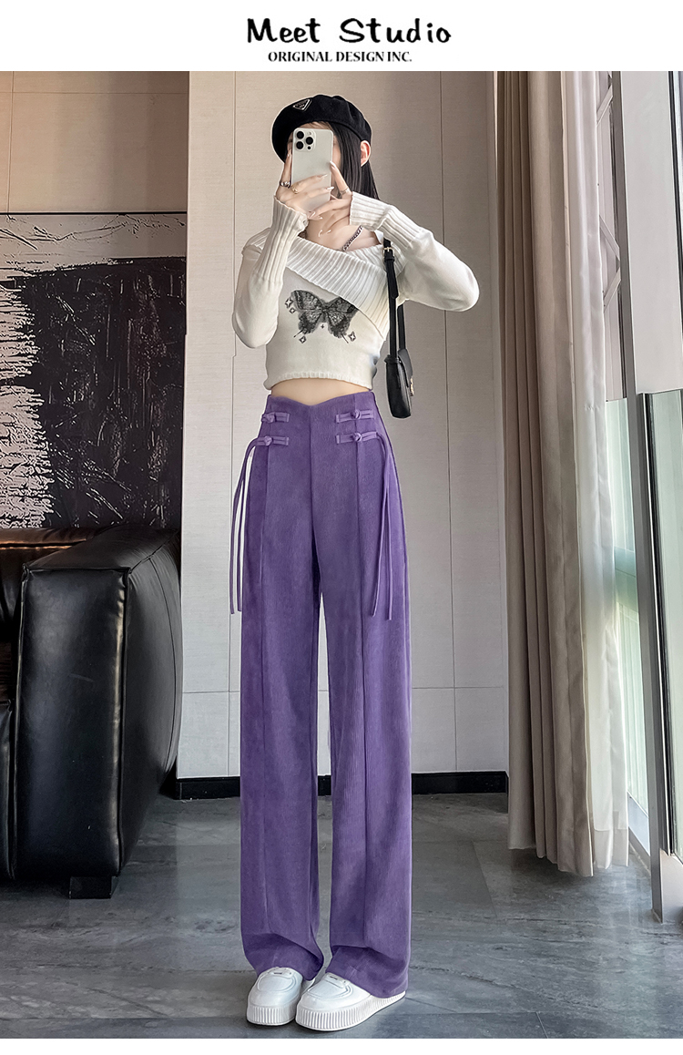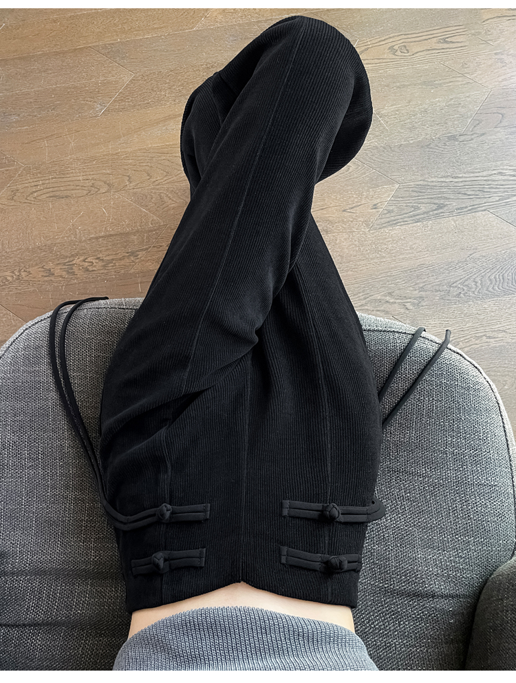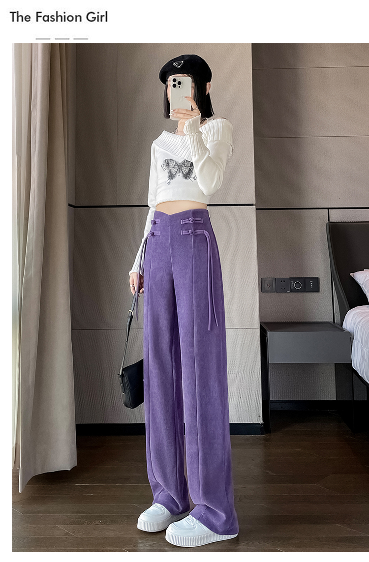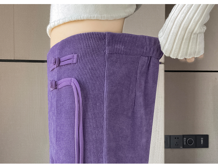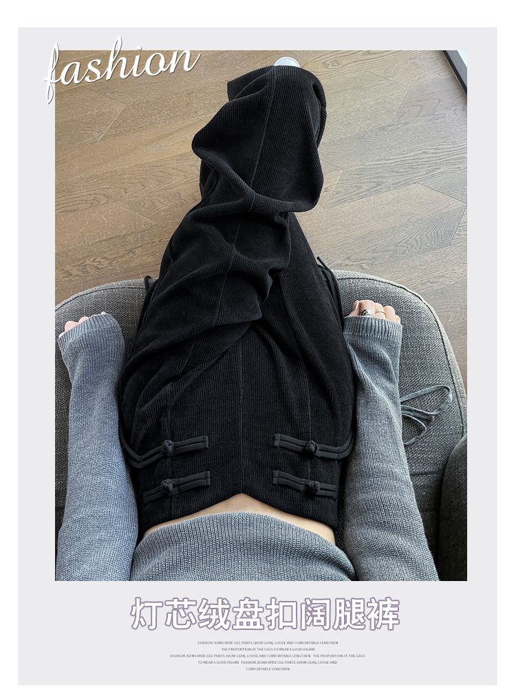 RM29404#新中式阔腿裤女秋冬加绒加厚雪尼尔休闲裤轻国风盘扣裤子