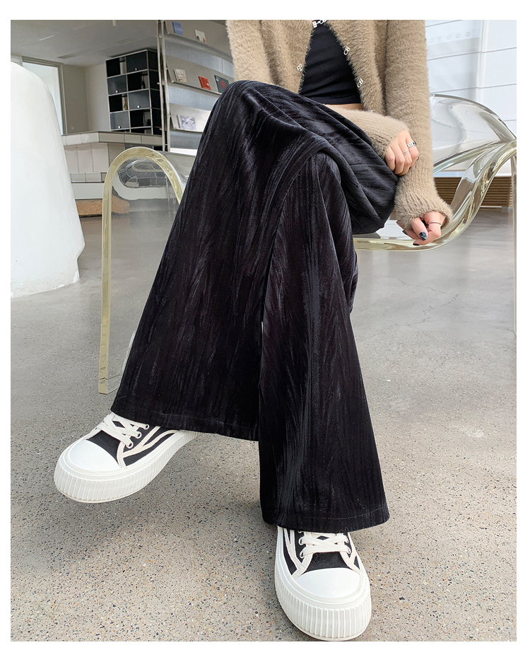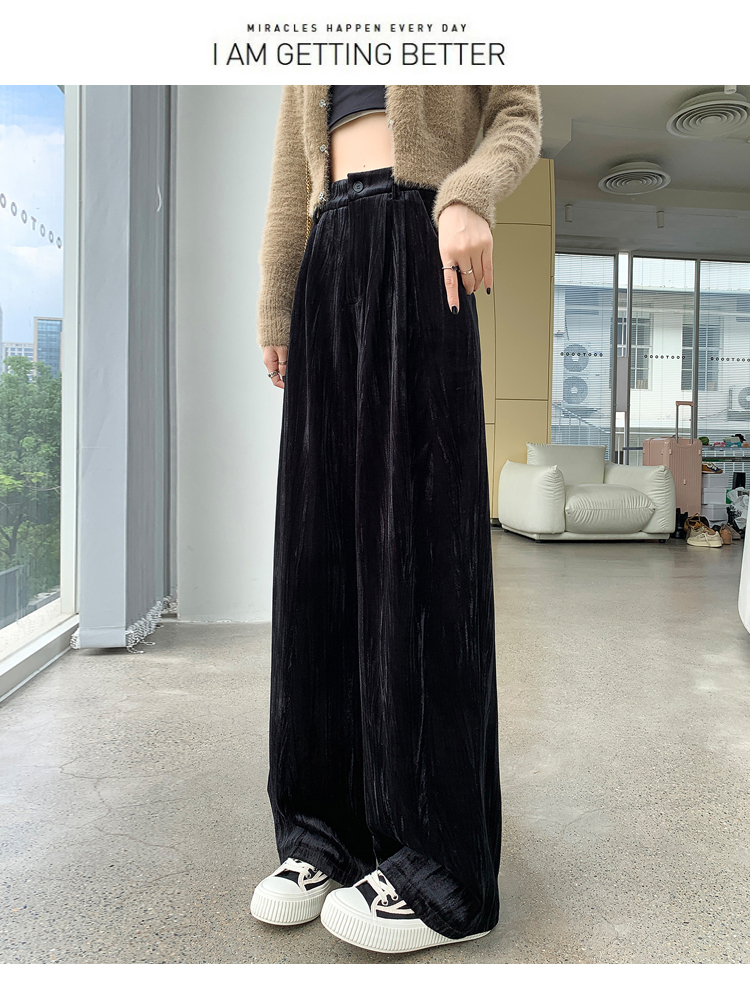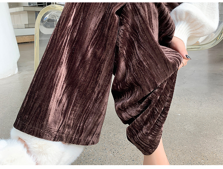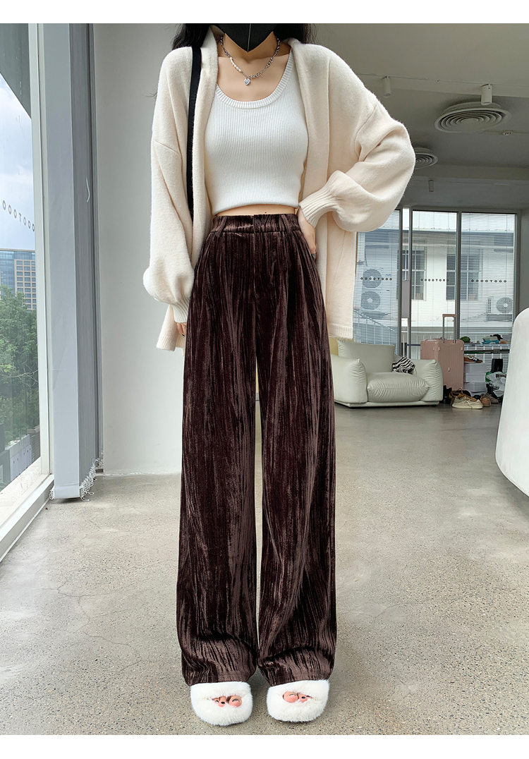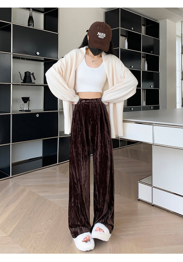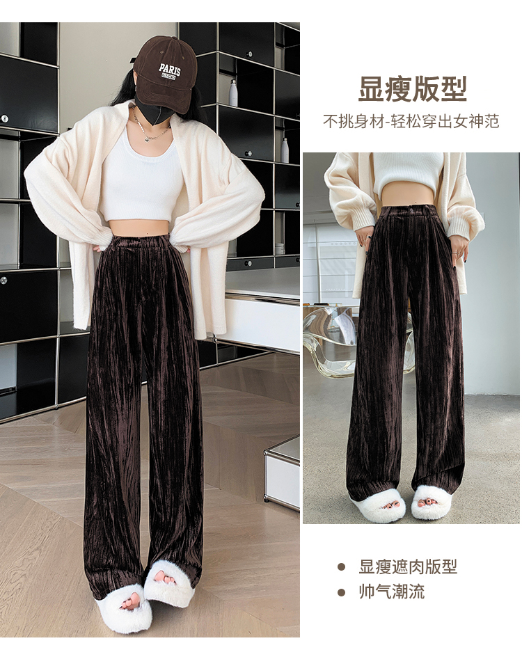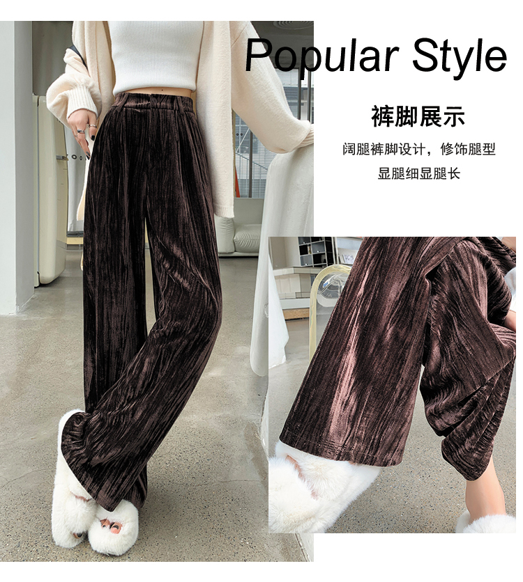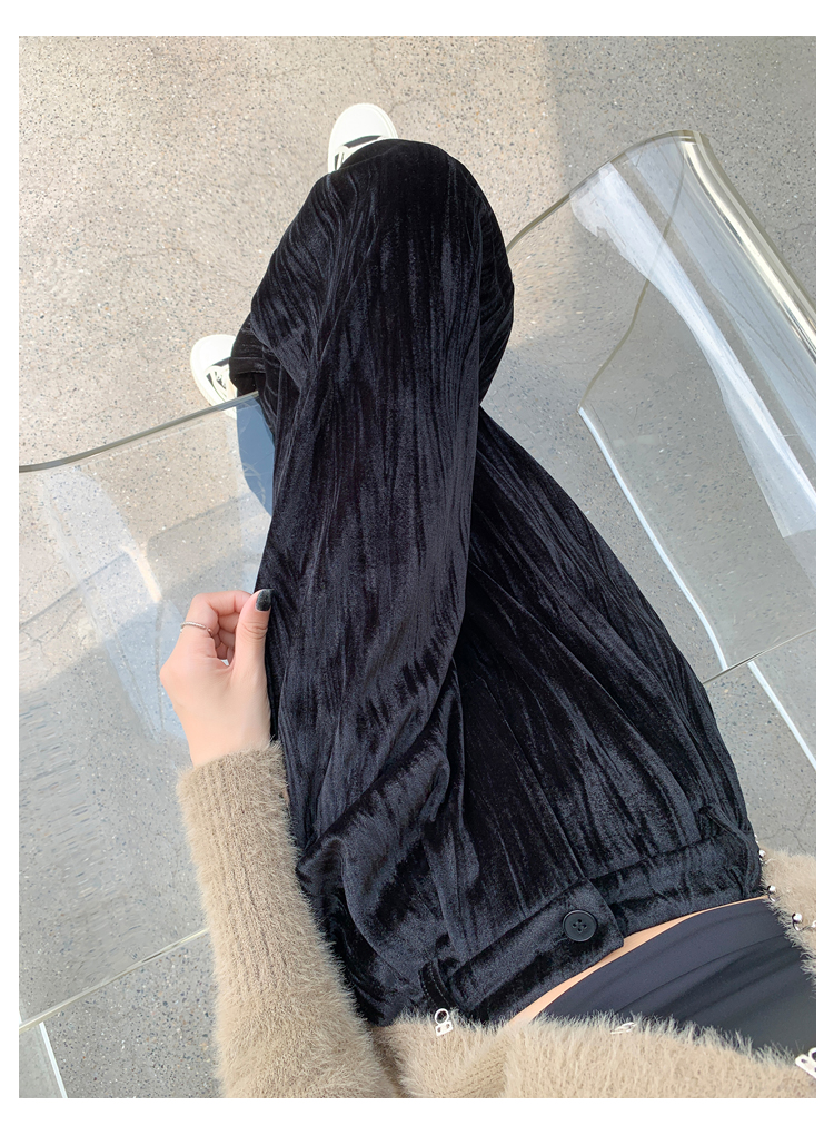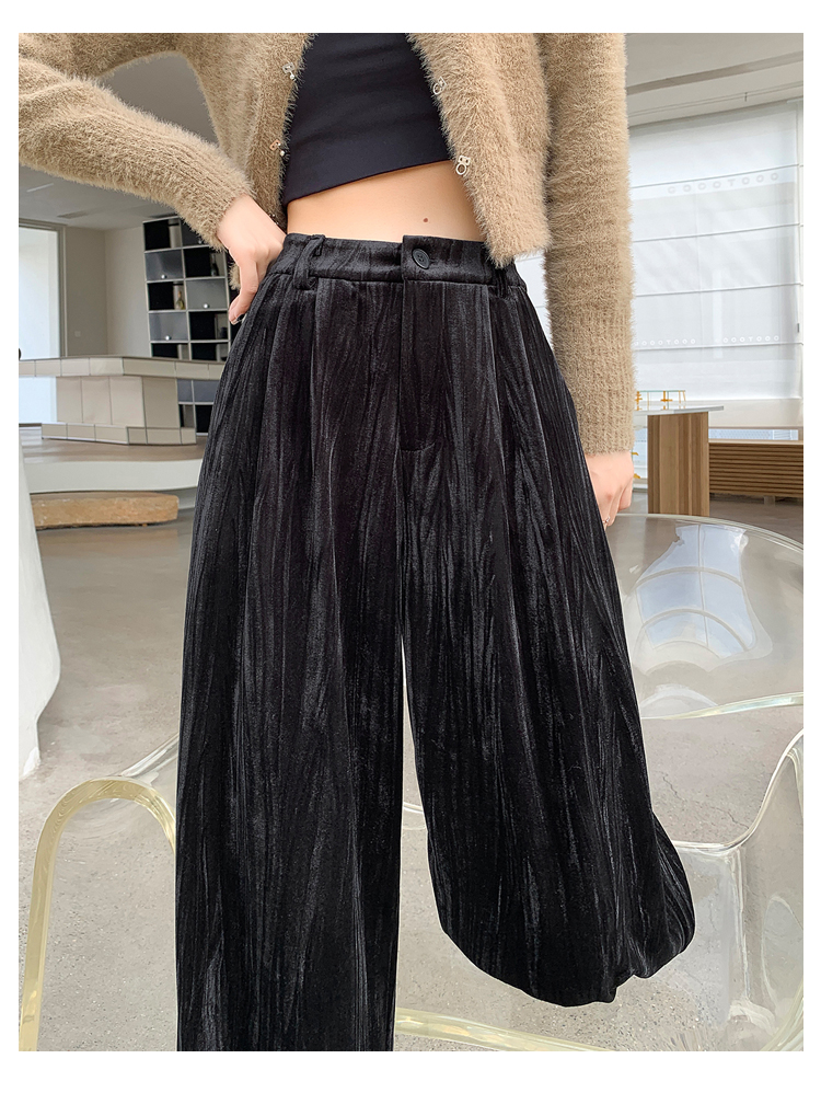 RM29408#金丝绒褶皱阔腿裤女2023秋冬垂感拖地休闲宽松灯芯绒直筒裤