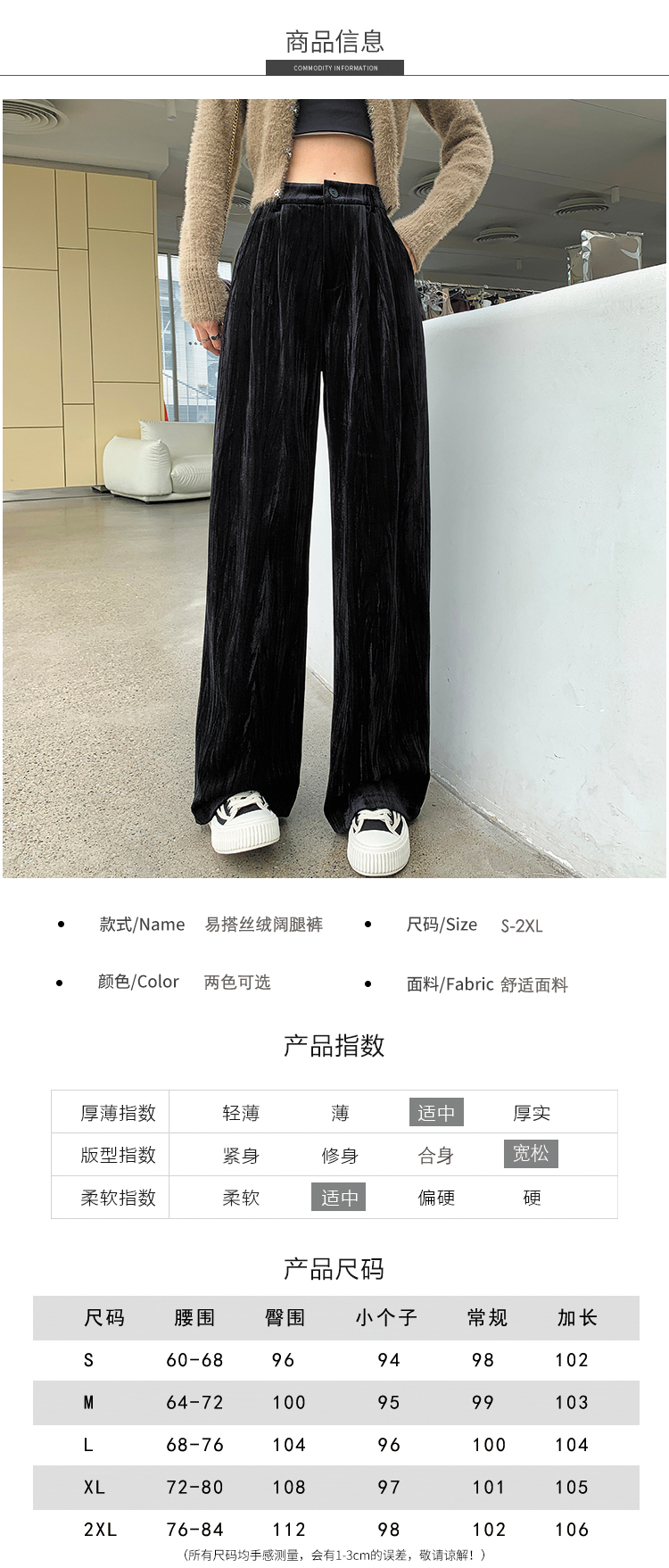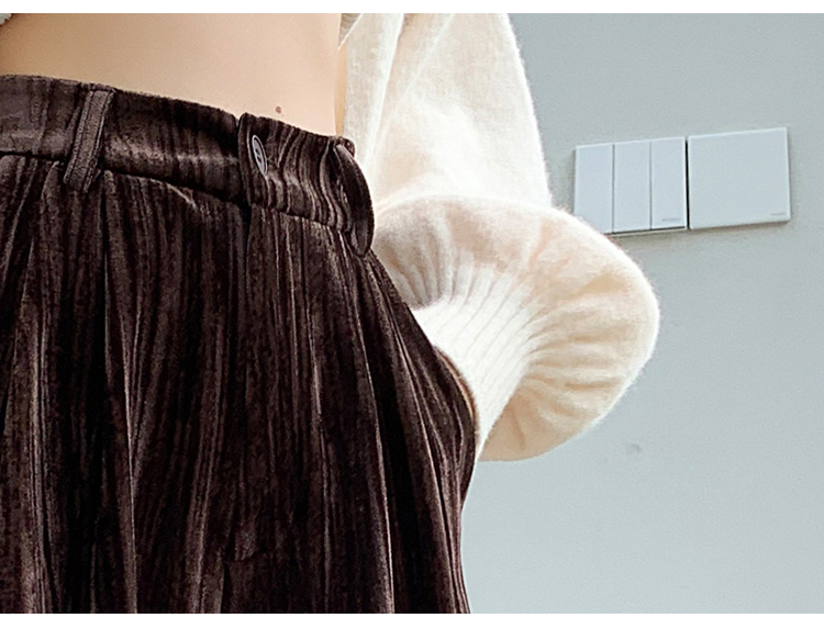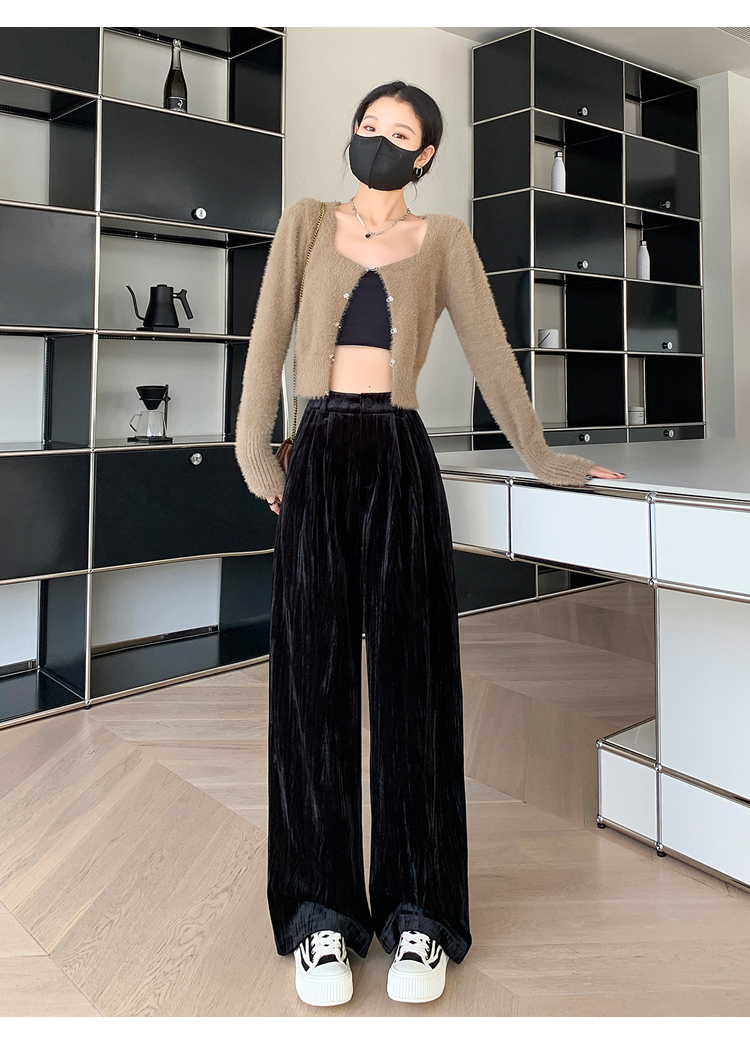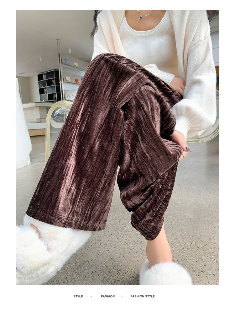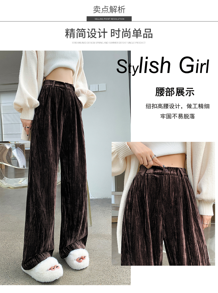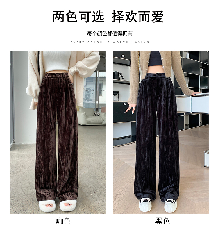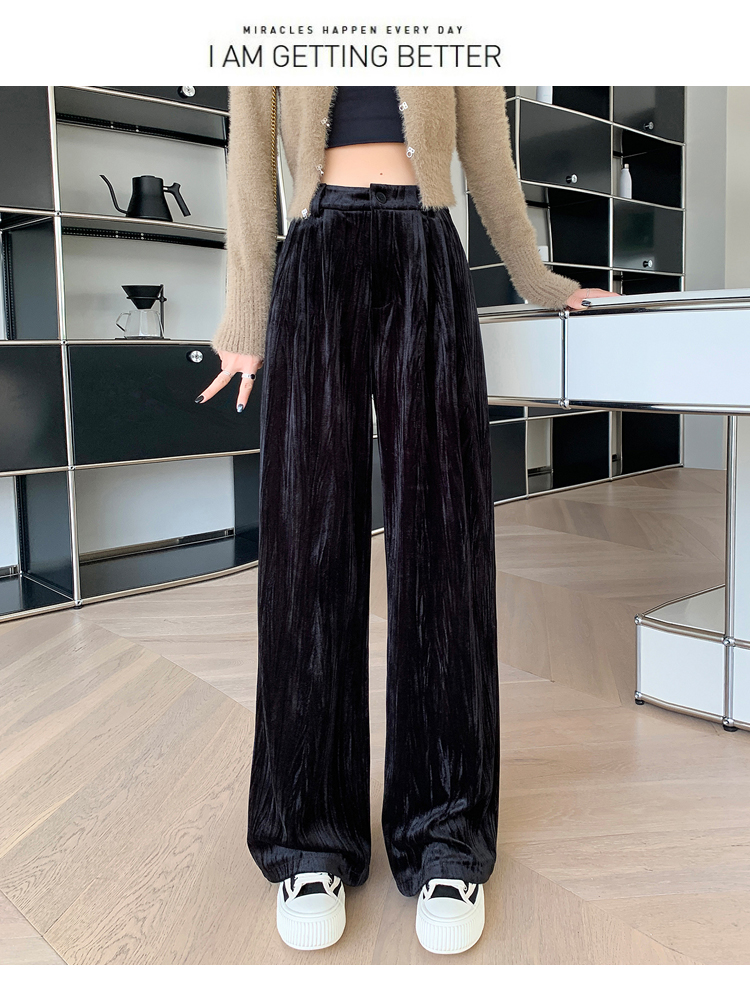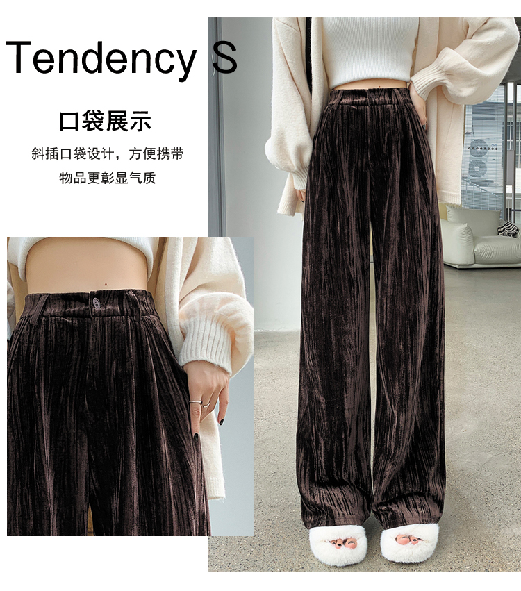 RM29408#金丝绒褶皱阔腿裤女2023秋冬垂感拖地休闲宽松灯芯绒直筒裤