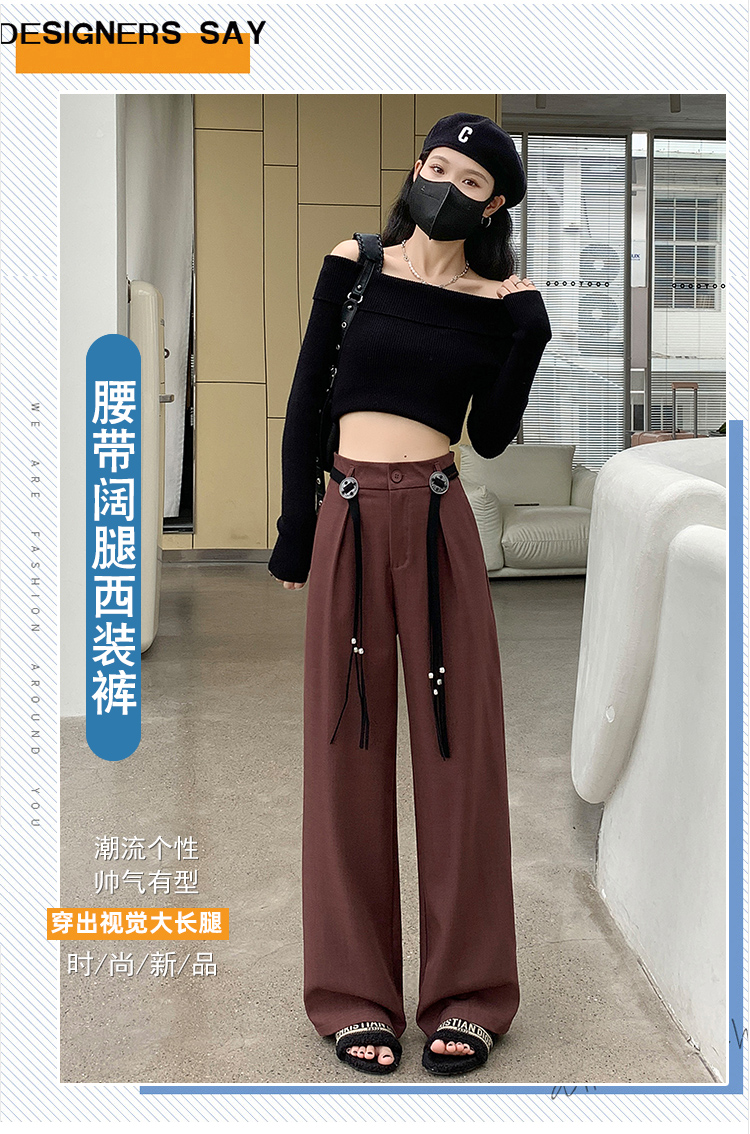 RM29409#高级感西装裤女秋季高个子显瘦垂感拖地休闲女阔腿裤子