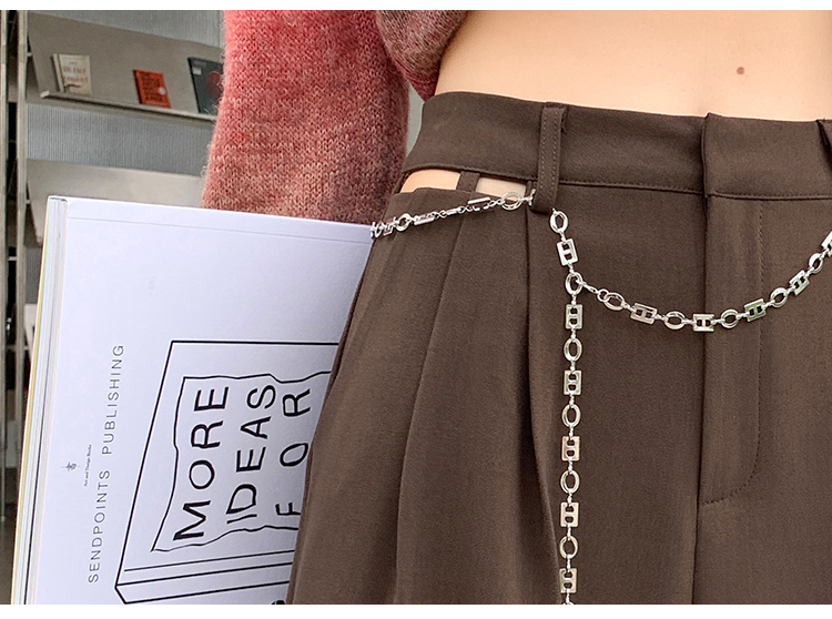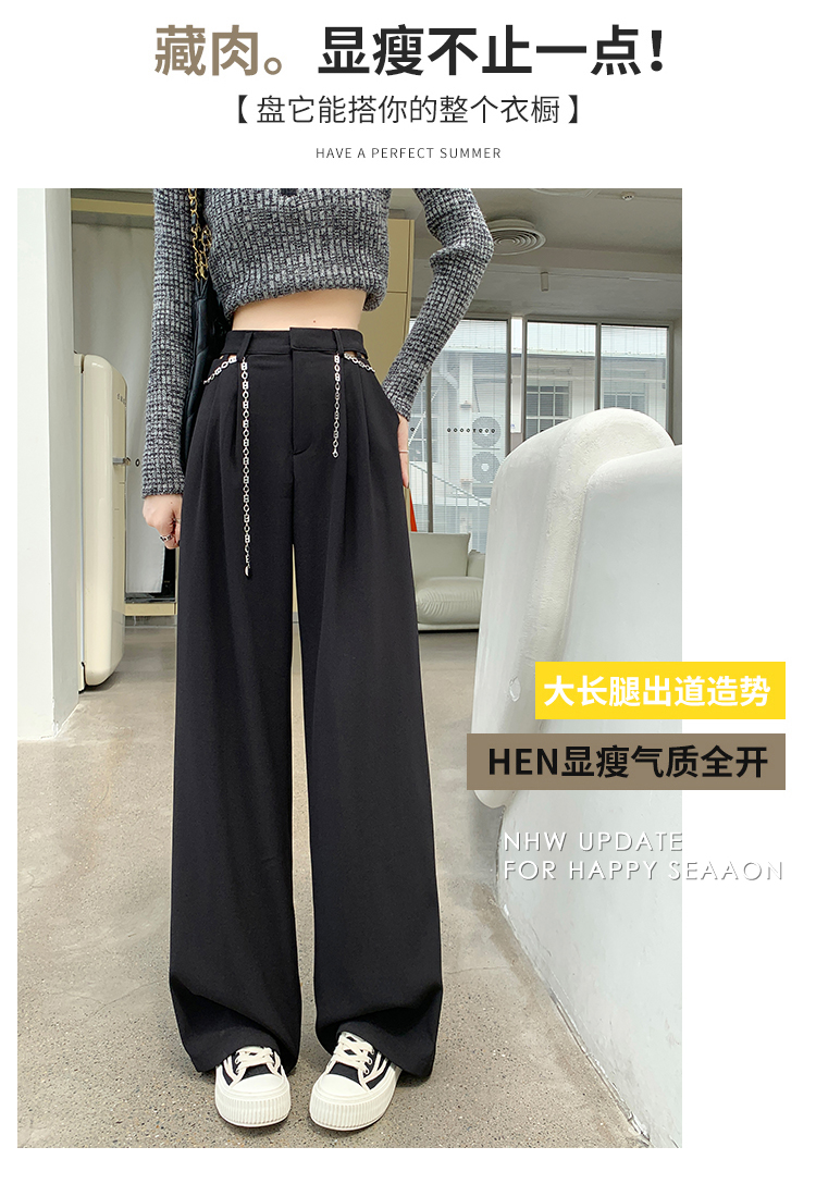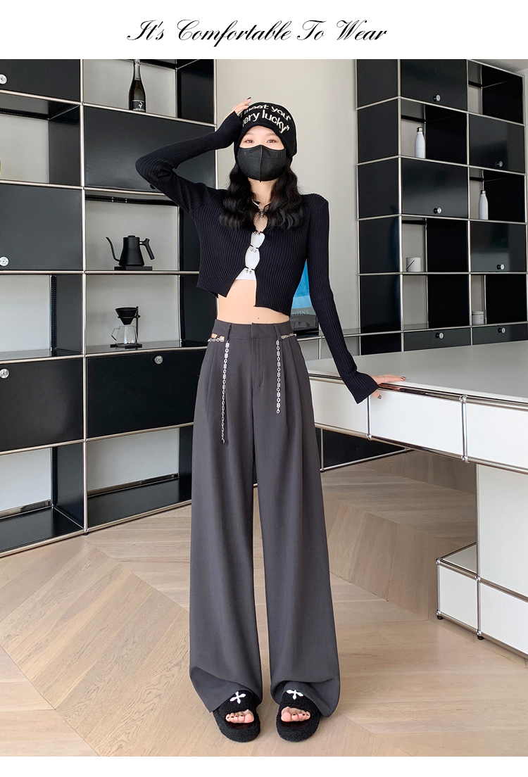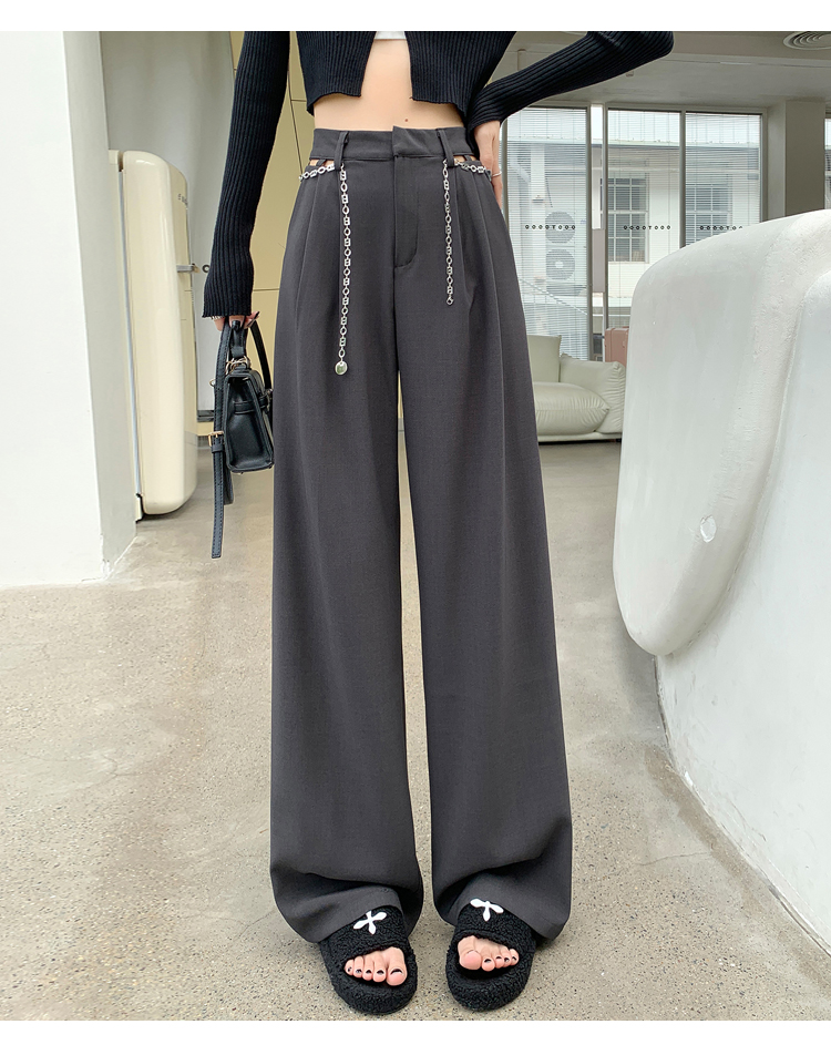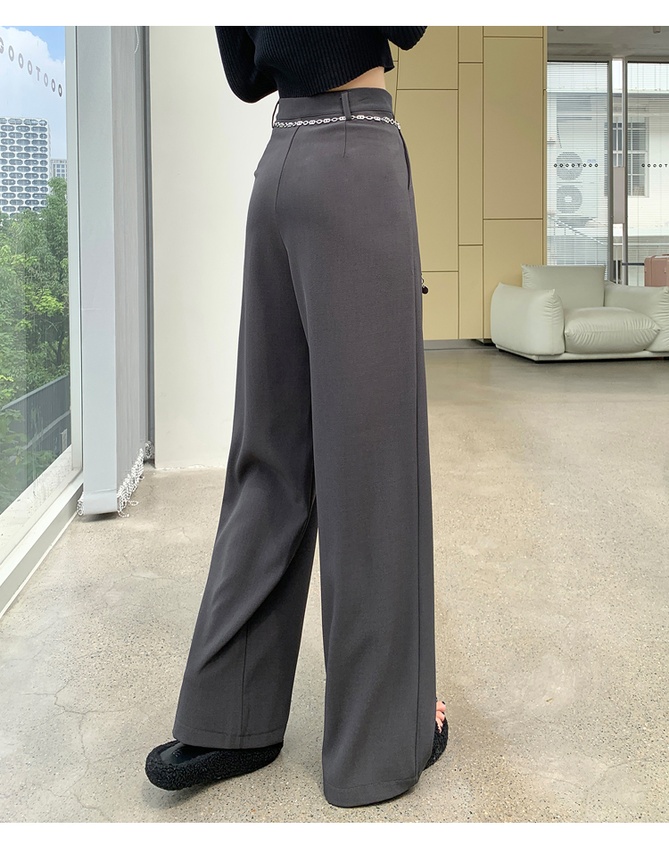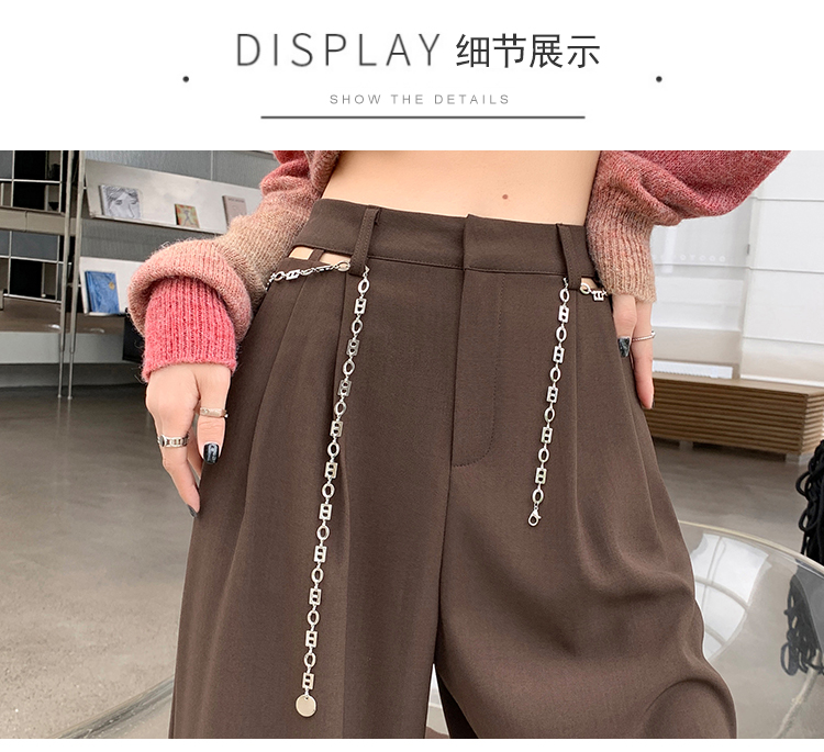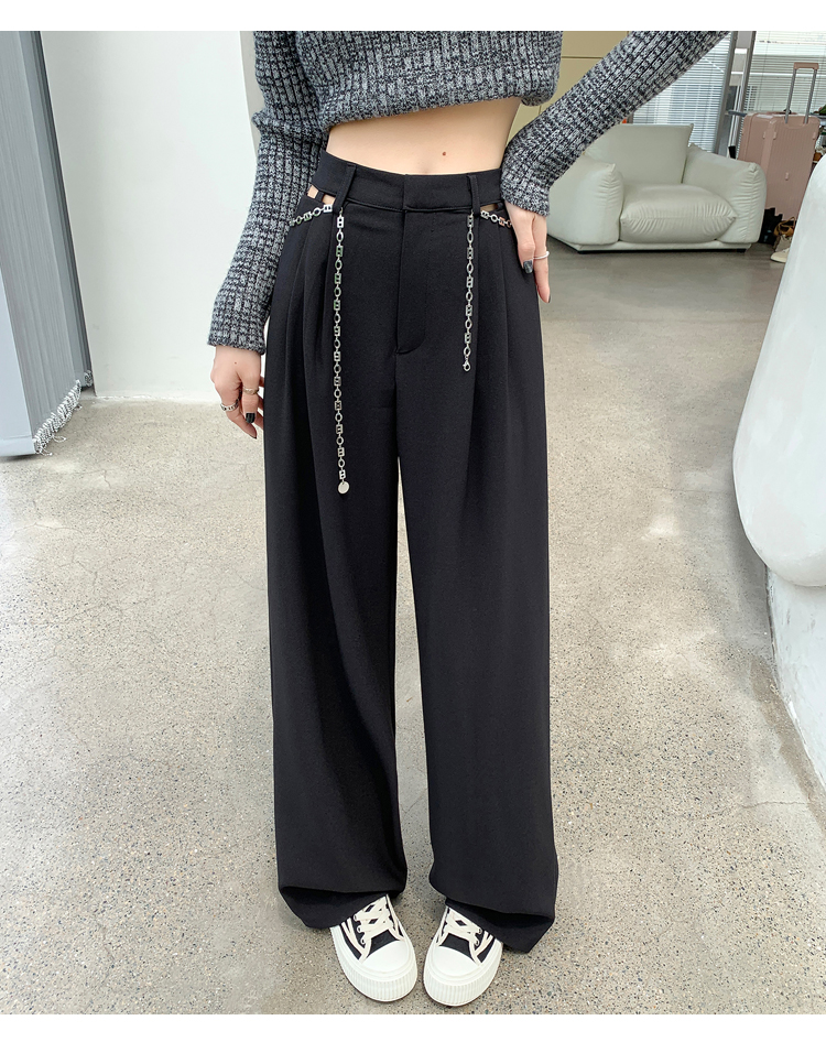 RM29410#高腰镂空阔腿裤链条设计感休闲裤垂感拖地宽松显瘦西装裤