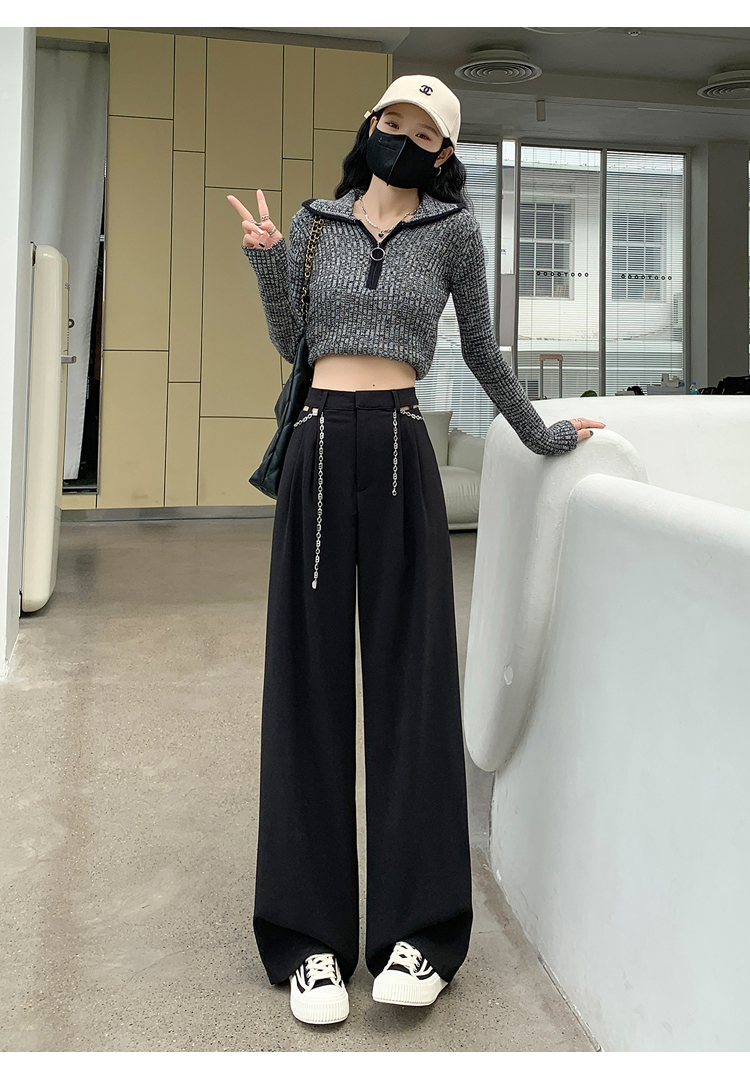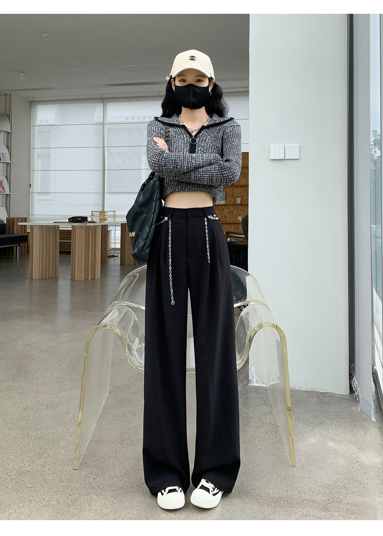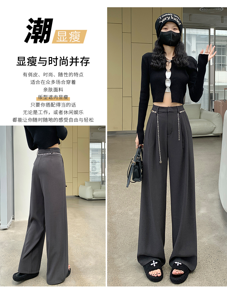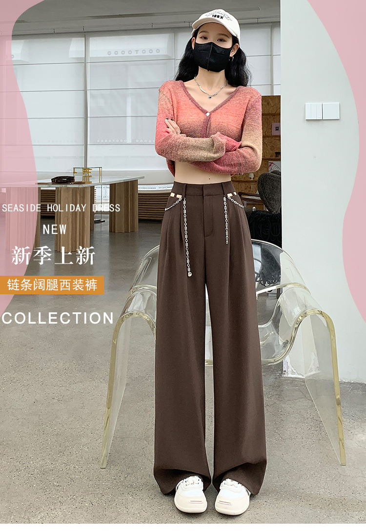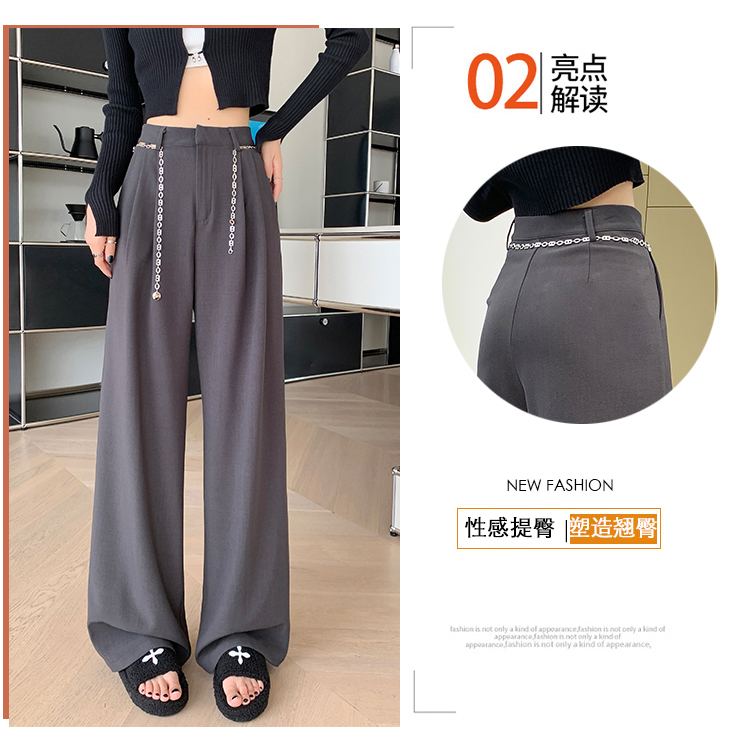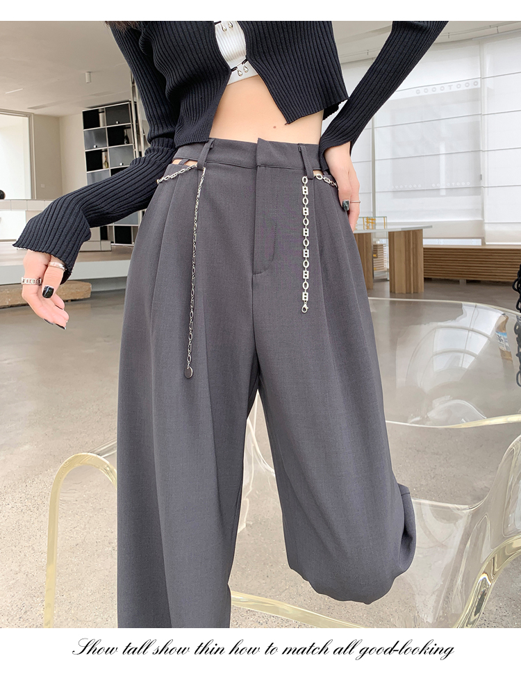 RM29410#高腰镂空阔腿裤链条设计感休闲裤垂感拖地宽松显瘦西装裤