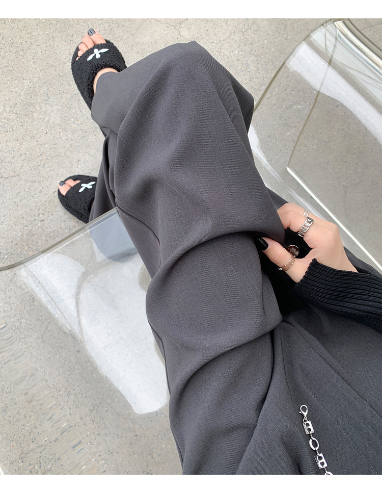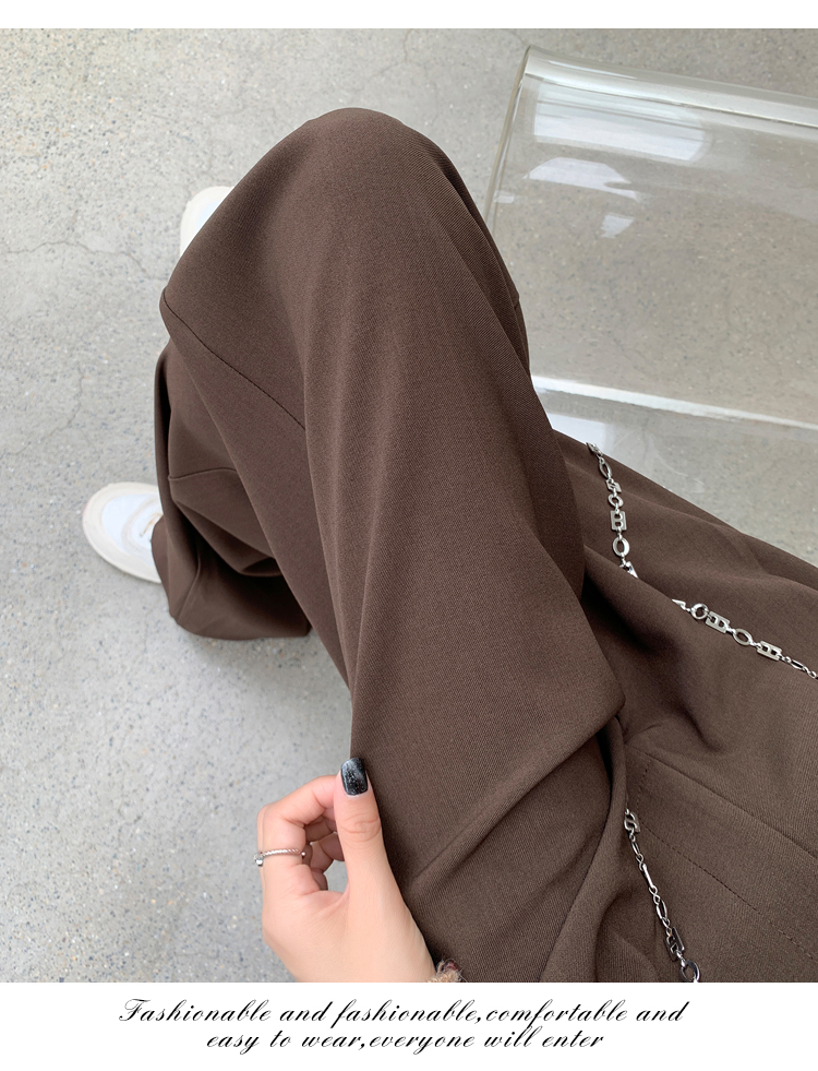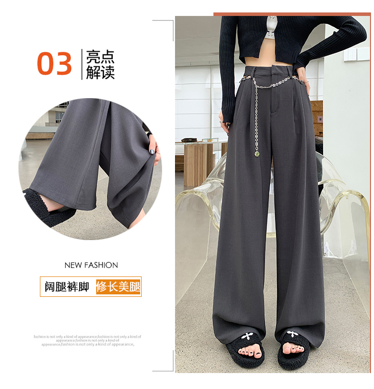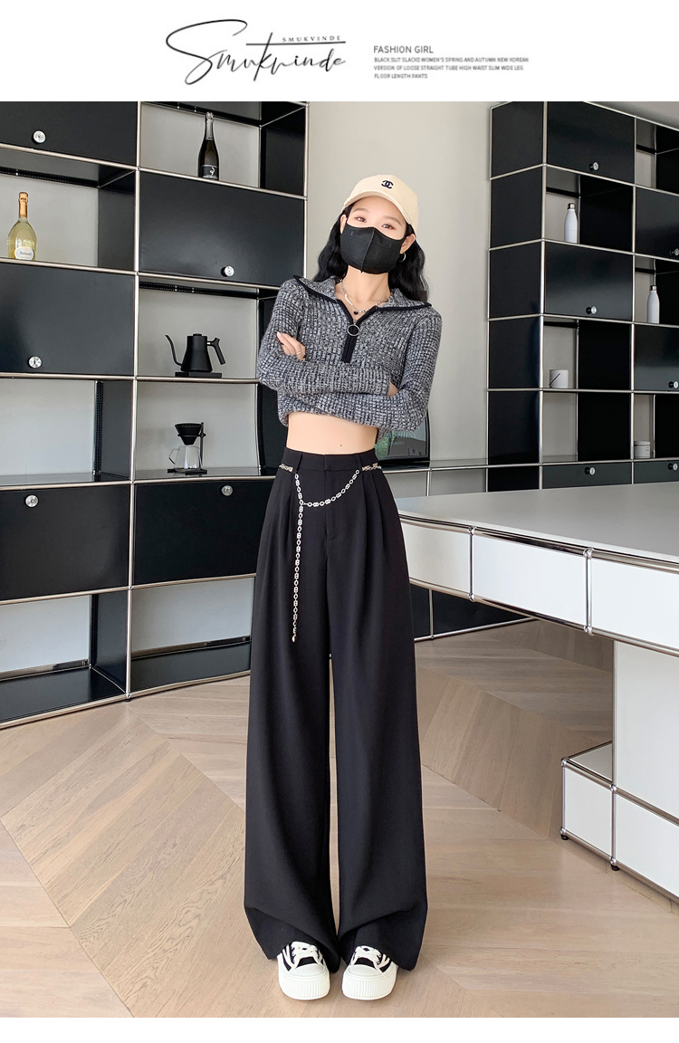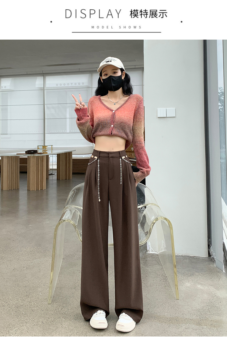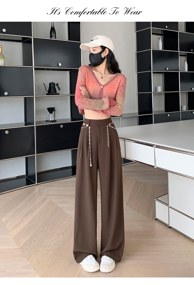 RM29410#高腰镂空阔腿裤链条设计感休闲裤垂感拖地宽松显瘦西装裤
