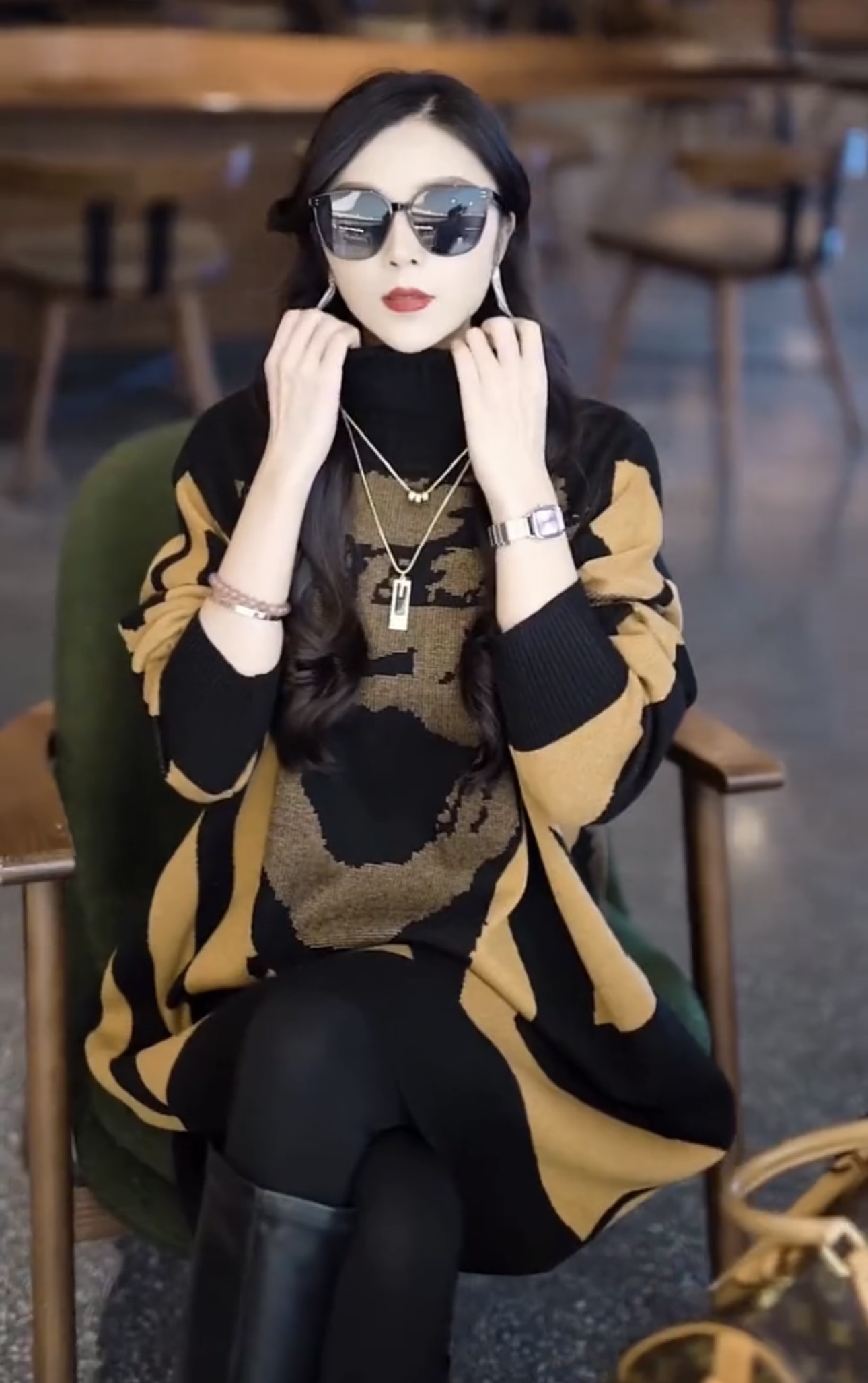 RM29427#高端定制达芬奇秋冬洋气油画风艺术感外穿气质毛衣上衣