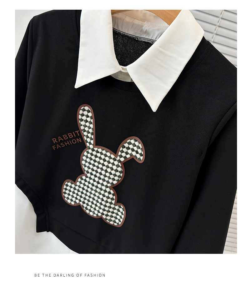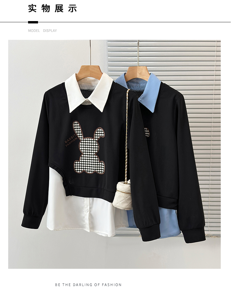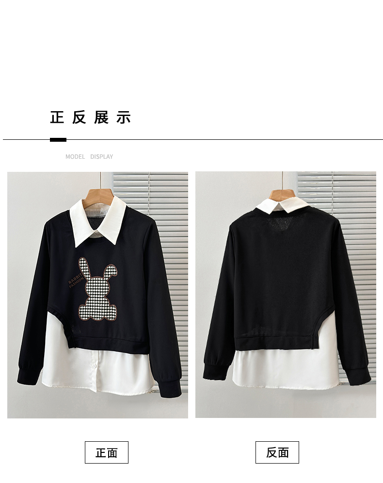 RM29441#大码女装胖妹妹秋装显瘦休闲拼接撞色不规则假两件上衣衬衫女