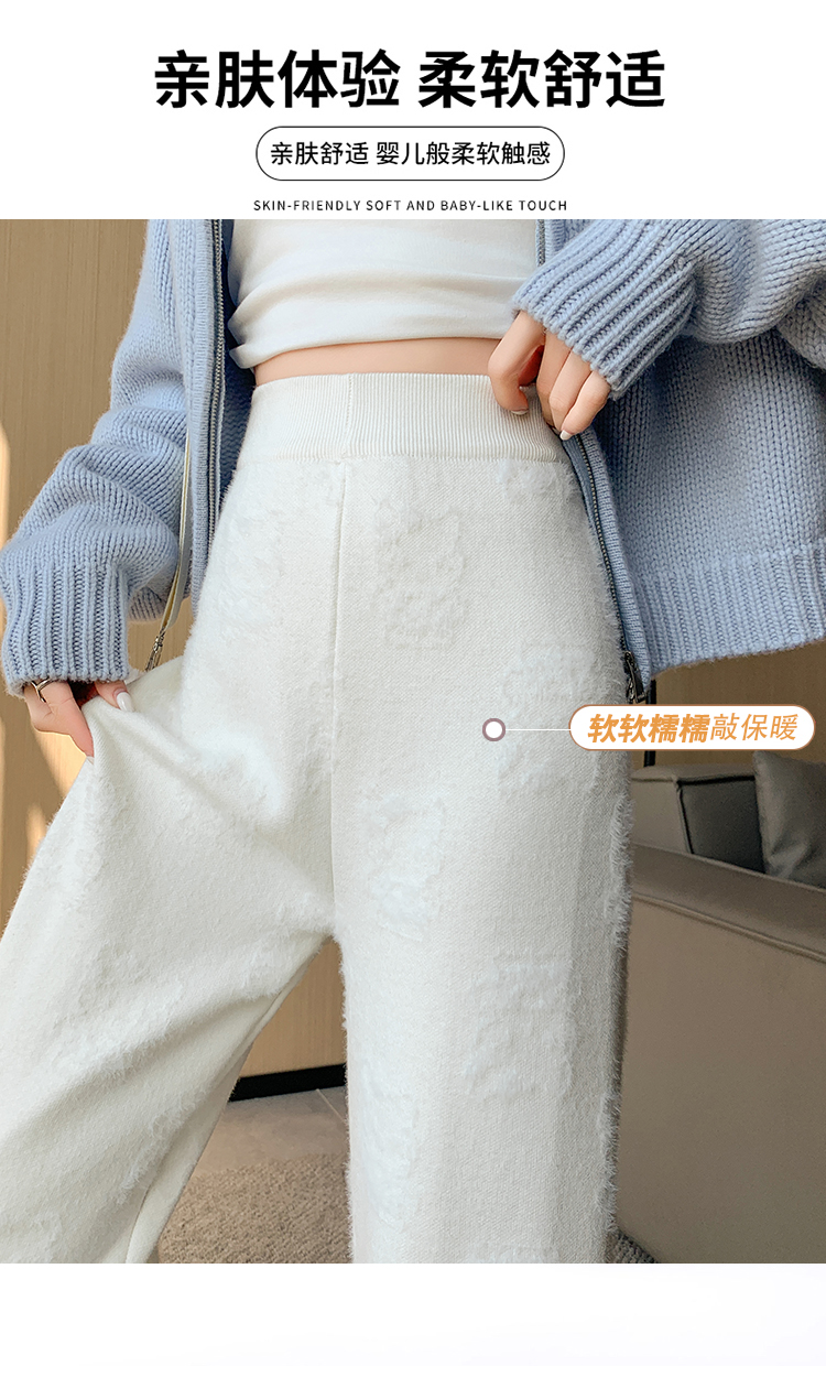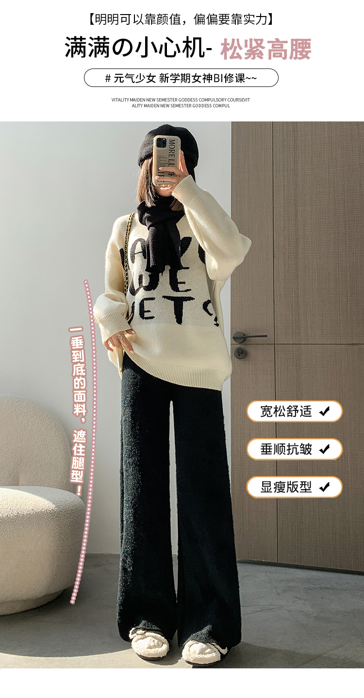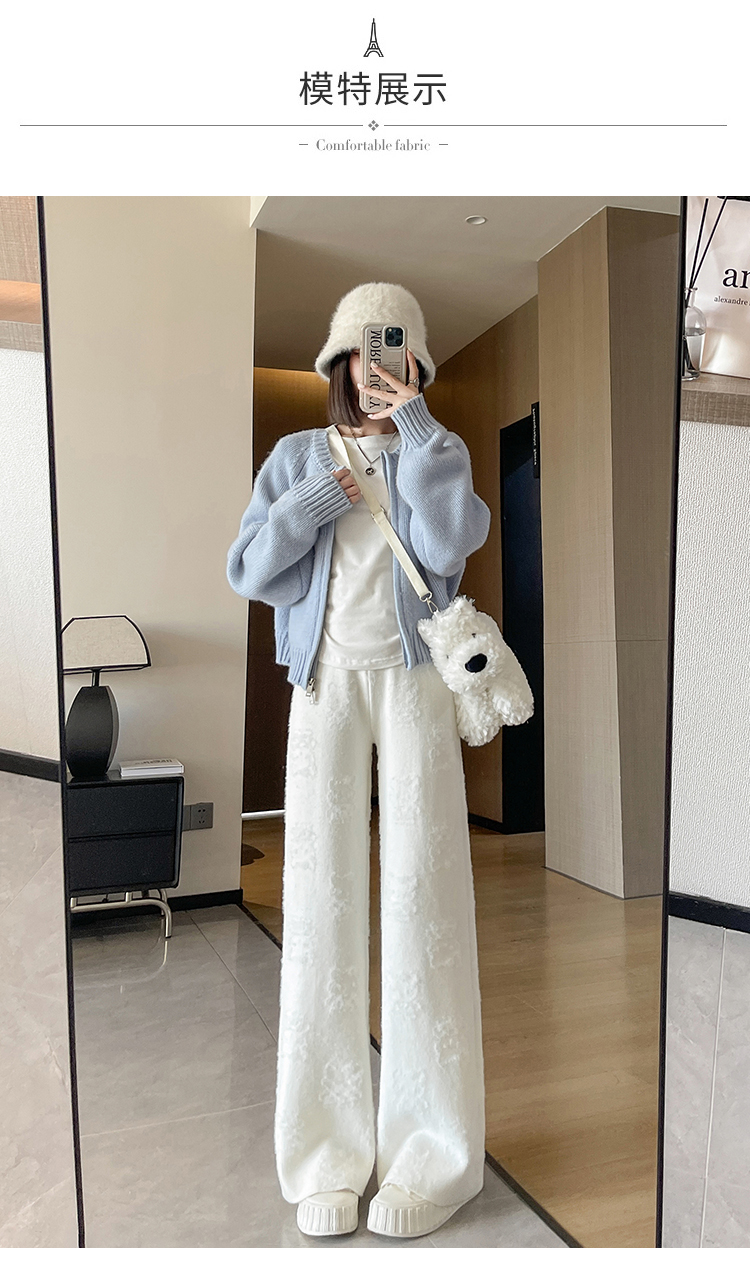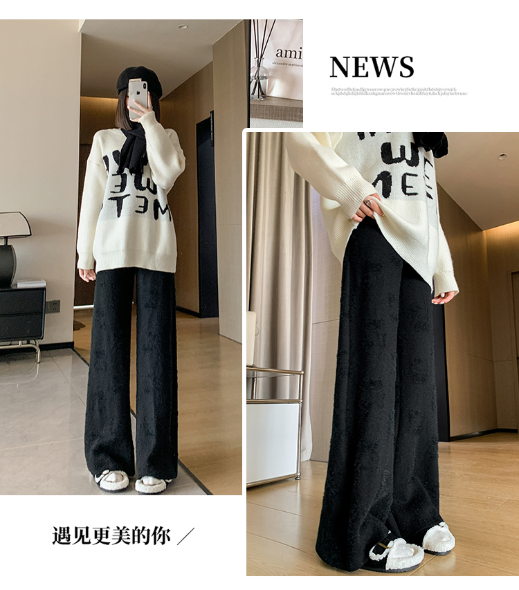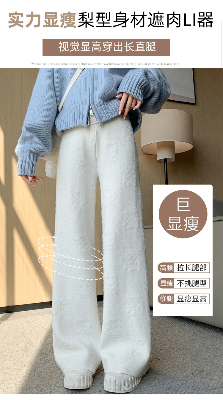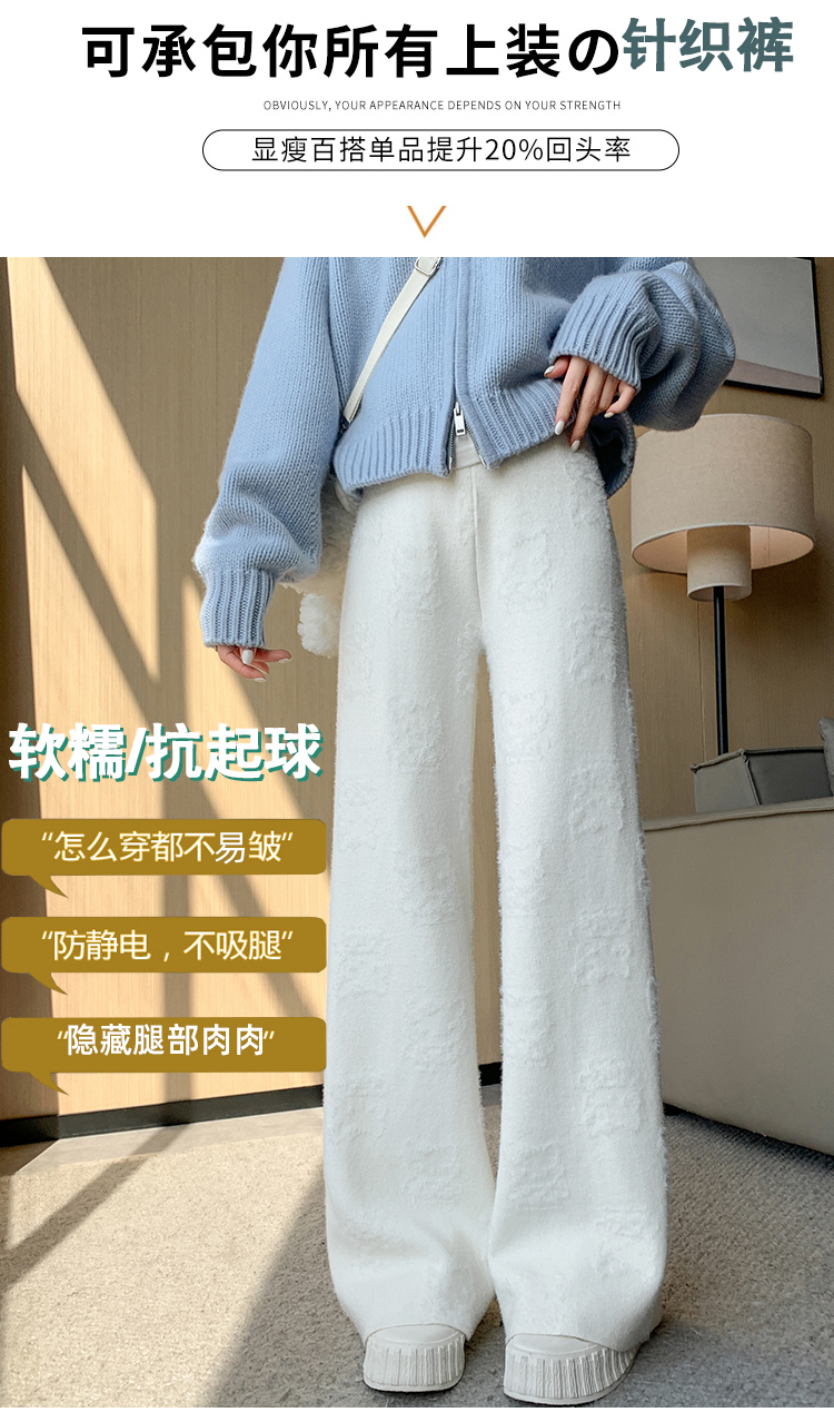 RM29445#加绒提花针织阔腿裤女秋冬宽松软糯休闲裤高腰显瘦垂感拖地裤