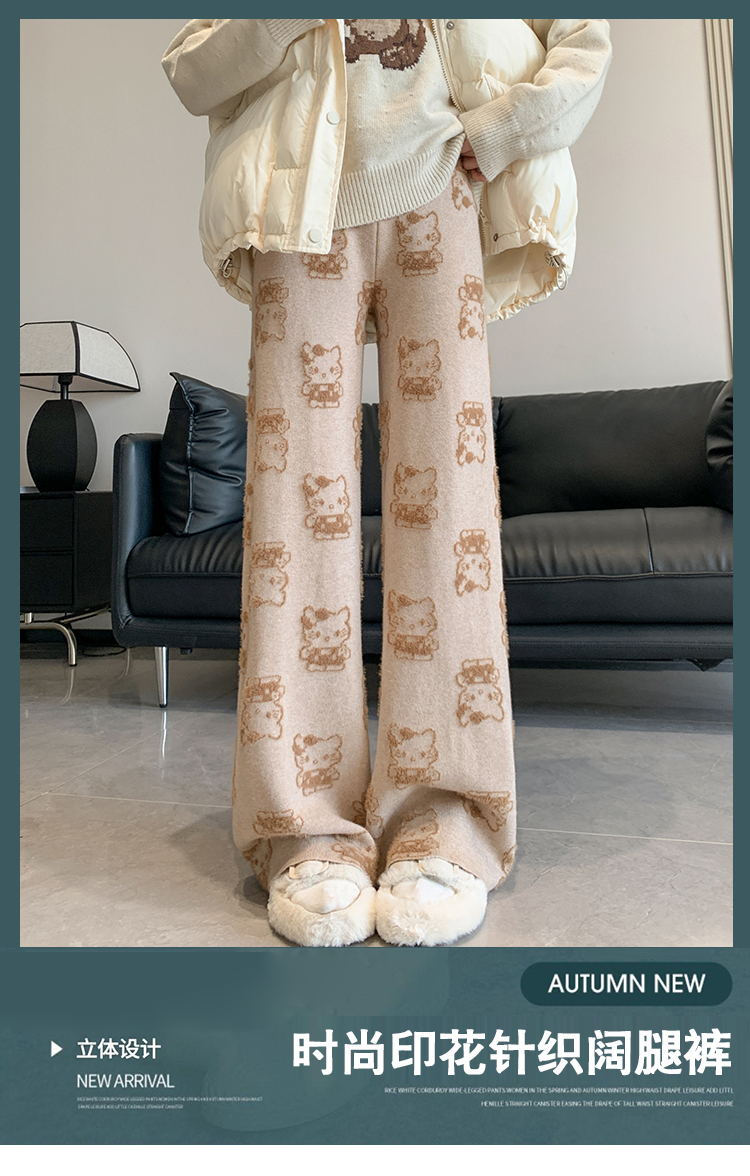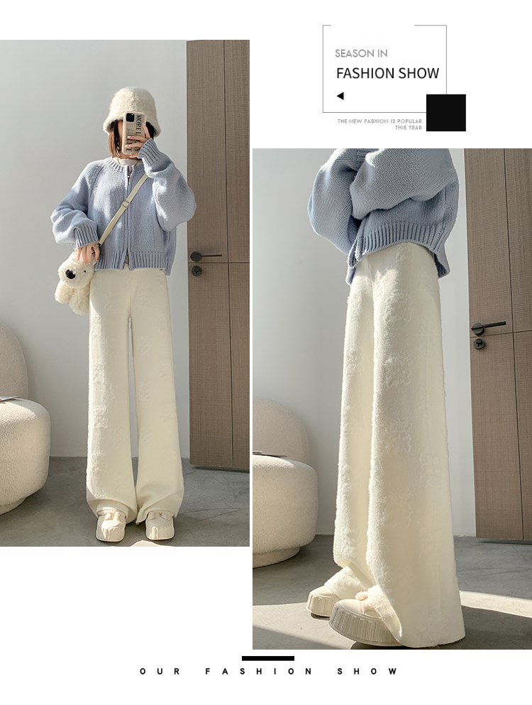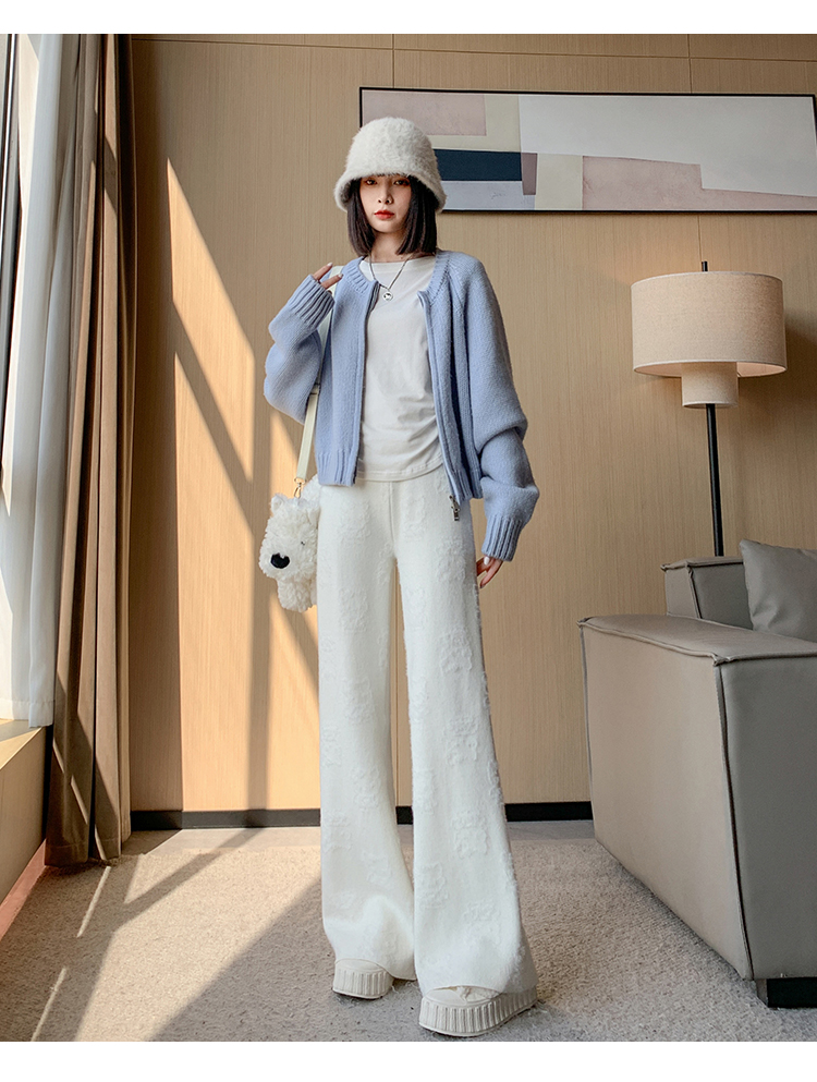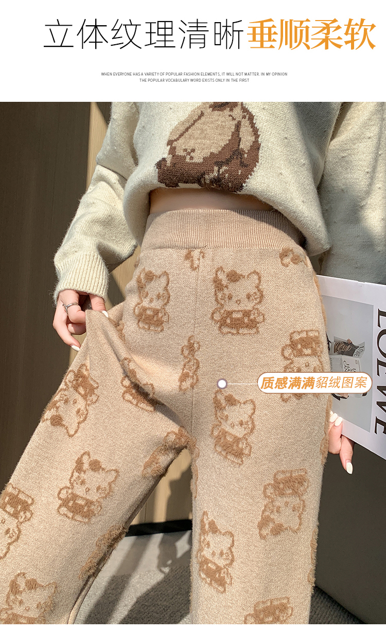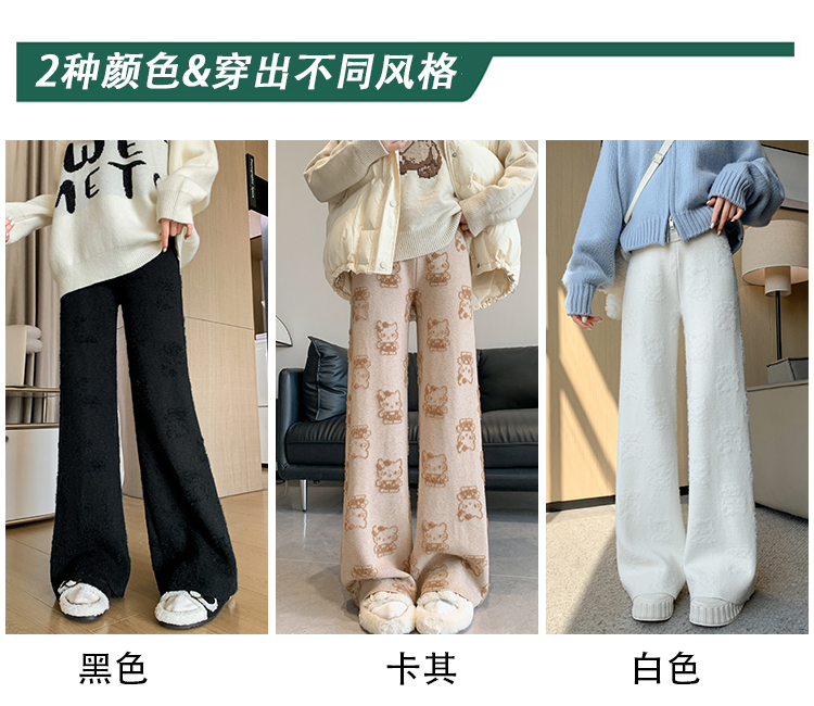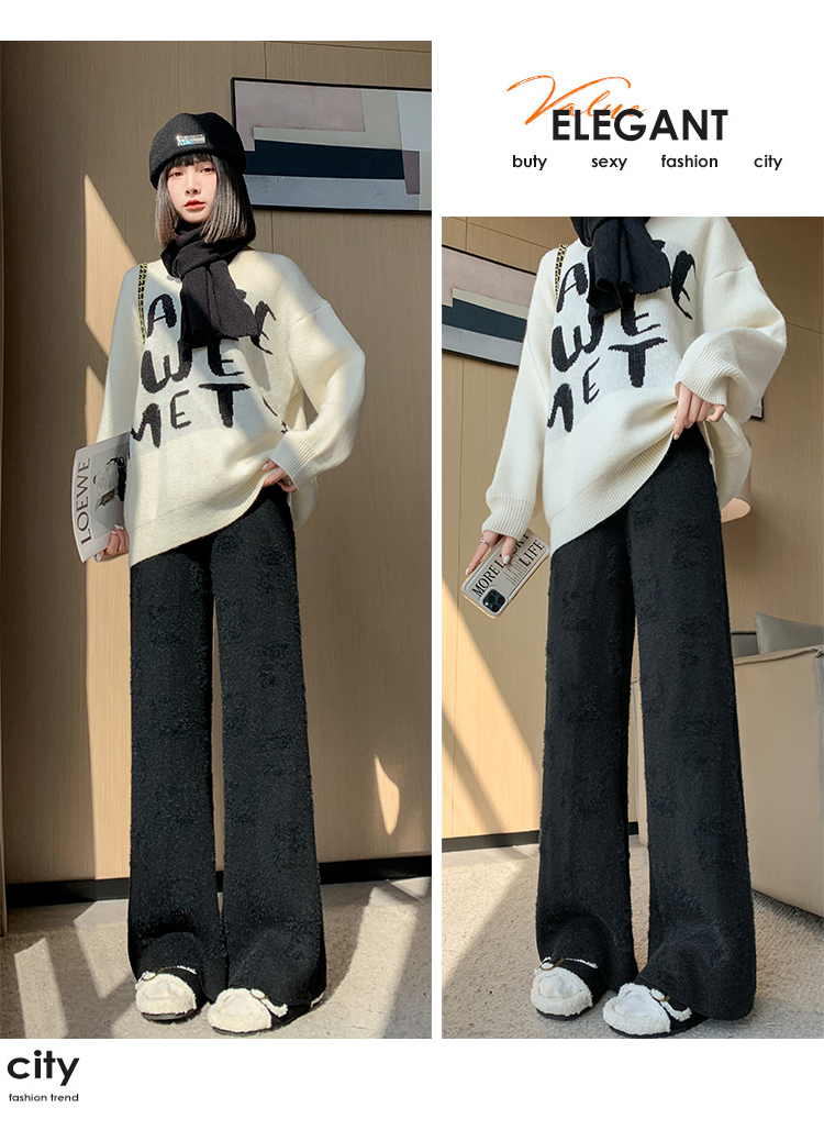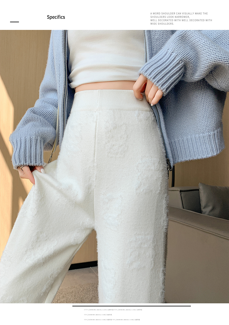 RM29445#加绒提花针织阔腿裤女秋冬宽松软糯休闲裤高腰显瘦垂感拖地裤