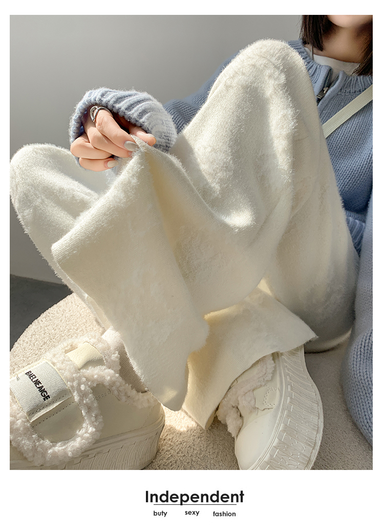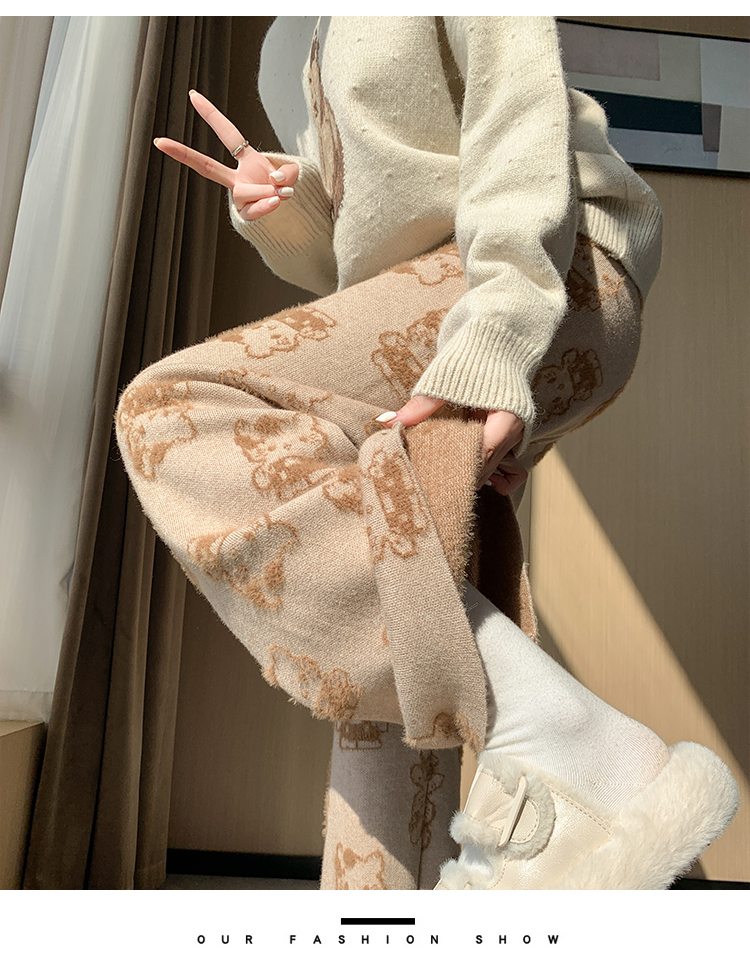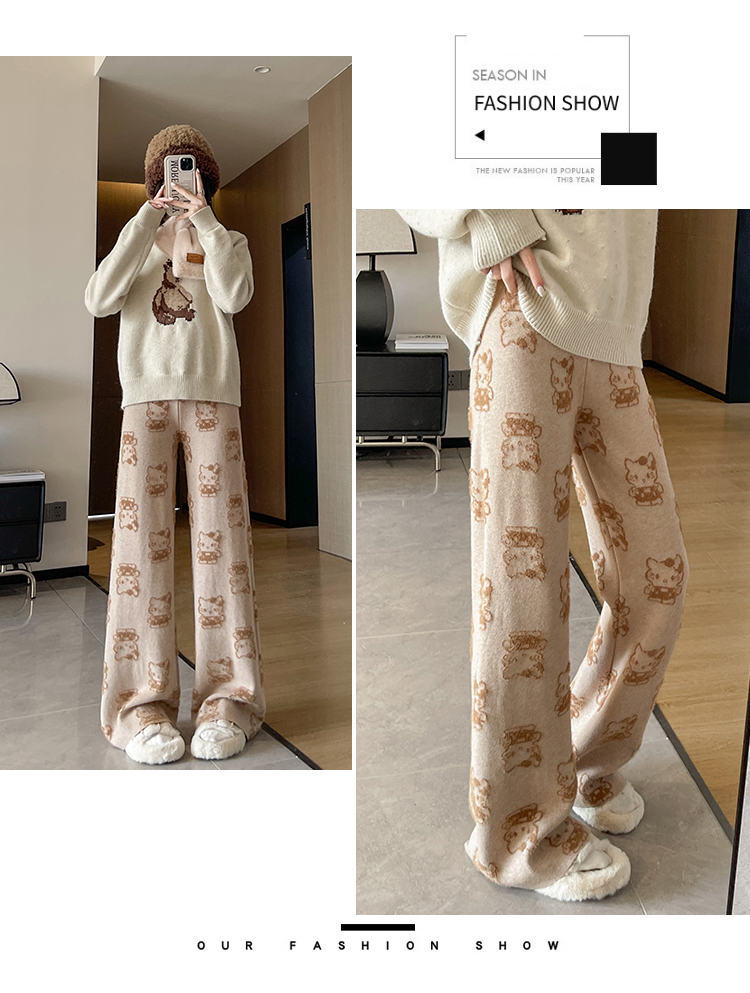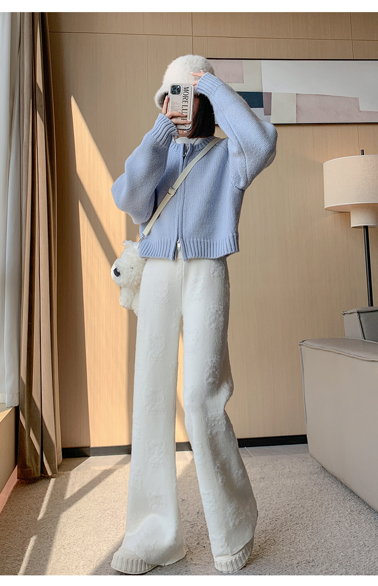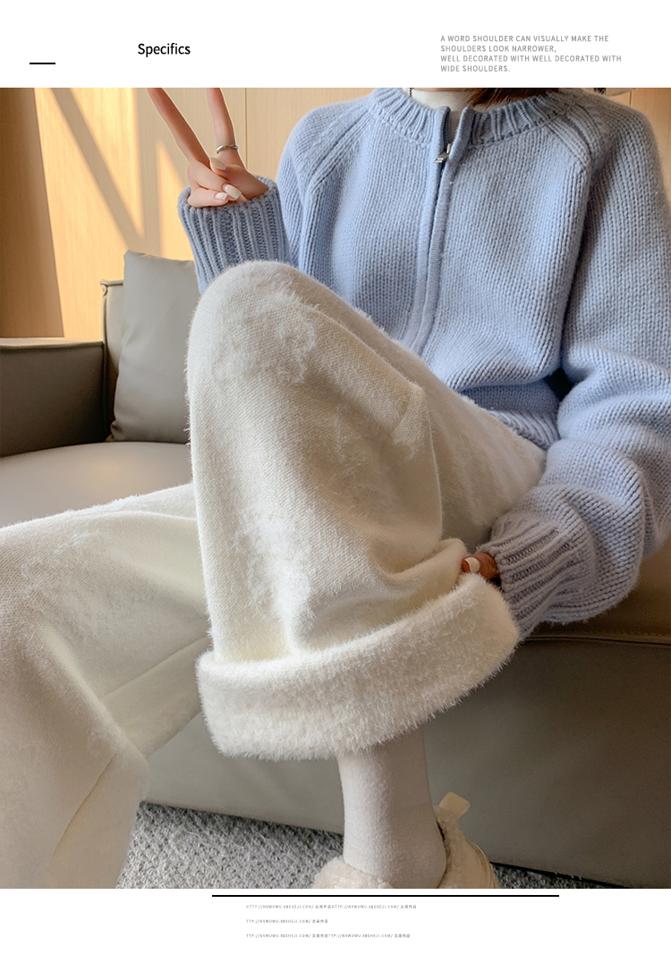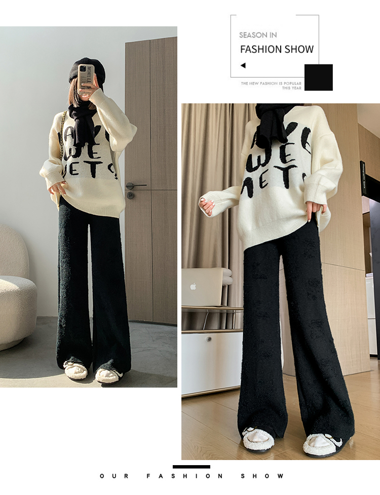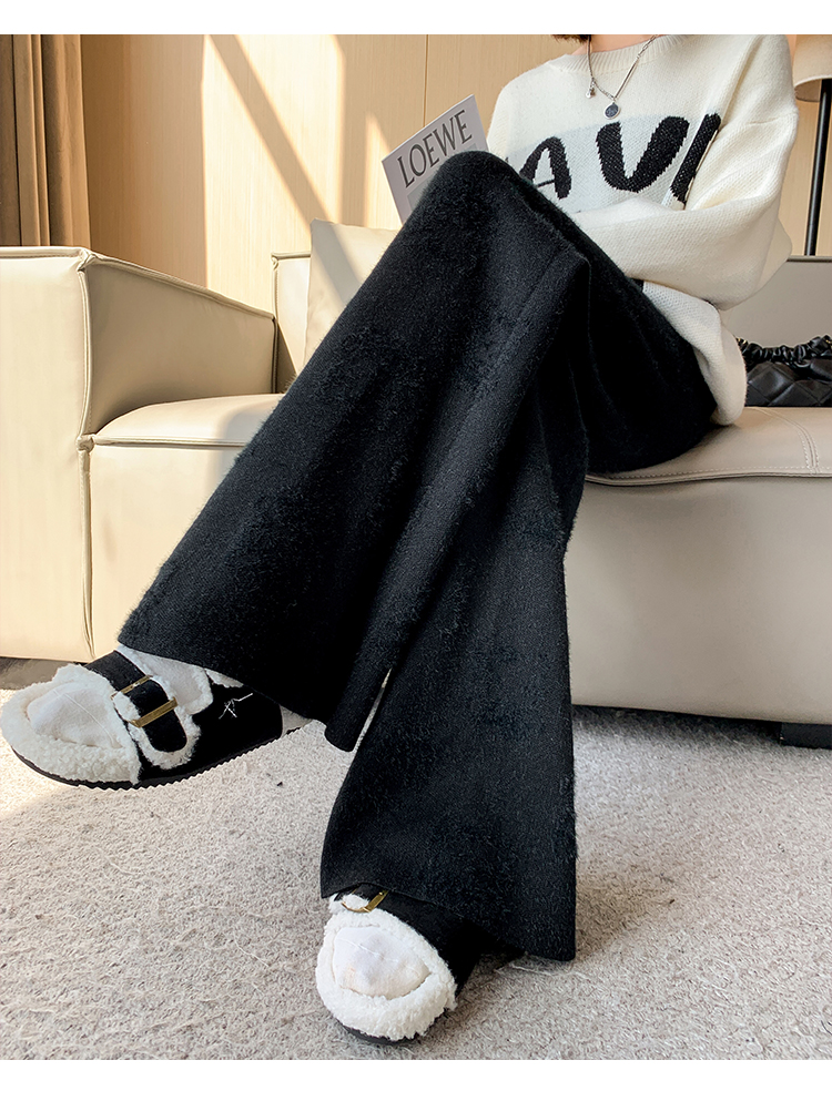 RM29445#加绒提花针织阔腿裤女秋冬宽松软糯休闲裤高腰显瘦垂感拖地裤