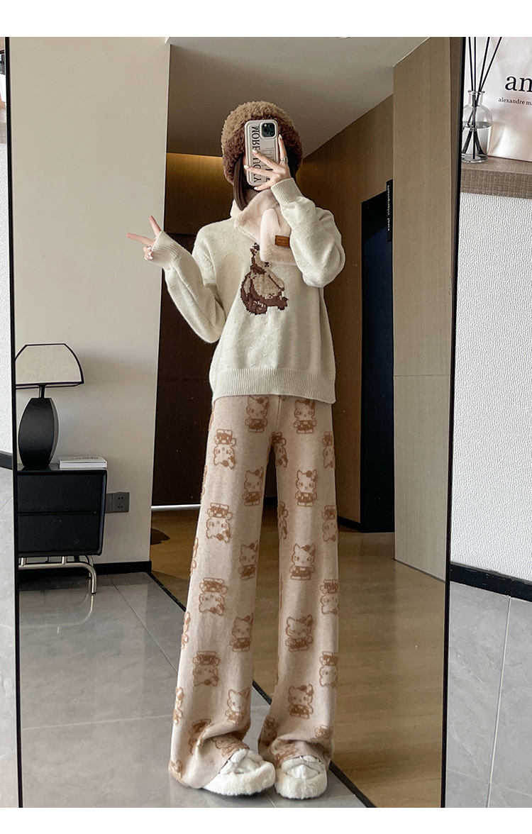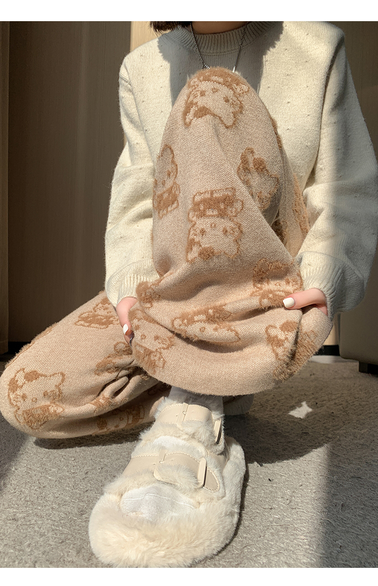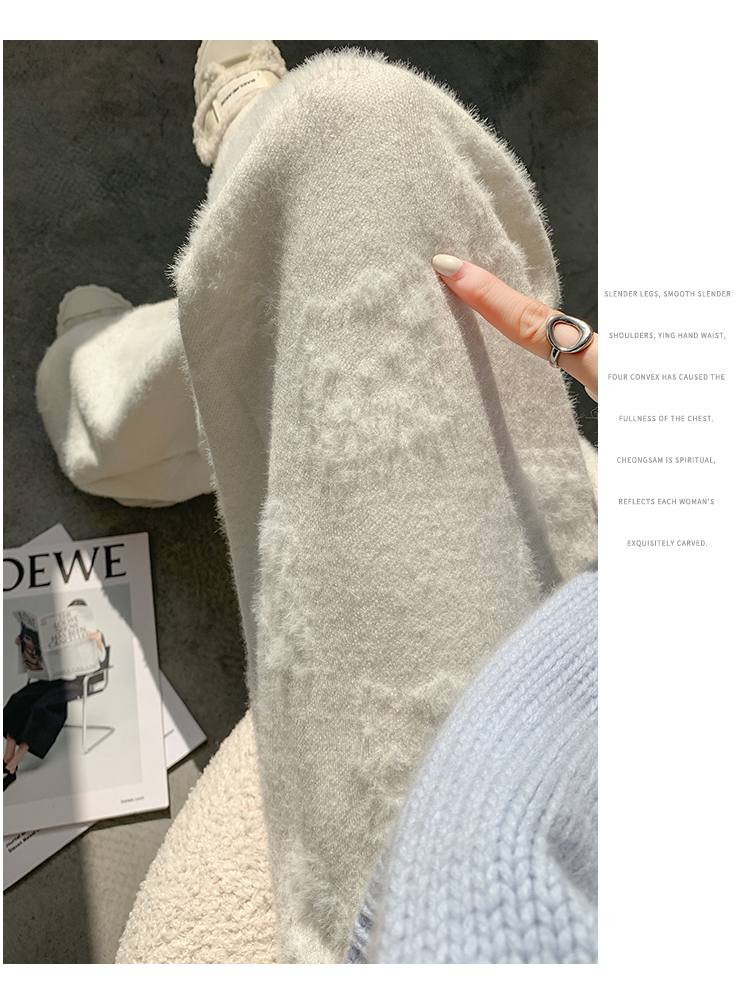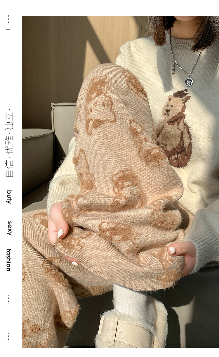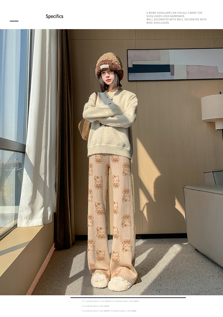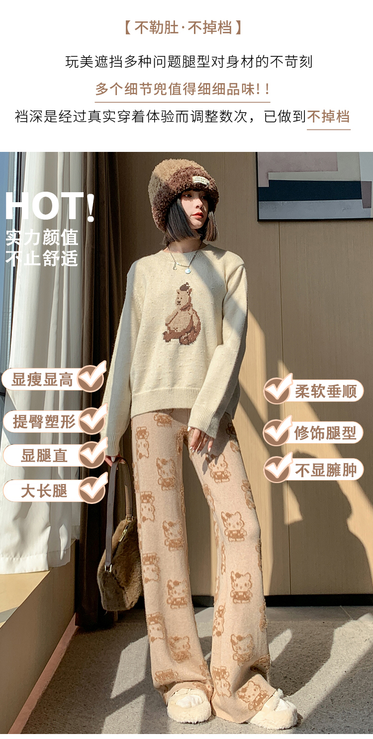 RM29445#加绒提花针织阔腿裤女秋冬宽松软糯休闲裤高腰显瘦垂感拖地裤