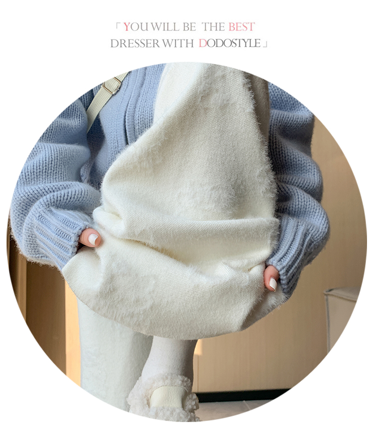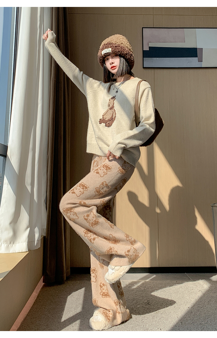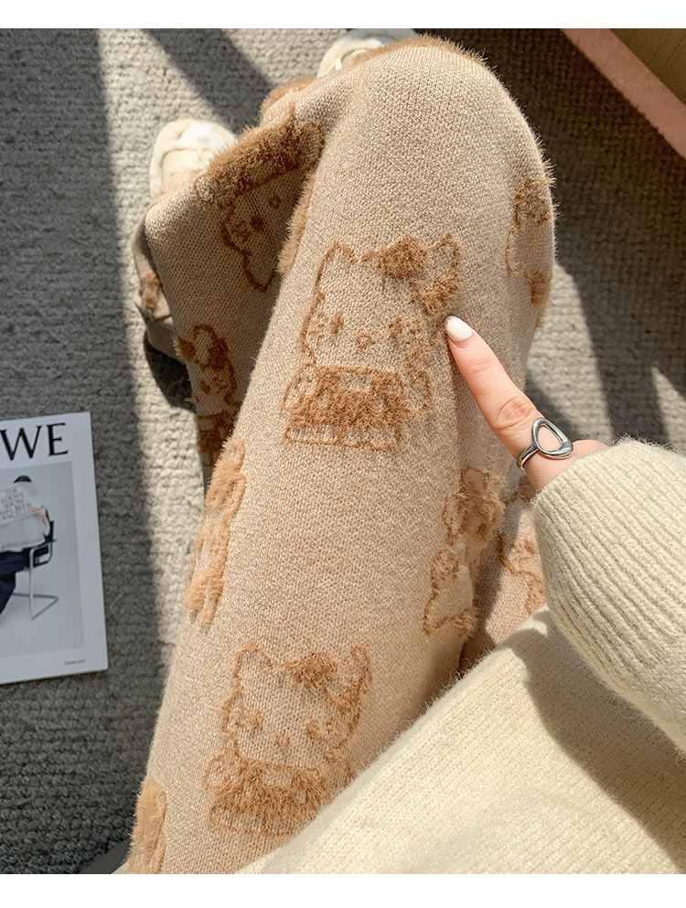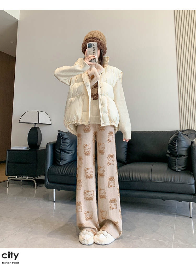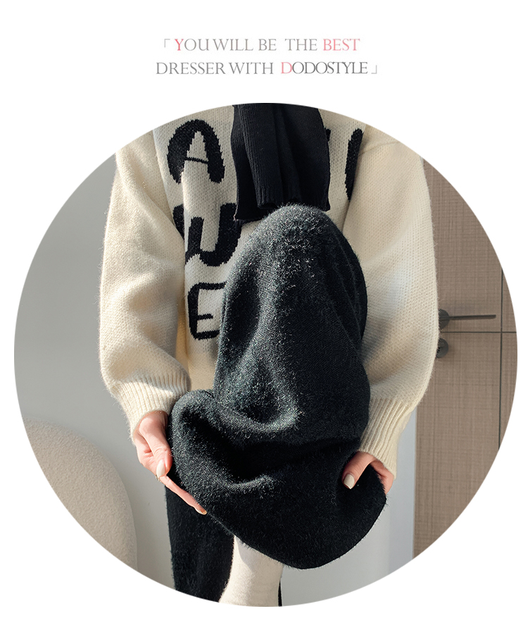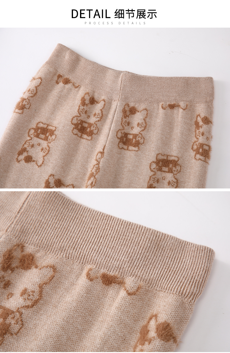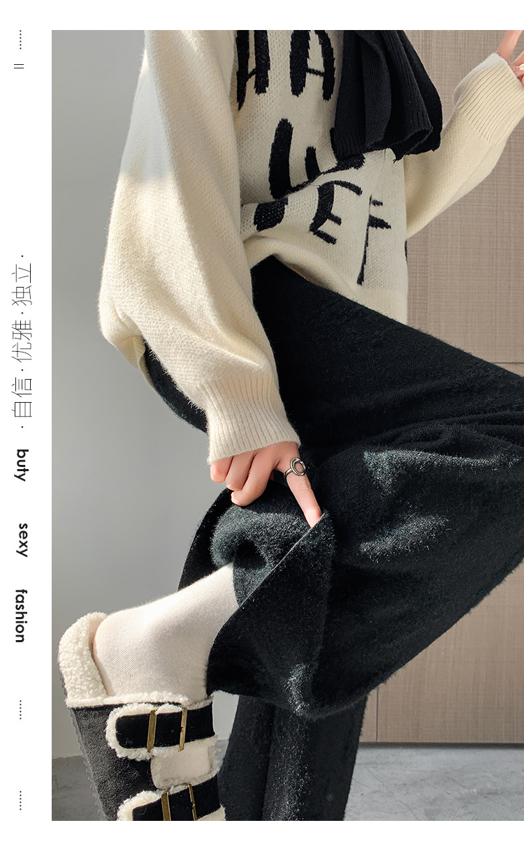 RM29445#加绒提花针织阔腿裤女秋冬宽松软糯休闲裤高腰显瘦垂感拖地裤