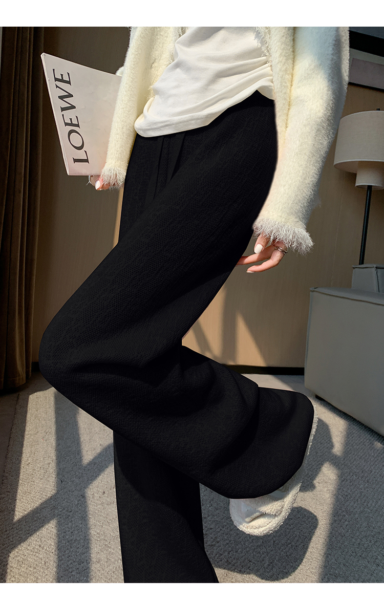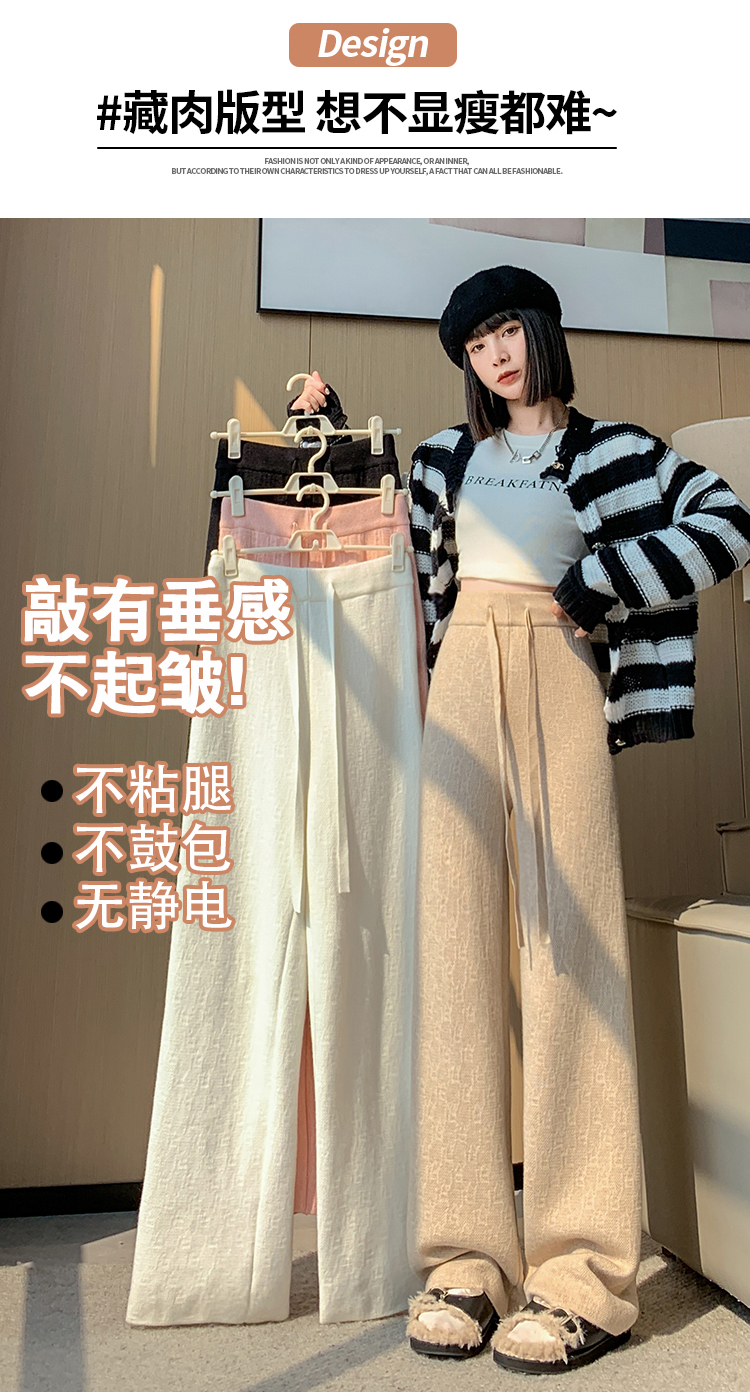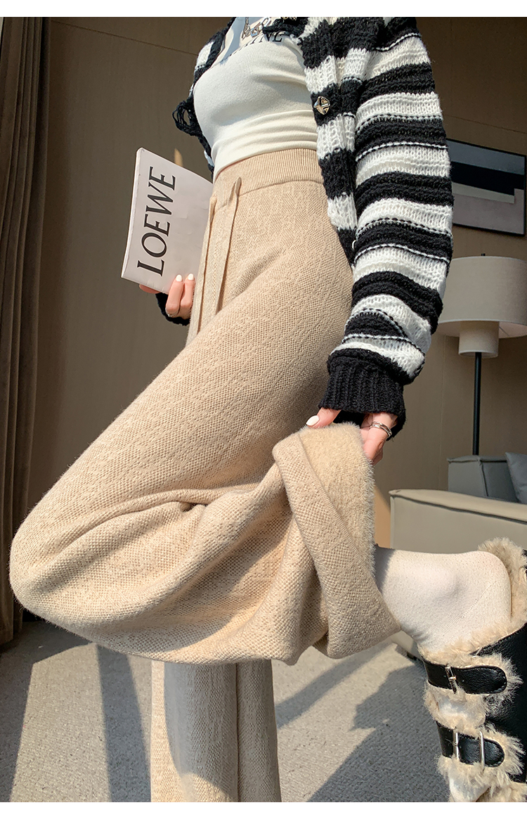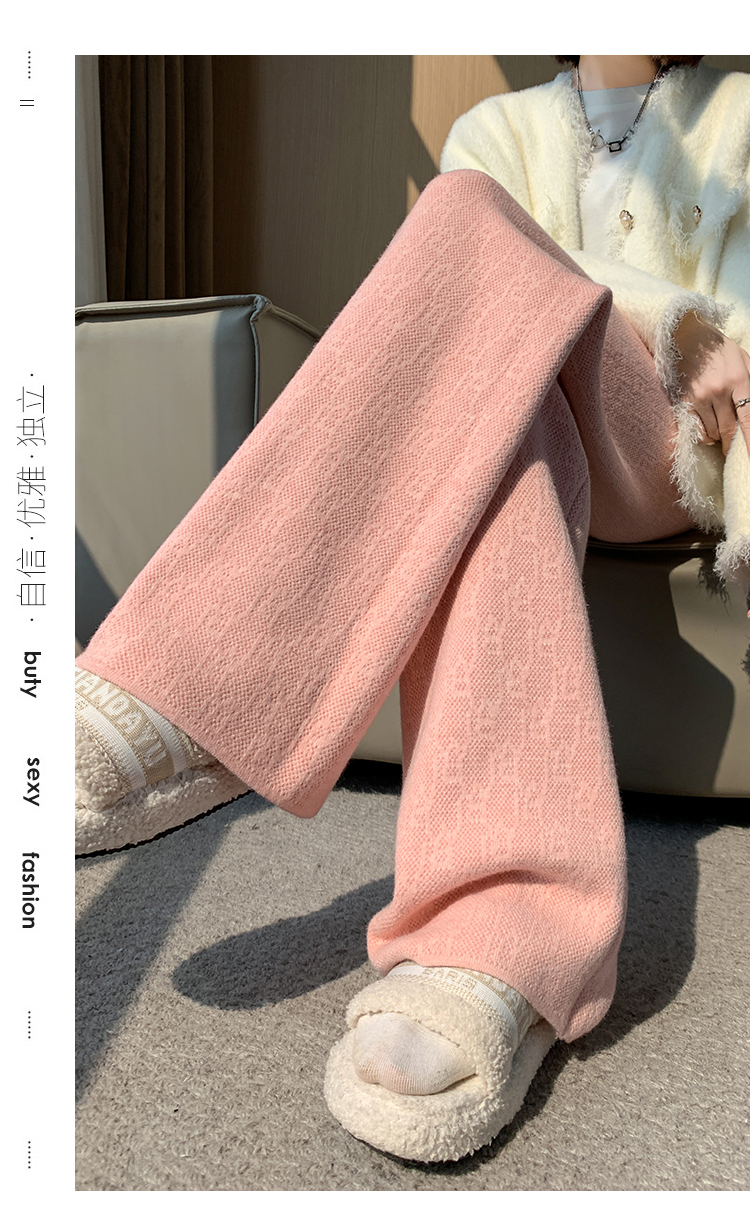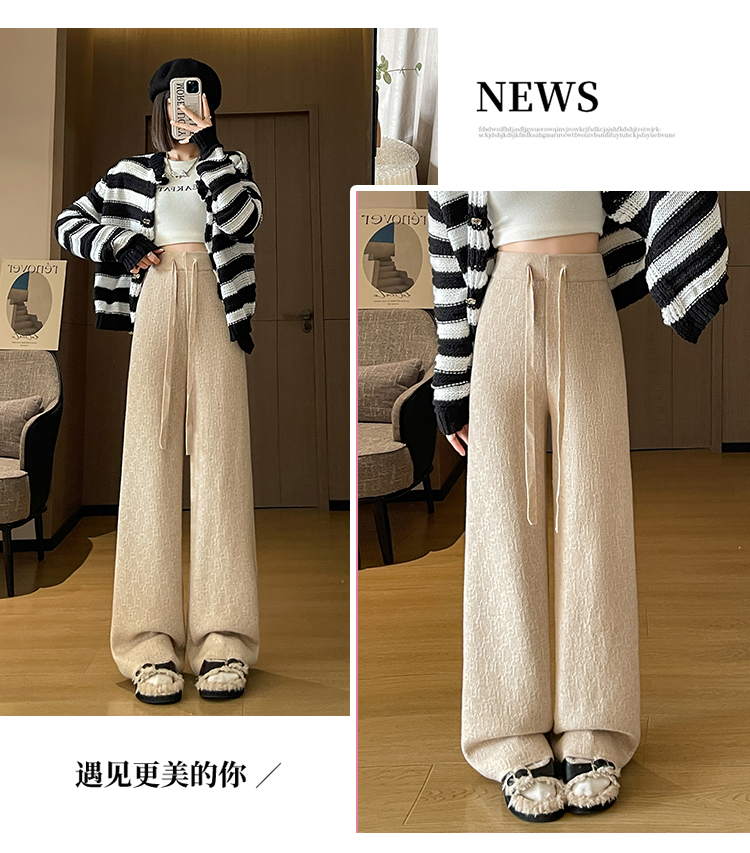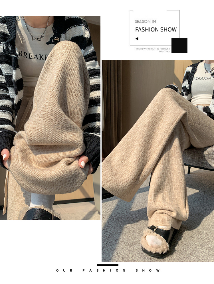 RM29447#加绒阔腿裤女秋冬2023新款高腰垂感针织提花拖地窄版直筒裤子