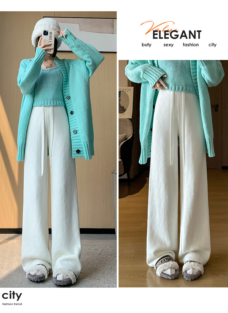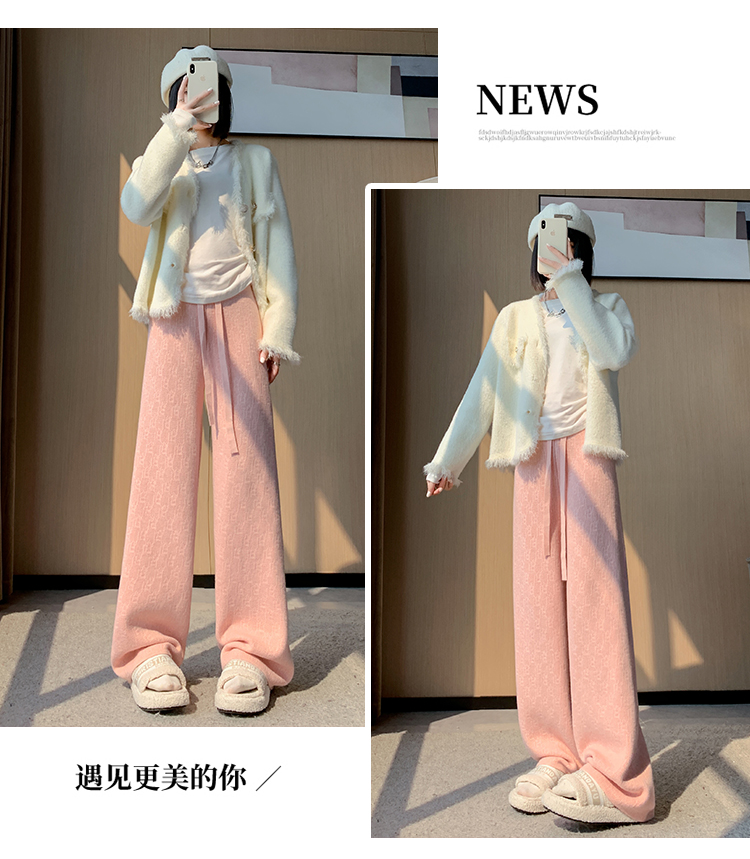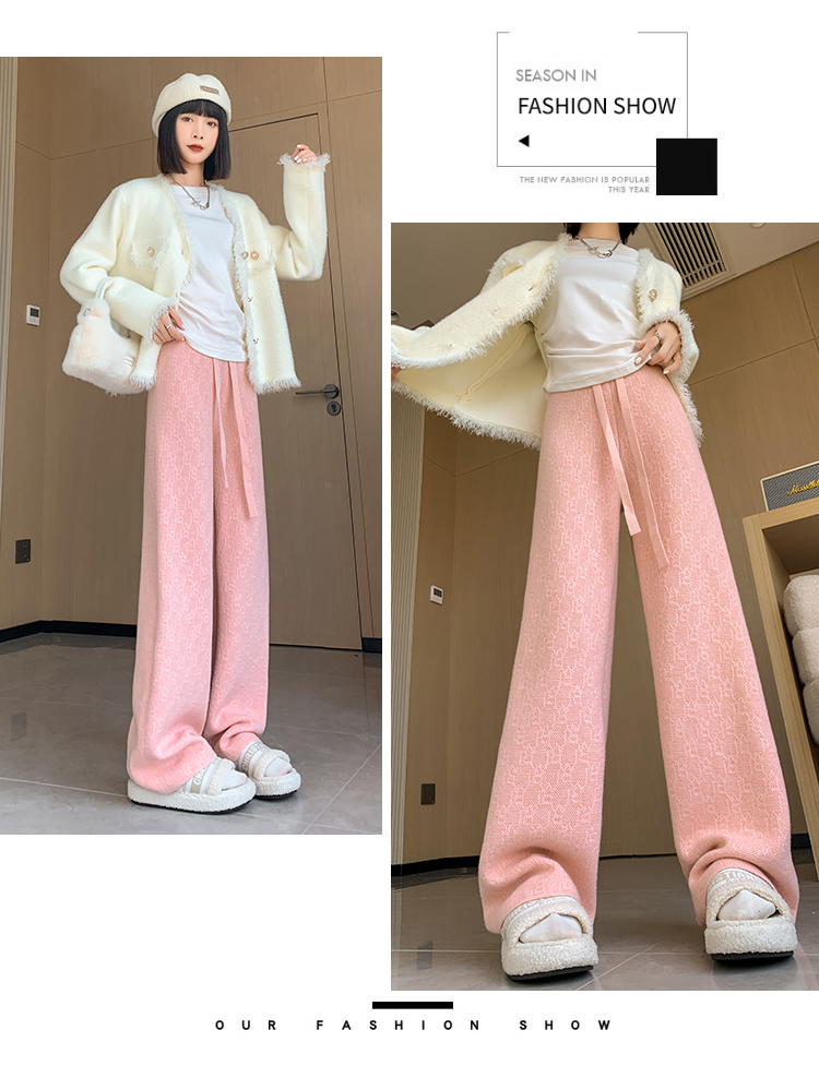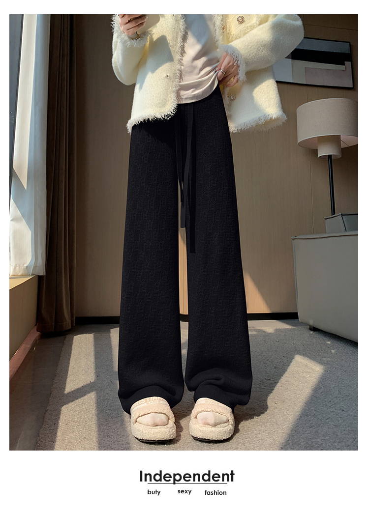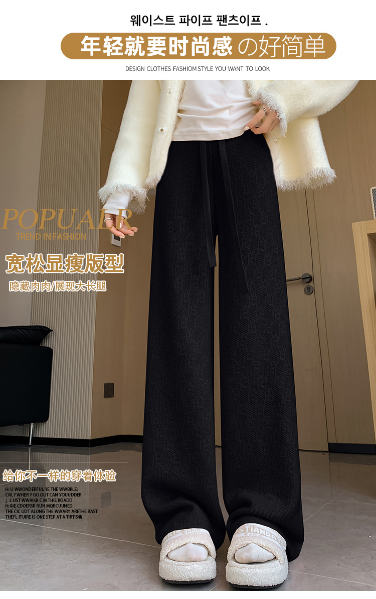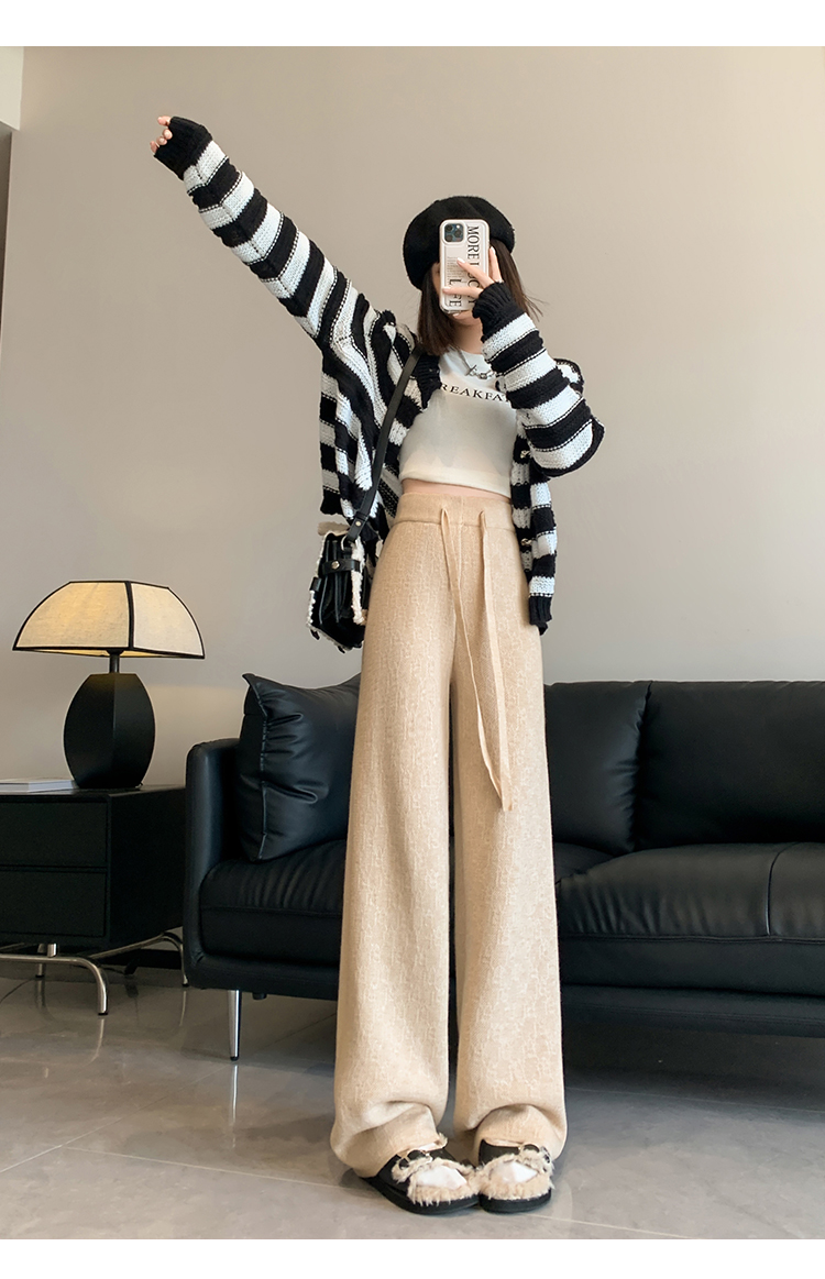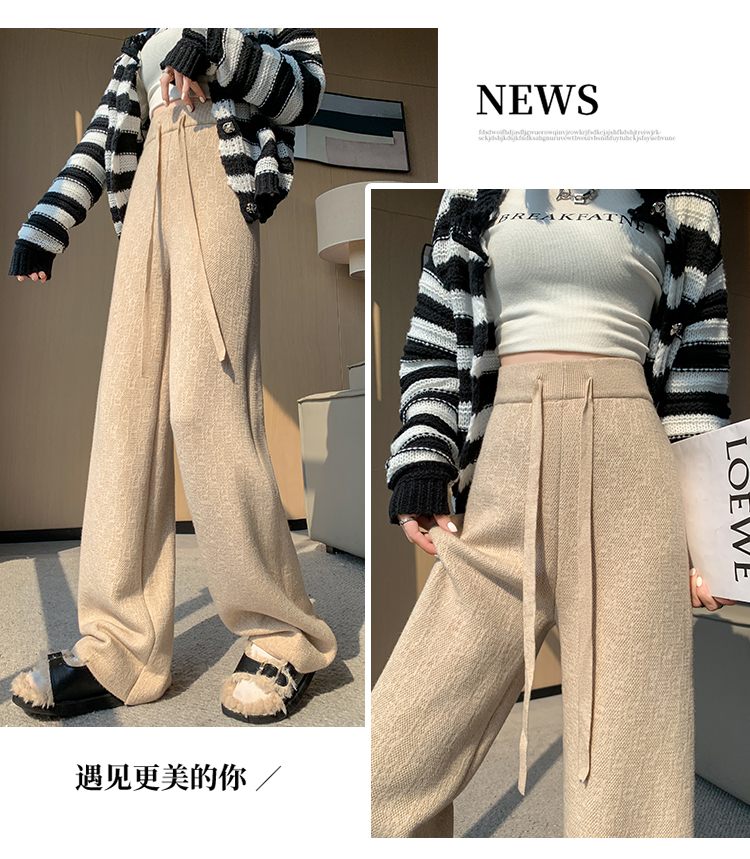 RM29447#加绒阔腿裤女秋冬2023新款高腰垂感针织提花拖地窄版直筒裤子