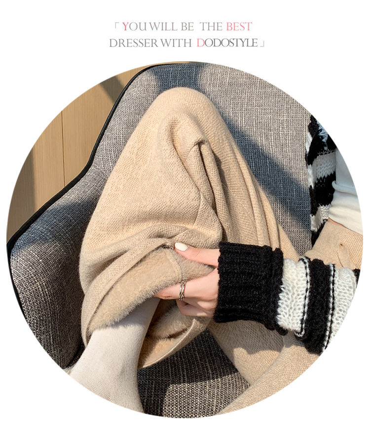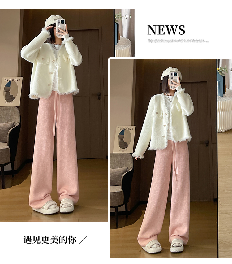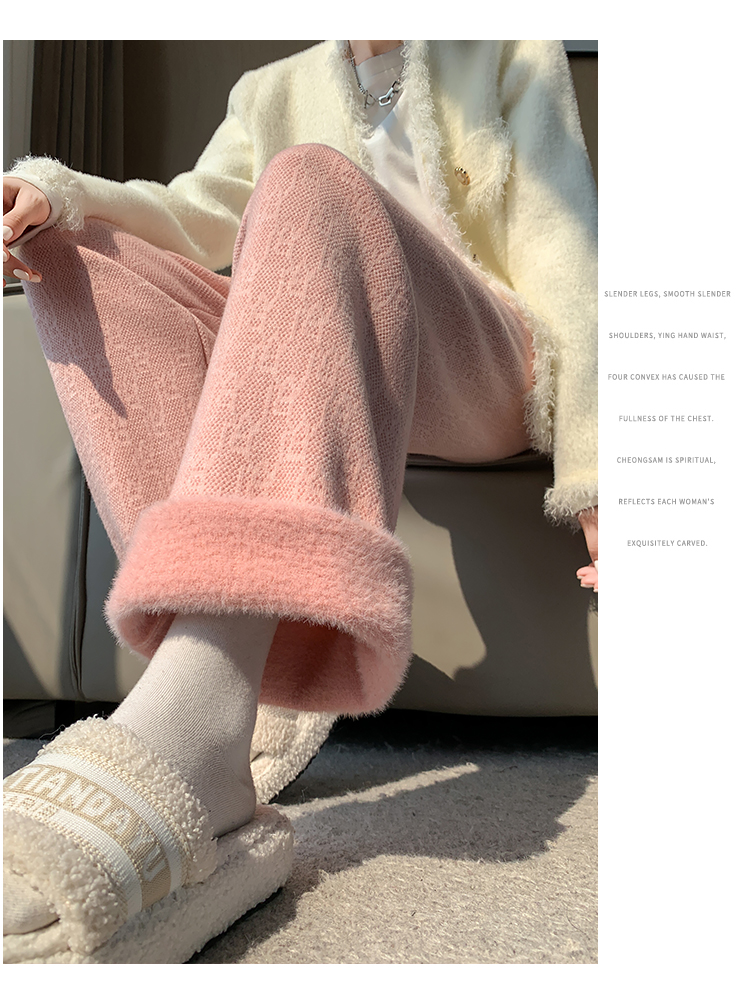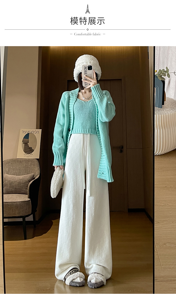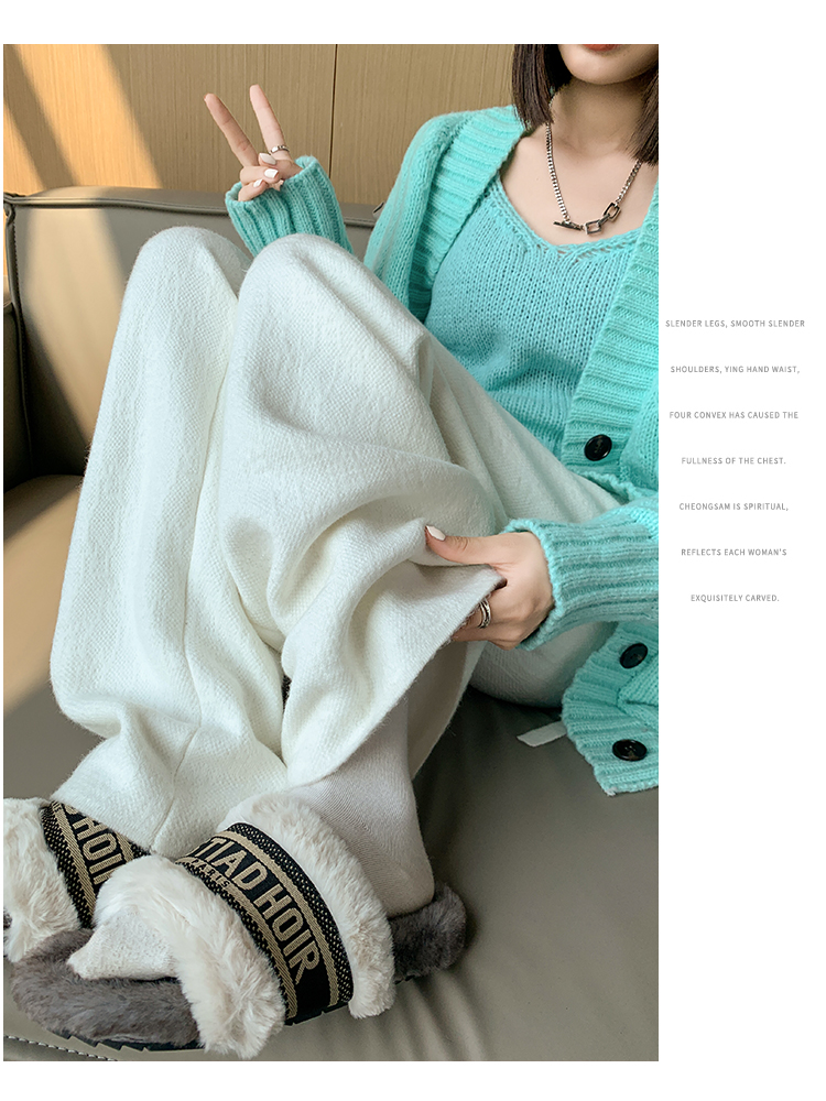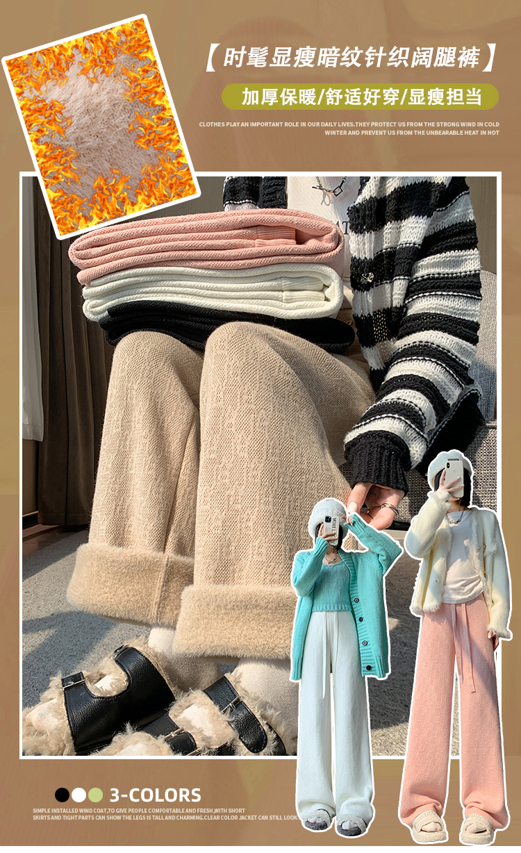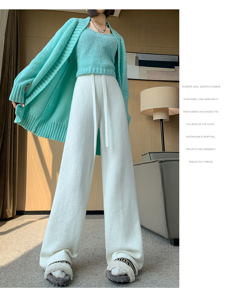 RM29447#加绒阔腿裤女秋冬2023新款高腰垂感针织提花拖地窄版直筒裤子
