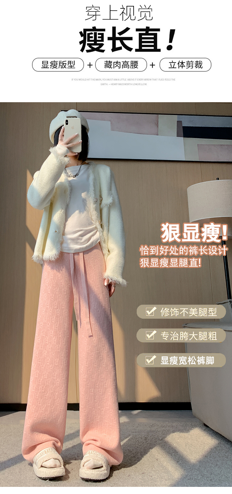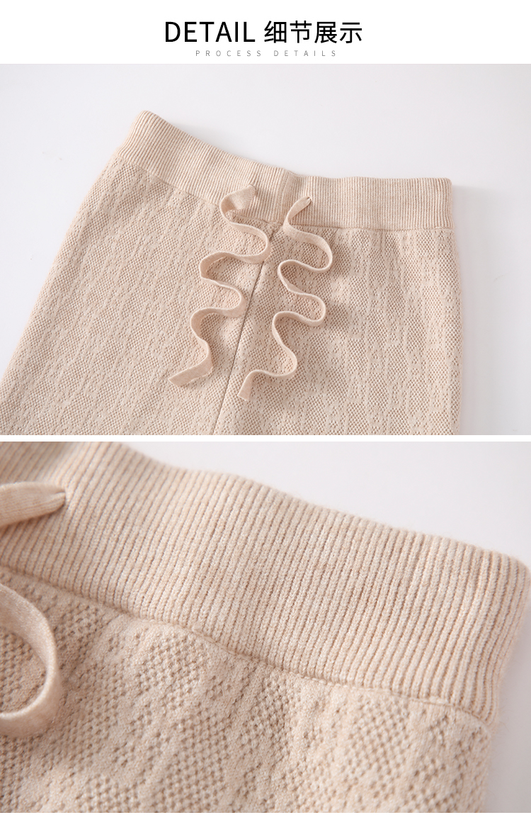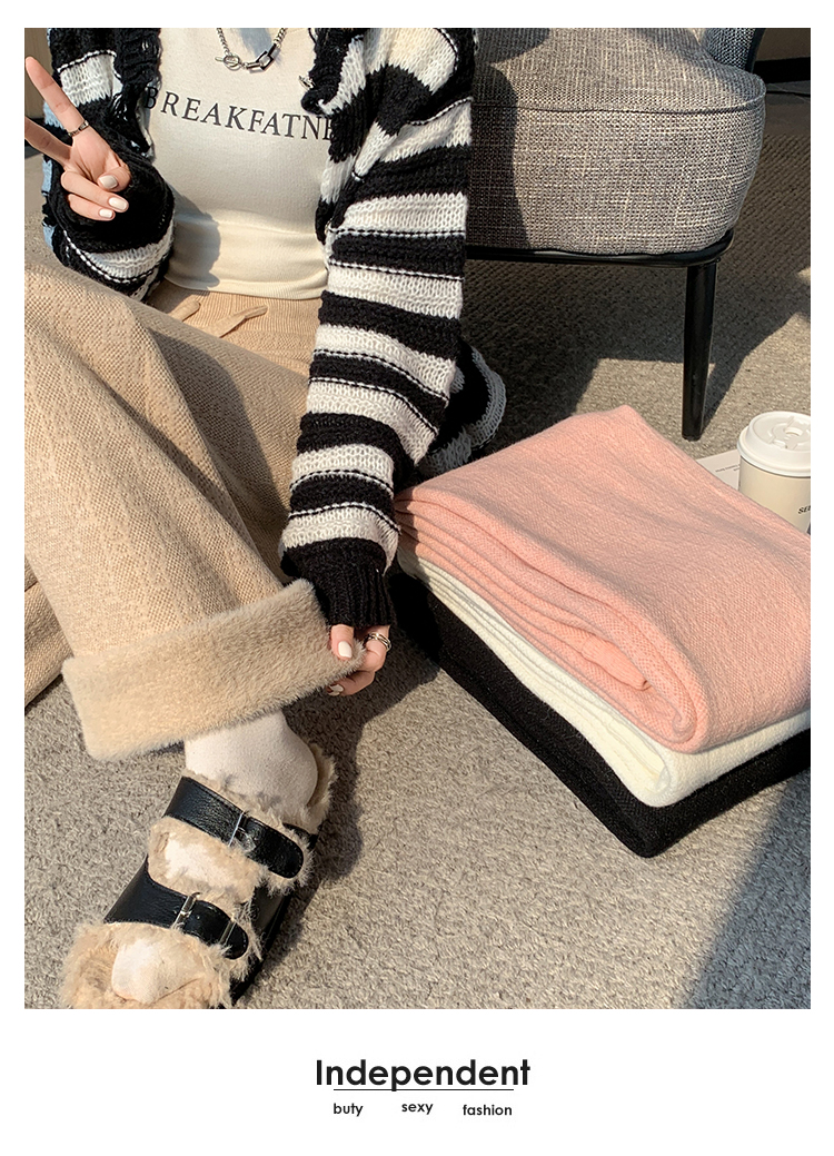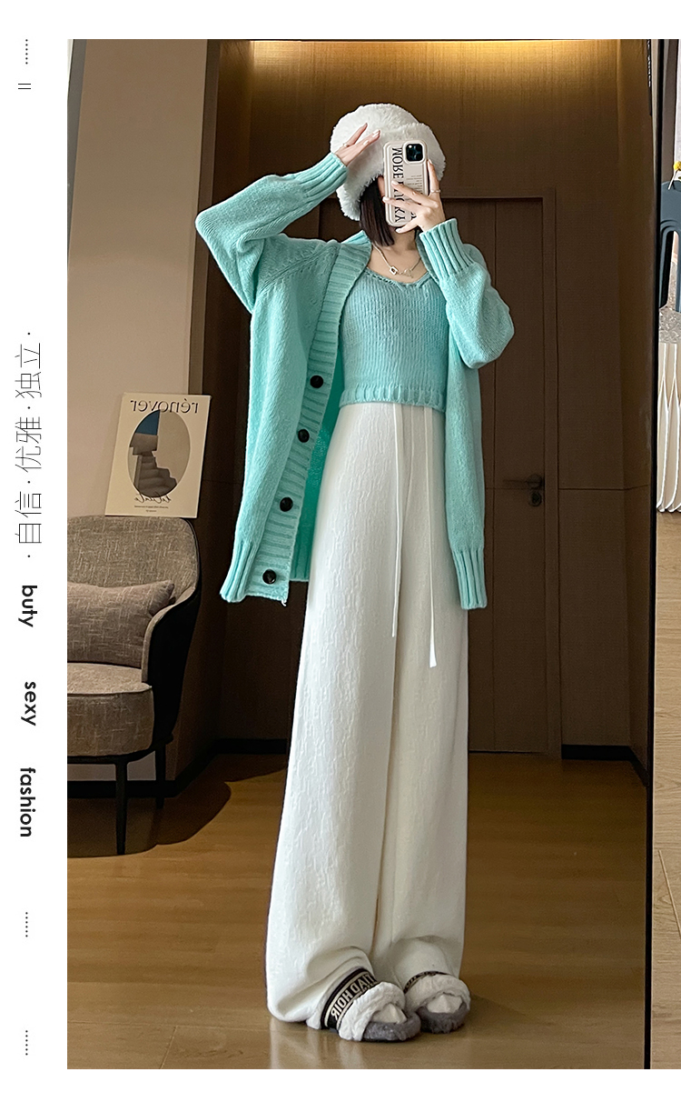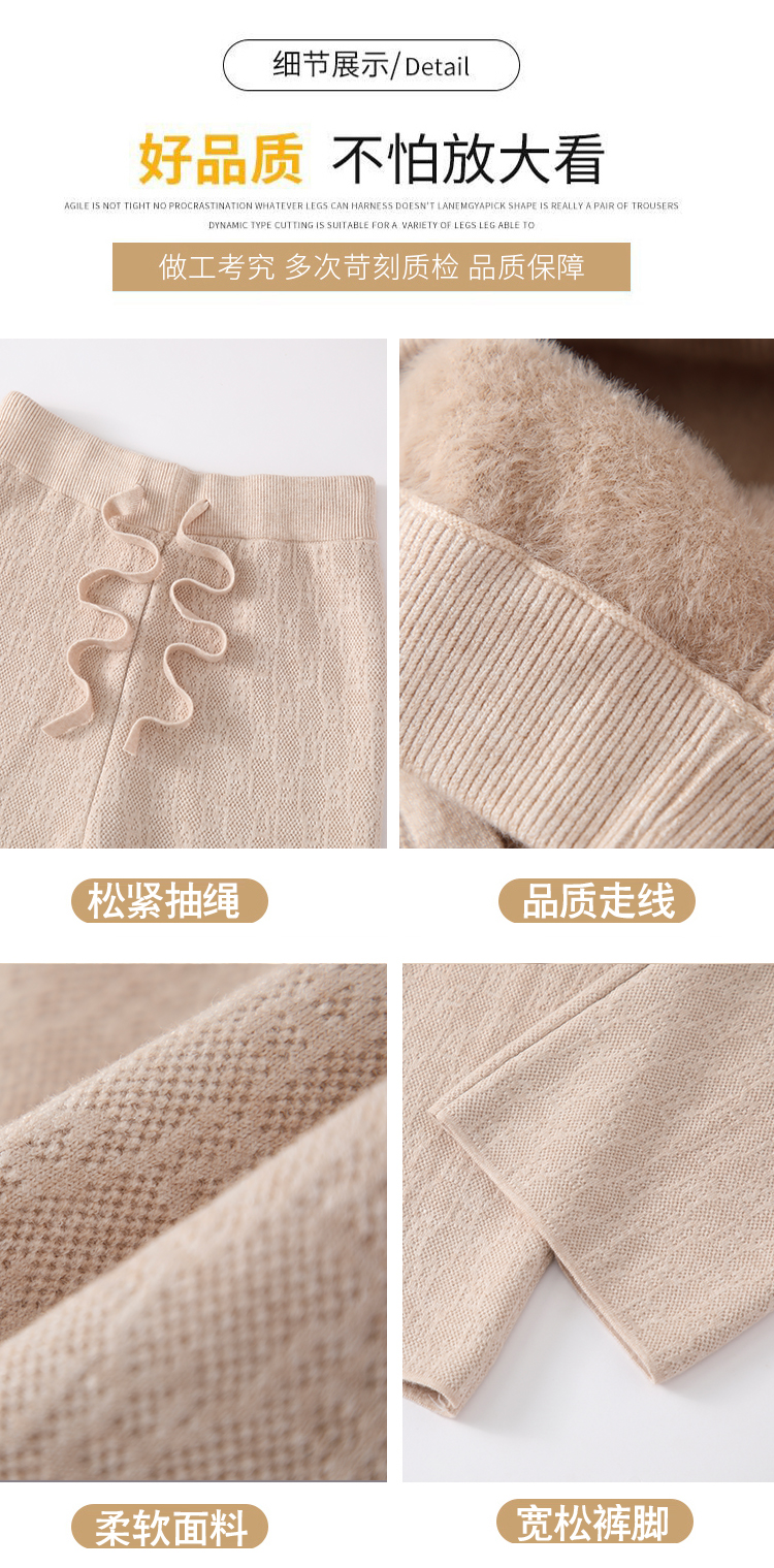 RM29447#加绒阔腿裤女秋冬2023新款高腰垂感针织提花拖地窄版直筒裤子
