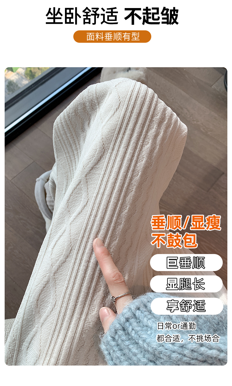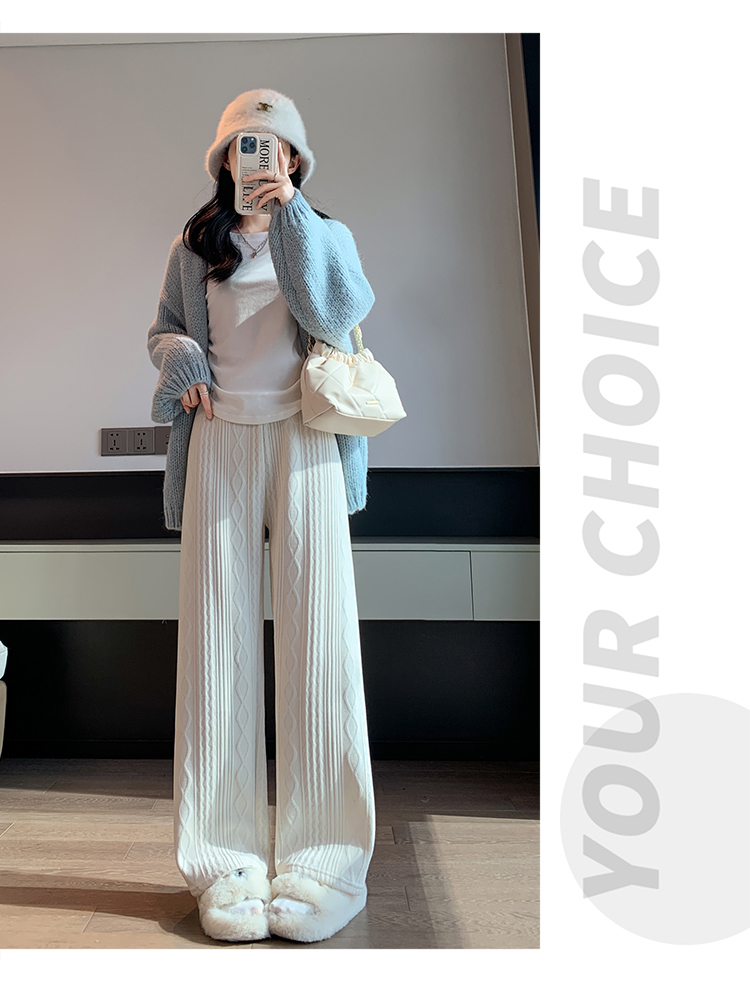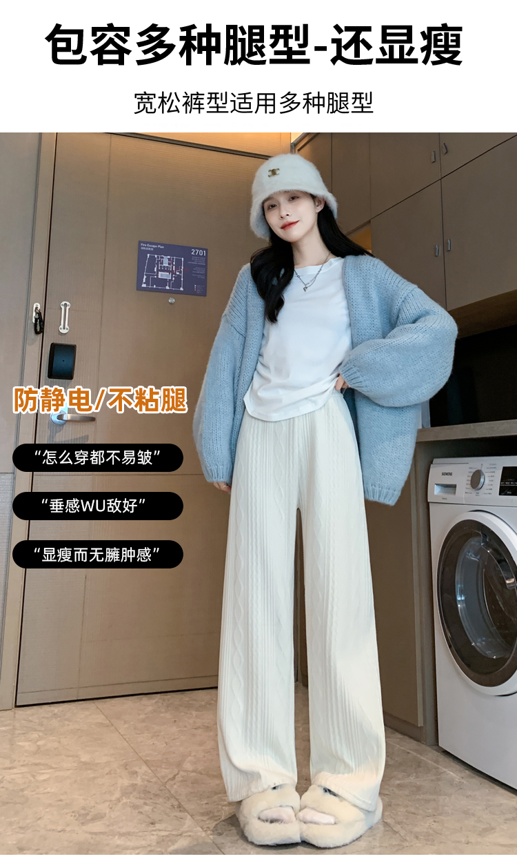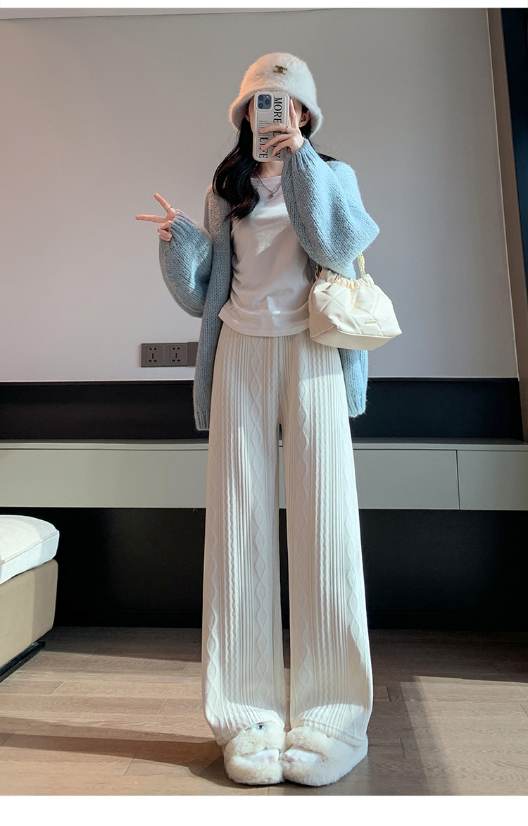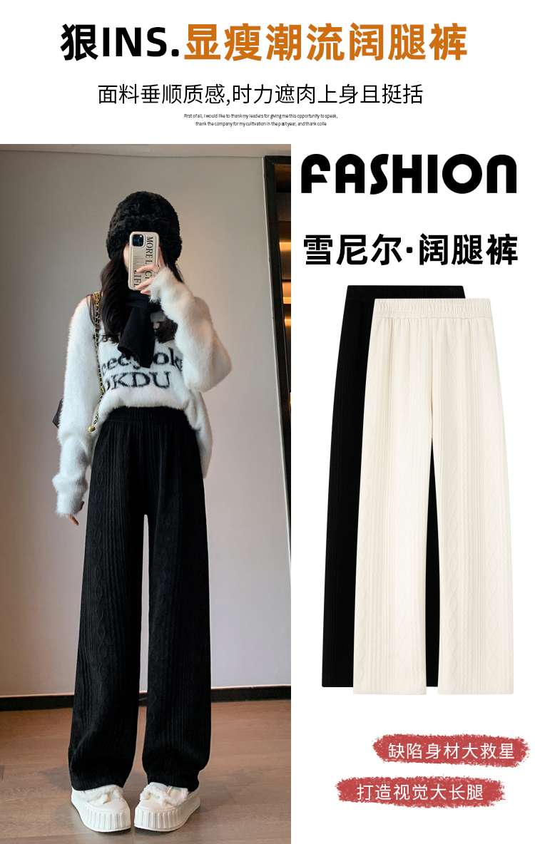 RM29450#加绒窄版白色提花雪尼尔阔腿裤女秋冬高腰垂感显瘦休闲直筒裤