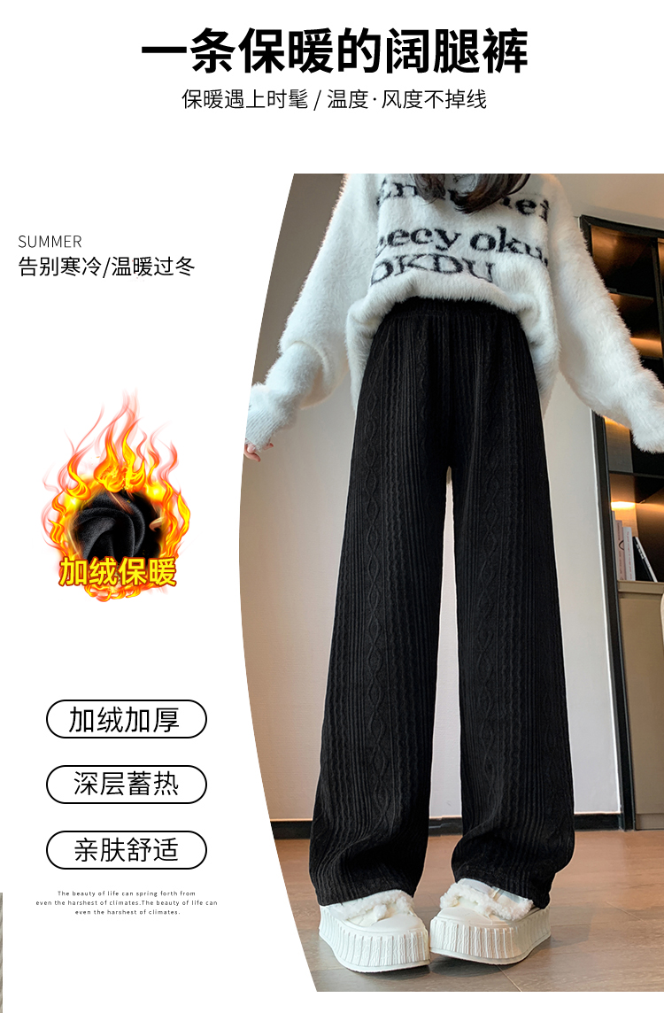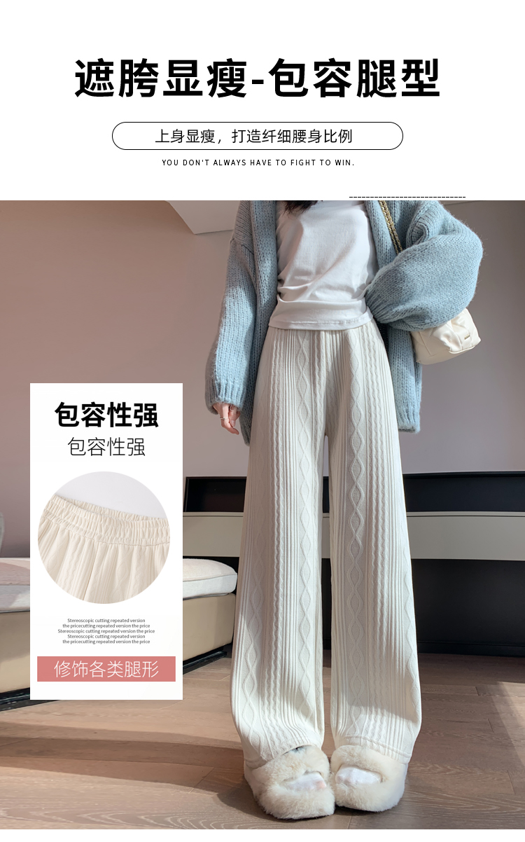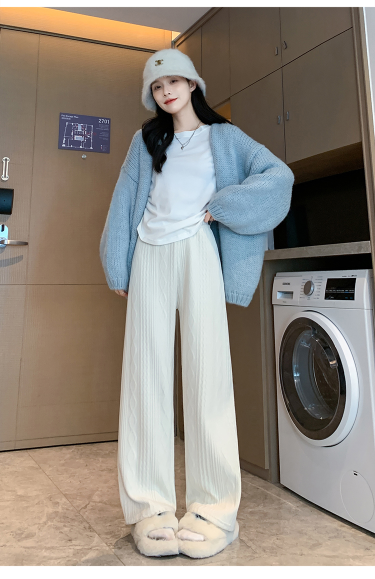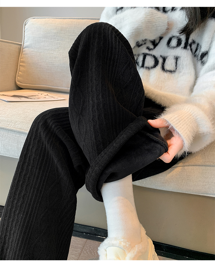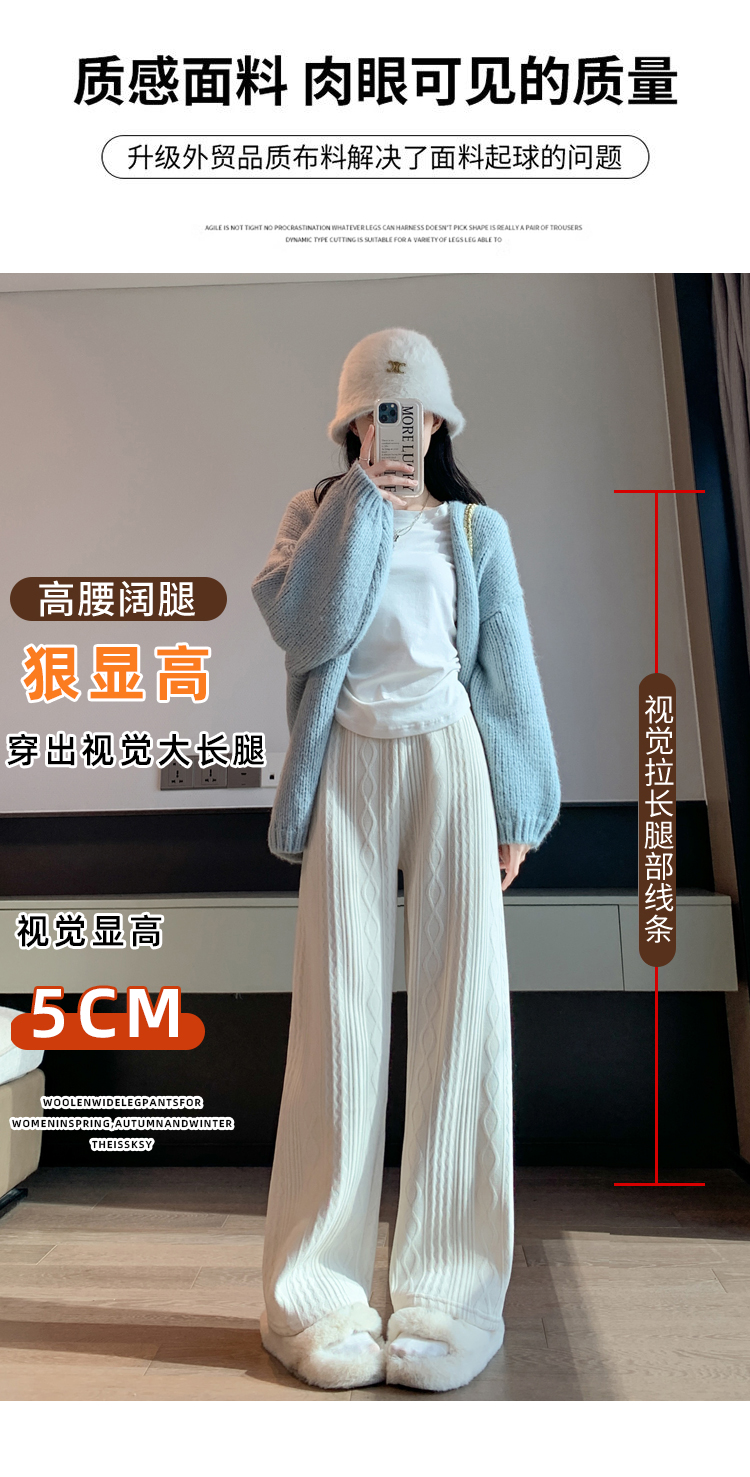 RM29450#加绒窄版白色提花雪尼尔阔腿裤女秋冬高腰垂感显瘦休闲直筒裤